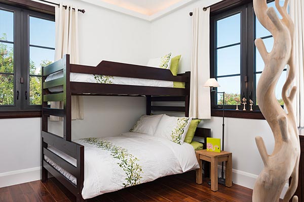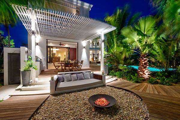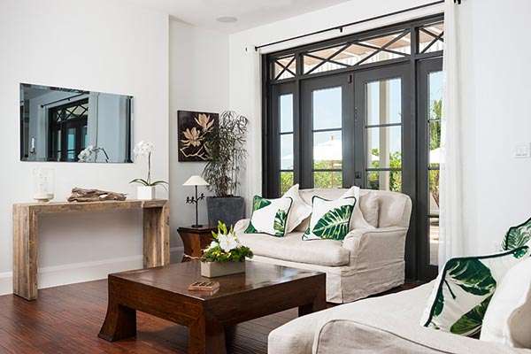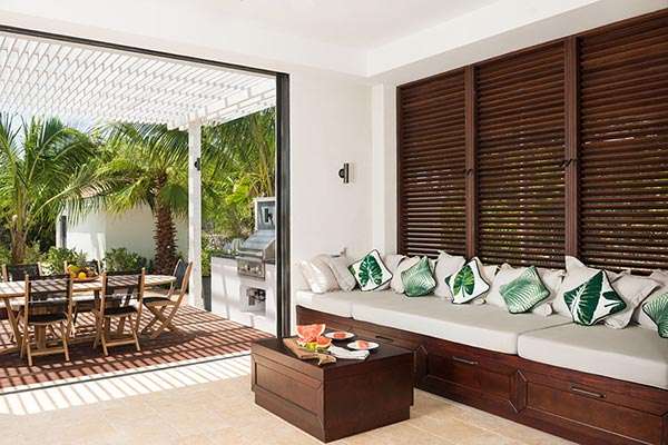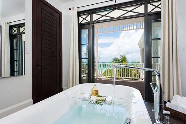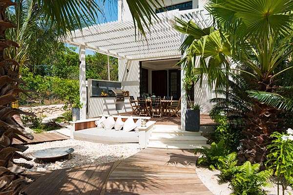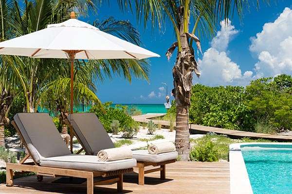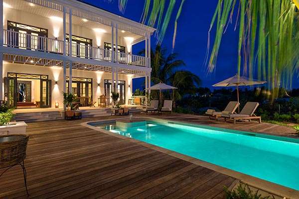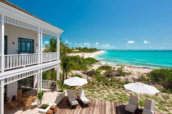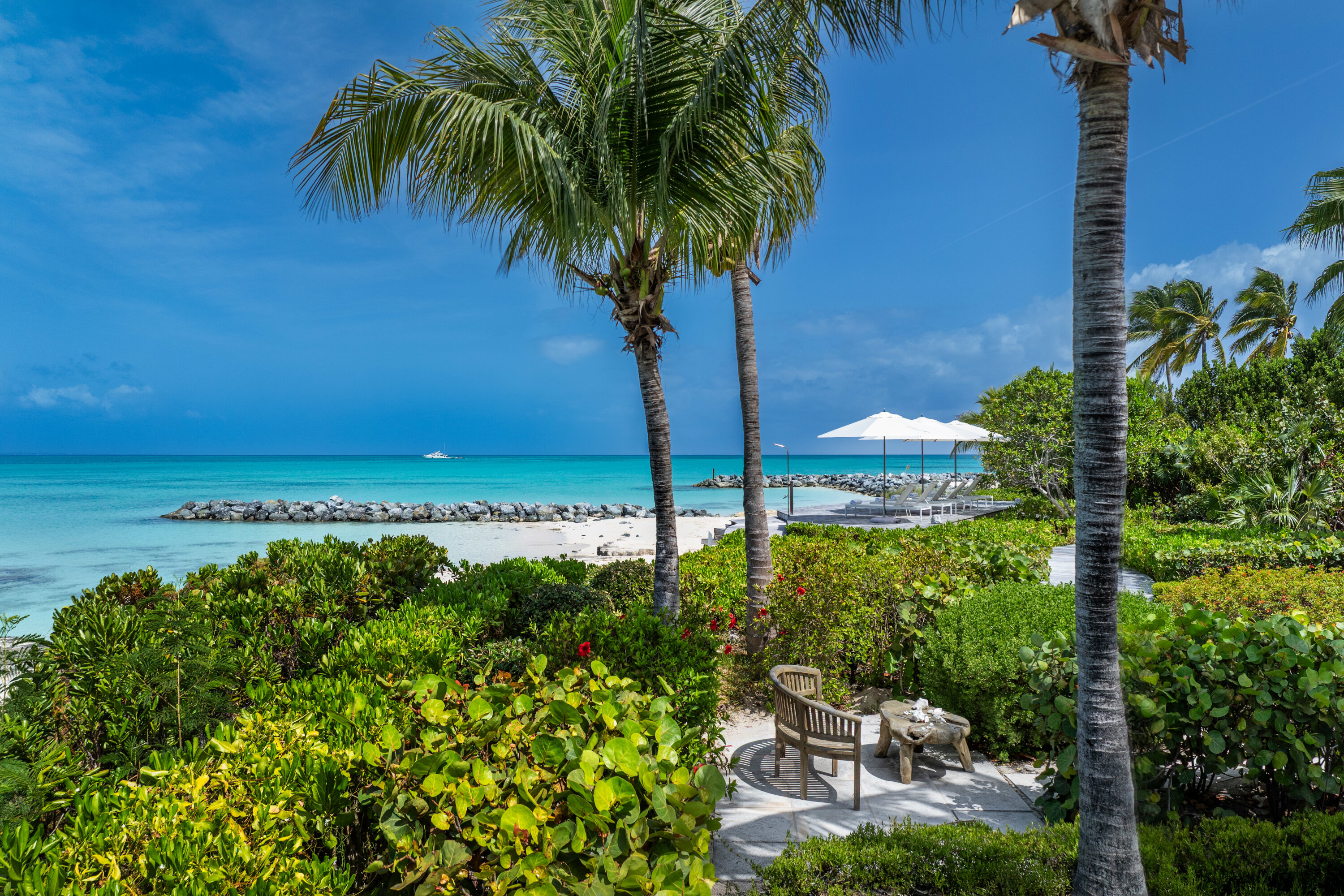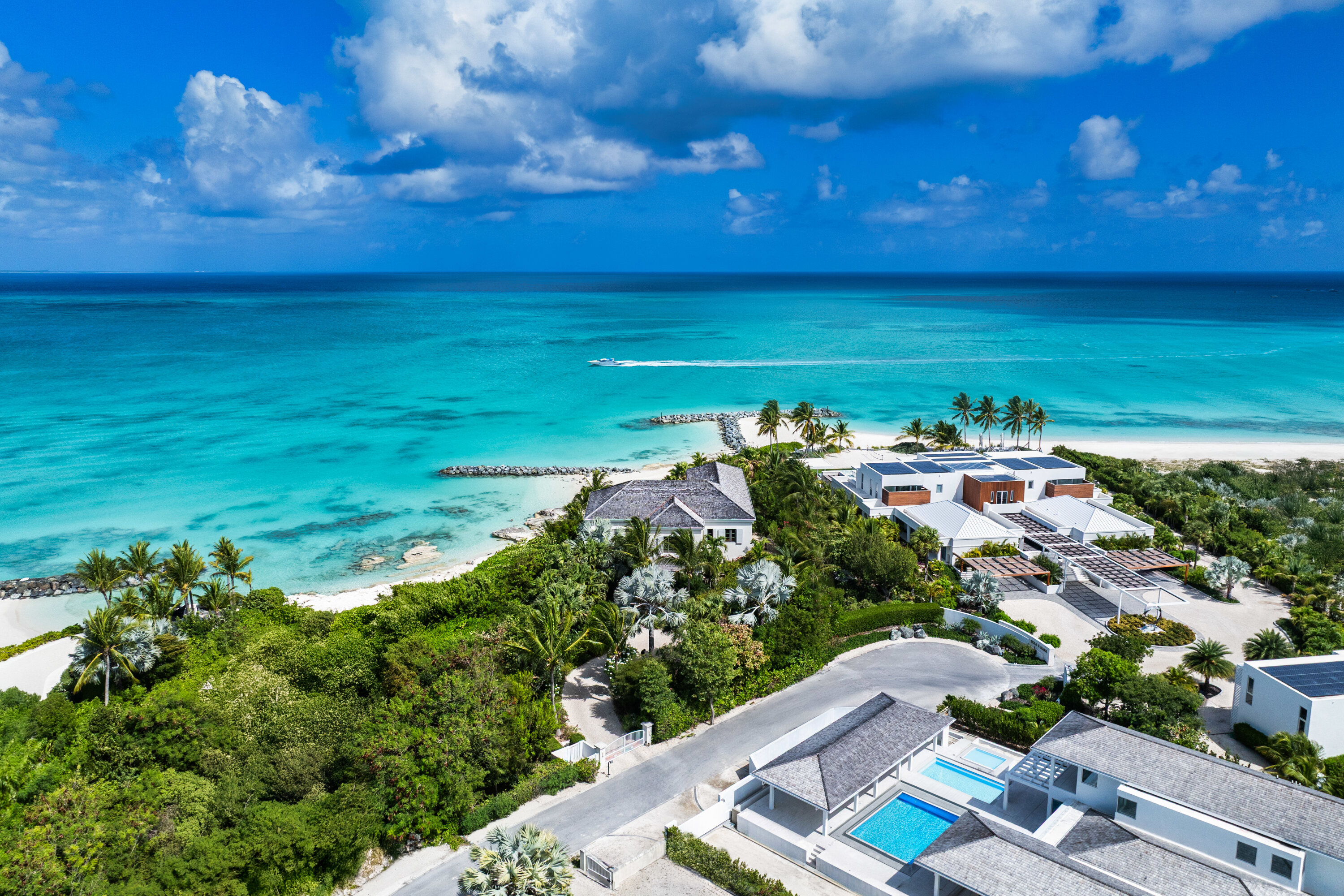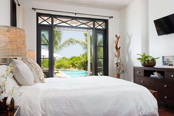 Welcome to Villa Saving Grace (villa code: PL SAV), a luxurious 4+1-bedroom villa located in Grace Bay, Turks and Caicos. Surrounded by lush tropical gardens and within steps of the soft white sand and turquoise waters, it’s an ideal choice for a Caribbean vacation. Nestled in a sunset-facing cove in the residential Leeward area of Providenciales, this 2-story villa offers unrivaled privacy. The flawless design echoes the graceful architecture of colonial plantation manors, while the living areas all make use of the incredible ocean views. Located just a 5-minute drive from the restaurants, shops, and cafés of downtown Grace Bay, this is an excellent choice for a luxurious beachfront getaway in Turks and Caicos. Living Space: The elegant and contemporary interiors are flawlessly designed, with calming white-washed walls contrasted with wooden beams and flooring. More earthy tones are brought into the property through its dark, hardwood floors, while natural light streams in through large sliding glass walls to illuminate carefully chosen island antiques. The cozy living room is a tranquil spot to unwind at the end of a day in the sun, with a deluxe L-shaped sofa facing towards a large flat-screen TV. Settling in with a movie or simply some good conversation is encouraged. Kitchen and Dining Room: At the heart of Saving Grace Villa is its spacious and well-equipped kitchen. The latest appliances make cooking easy and enjoyable, while the large central island acts as a breakfast bar, gathering spot, and casual dining area. A small dining table here has room for 4. For more formal island dinners, the larger dining room is the perfect setting, with space for 8 guests. Alfresco meals can be enjoyed at the outdoor dining table, where guests can gather over a meal backdropped by the sparkling ocean. Bedrooms: There are 5 bedrooms in Villa Saving Grace. The master bedroom is located upstairs, complete with a lavish king-sized bed and spacious ensuite bathroom. A private veranda boasts spectacular ocean views and is an excellent spot for a morning coffee, afternoon drink, and quiet nights of stargazing. There are 3 more bedrooms on the upper level that share a bathroom, which has 2 pedestal sinks and a shower. One bedroom has a king-sized bed, another a queen, while the third bedroom has a pair of twin bunk beds, perfect for kids. The fifth bedroom is on the main level of Saving Grace Villa, with a king-sized bed and private ensuite bathroom. French doors open towards the ocean, letting in the salty island breeze. Outdoor Features: Outside, a Brazilian hardwood deck surrounds the 40-ft. long heated pool. Languishing in the refreshing water with a colorful cocktail is the perfect way to spend your day at Villa Saving Grace, soaking in the island vibes. Sunbeds line the water, underneath swaying palm trees rustling in the breeze. Sunbathing, reading, and relaxing here will leave you in a state of bliss. As the afternoon fades, retreating to the lounge and fire pit is the best spot in the house to admire rosy-gold island sunsets. Following the winding wooden boardwalk leads you to your own secluded cove, where the silky white sand gives way to perfectly turquoise water. Grace Bay Beach is regularly voted the top beach in the Caribbean; enjoying the picture-perfect view is easy from the beachside deck with shaded sunbeds. Amenities: Extra details at Saving Grace Villa help make your stay as pleasant as possible. The property also comes with central air-conditioning, a gas grill, 4 bikes, an outdoor shower, and a welcome gift on arrival. A well-equipped sports hut offers 2 paddleboards, 2 sea kayaks, and more to explore the cove. Villa Saving Grace comes with house cleaning services – contact your villa specialist for more details. During the Thanksgiving and December holidays, the villa rents at full occupancy rates, regardless of how many bedrooms are used. Please note that this property requires an additional 5 percent gratuity.