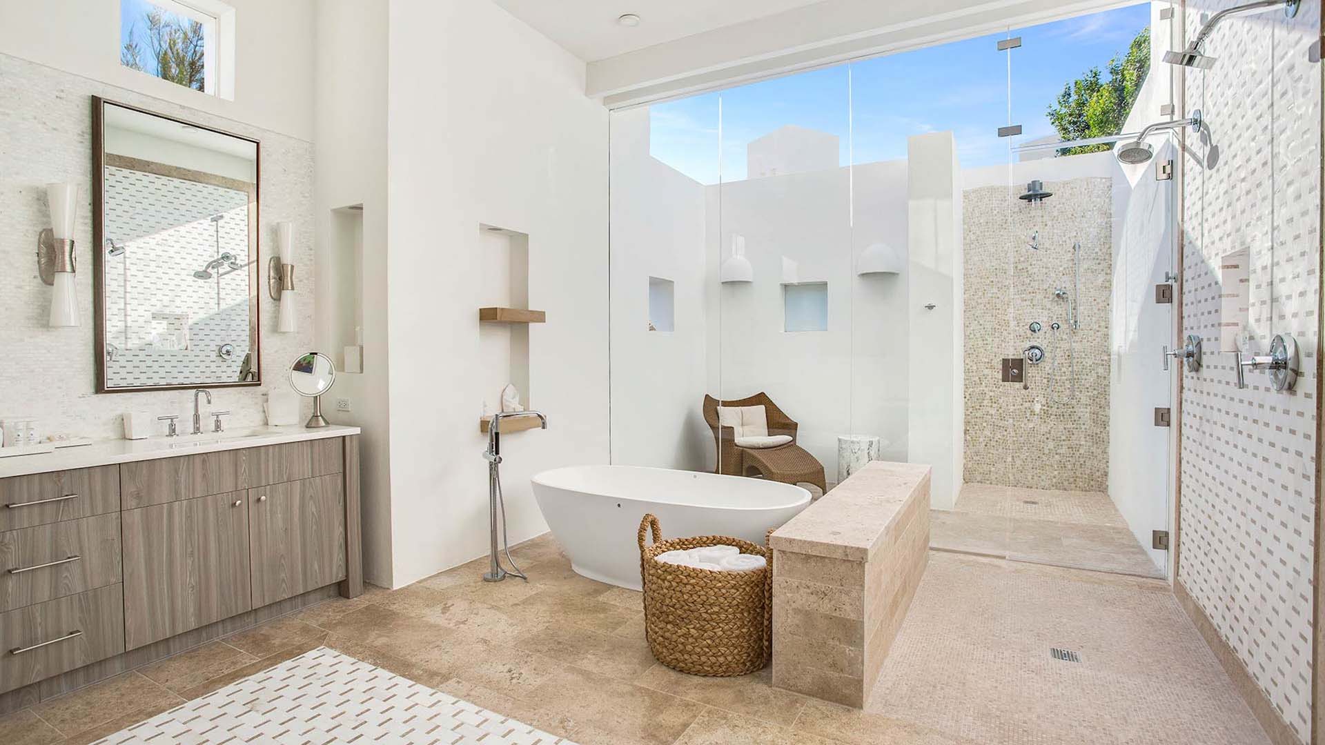 There are five master bedrooms spread across two levels, with three on the main level and two more on the second level. All but one features an outdoor shower, an exotic way to wash off the salt and sand before bed. Two bedrooms on the first floor can also be configured to have two twins.