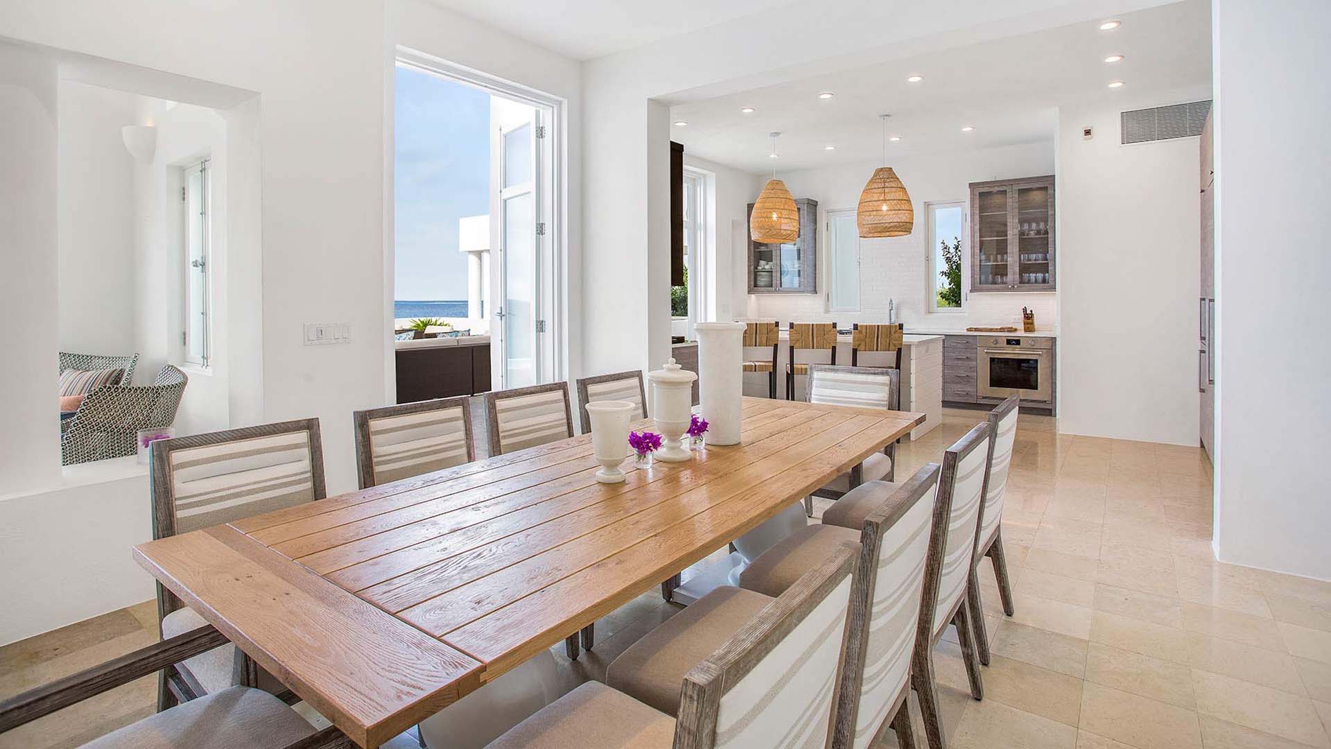 At the other end of the great room is Villa Sea’s contemporary kitchen. Well-equipped, you’ll have everything you need to whip up gourmet meals during your stay. The concierge can even organize grocery pre-stocking or delivery, catered meals, or arrange a private chef service for a special occasion.