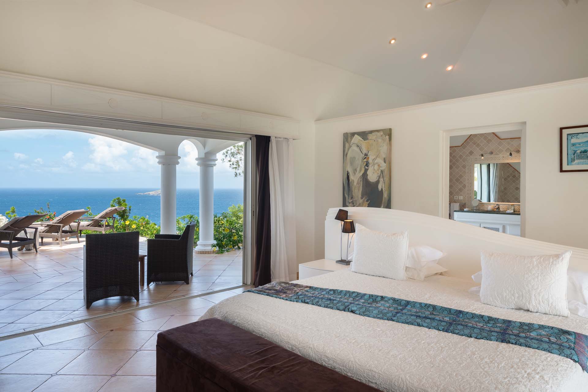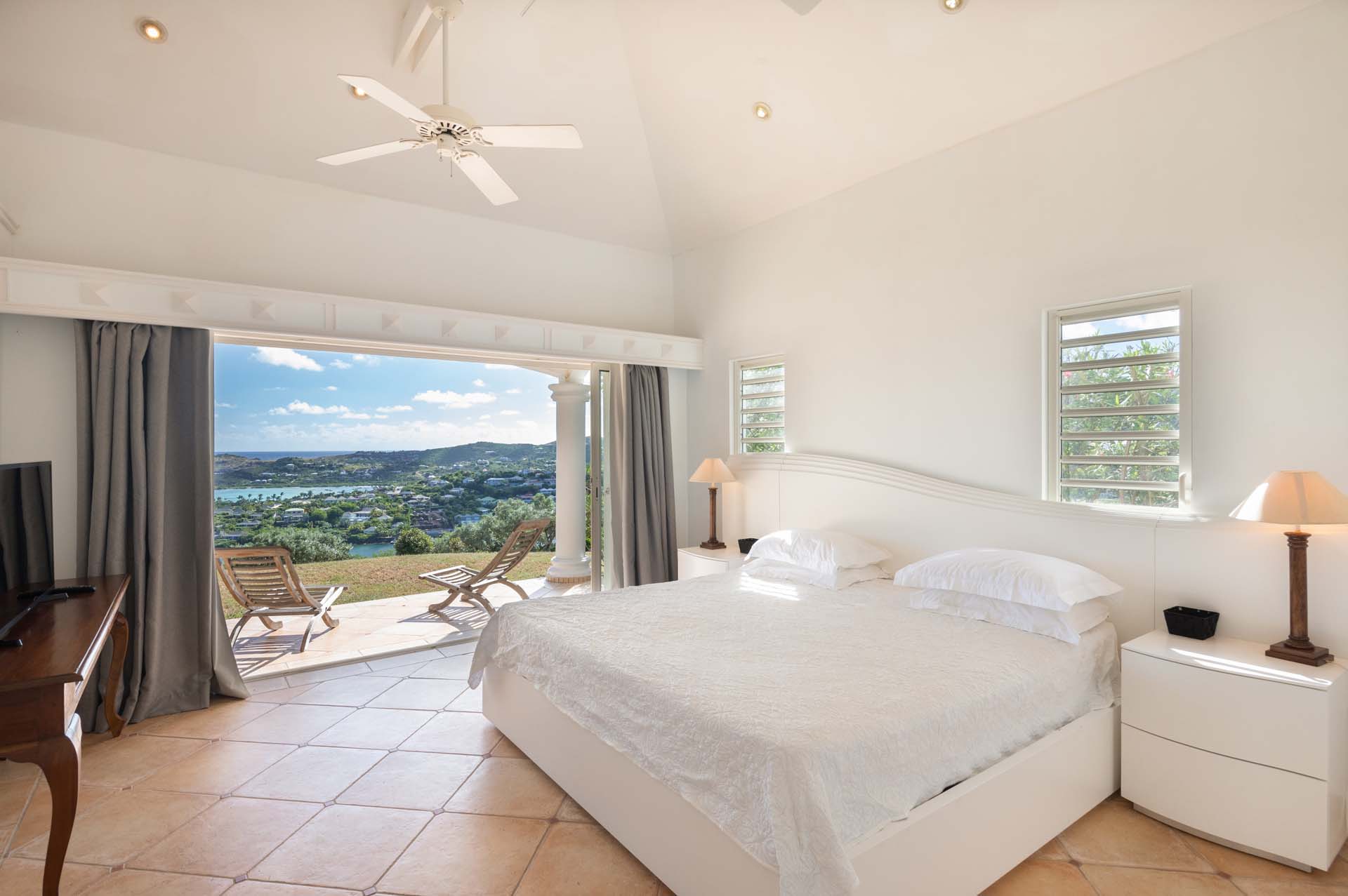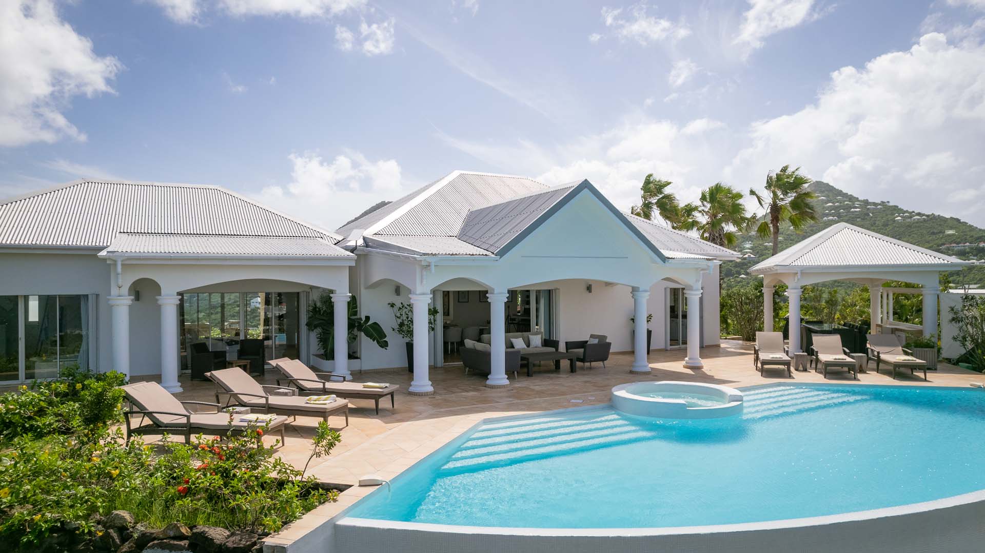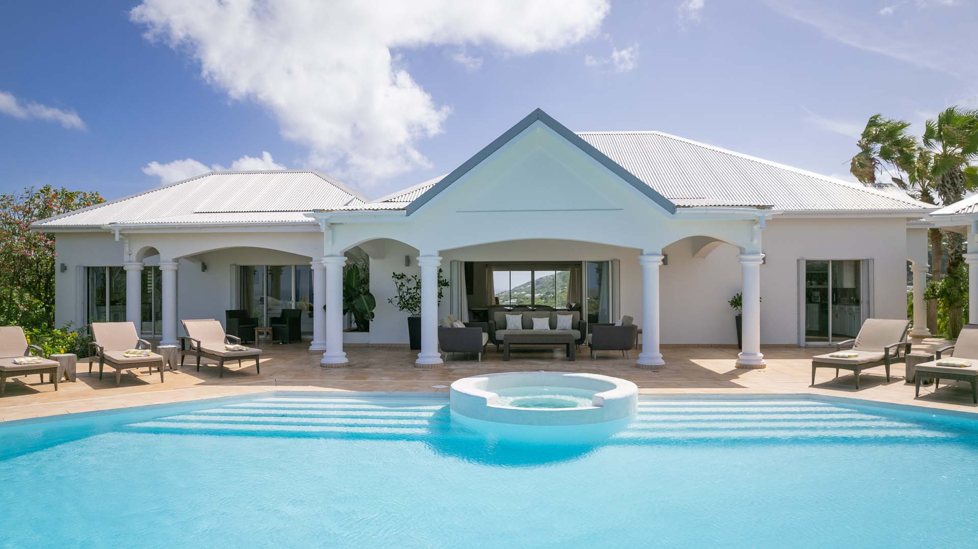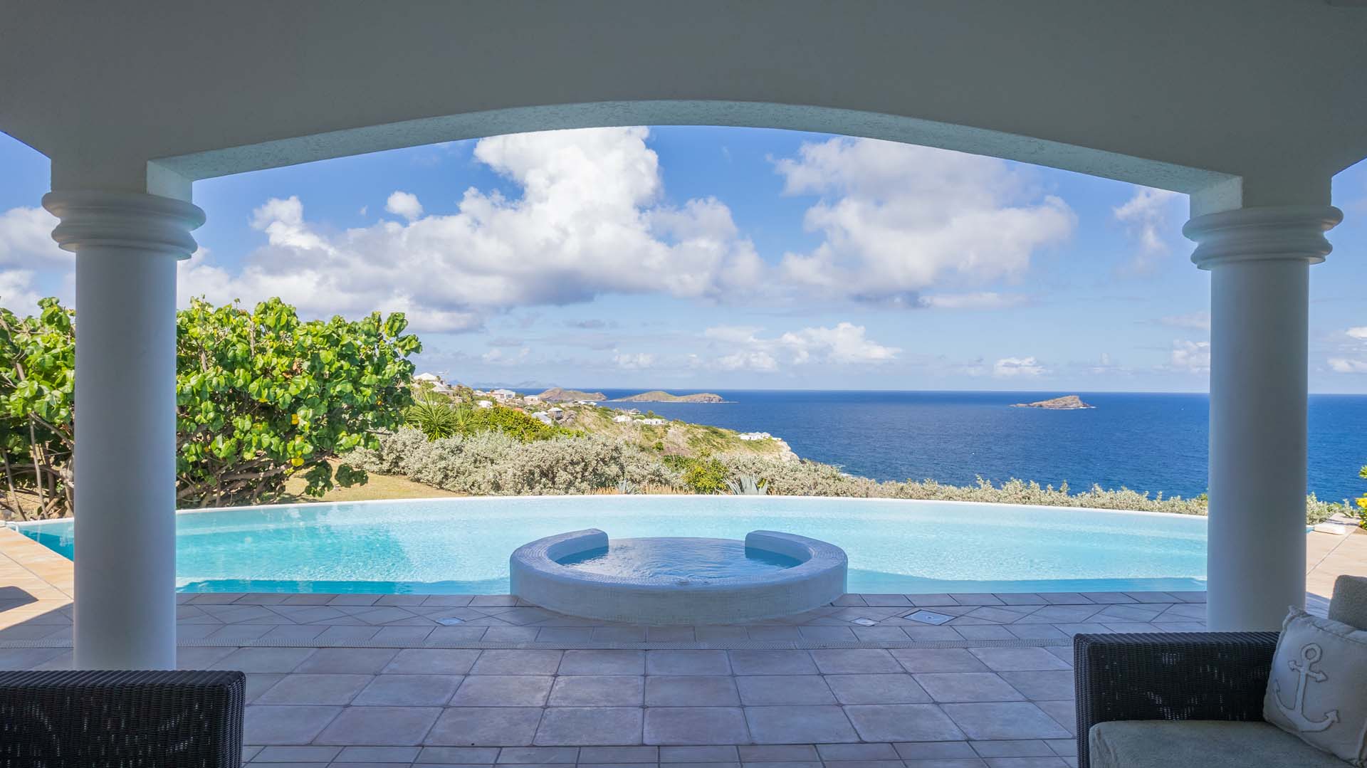 Welcome to Villa Sea Bird 19 (villa code: WV AHA), a stylish 3-bedroom villa located in the exclusive gated community of Mont Jean, St. Barts. This villa offers dramatic eastern and western views and is within minutes of several beaches and restaurants. Inside, open and airy interiors are awash with island charms. Natural light illuminates the stylish open-plan design and Indonesian-inspired décor. Cool terracotta tiles and artwork adorning the walls add pops of color and contrast with the earthy tones. Located on the Mont Jean peninsula, Villa Sea Bird 19 offers peerless privacy. The beaches at Marigot and Grand Cul-de-Sac are just a short drive away. Elegant shopping and dining await in St. Jean, 10 minutes away by car. The spacious main great room combines the living room, dining area, kitchen, and office. Vaulted ceilings give the entire room a breezy, open feel, while modern furniture adds a touch of luxurious beach chic. The living room has two plush sofas facing a large entertainment center with a TV. This is an ideal space to relax, whether it’s with a morning coffee or a movie night with family and friends. If you need to get some work done, the office has a desk and chair. The well-equipped kitchen at Villa Sea Bird 19 has everything you’ll need to create gourmet meals during your stay. Our concierge can even organize grocery pre-stocking or delivery, catered meals, or arrange private chef service for a special occasion. The indoor dining table is an excellent setting for elegant dinner parties, overlooking the ocean outside. The kitchen also opens out to a covered dining area, allowing you to pair your meal with the warm island air and stunning sunset. The 3 airy bedrooms at Villa Sea Bird 19 are private and peaceful, offering a relaxing area to relax and recharge each evening. The large master bedroom is connected to the living room, featuring a plush king-sized bed, TV, and ensuite bathroom. It also has stunning views out over both sides of the house, letting you wake up with views of the shimmering Caribbean. The guest bedrooms are in a separate cottage on the lower level. Each with a king-sized bed, TV, ensuite bathroom, and a private terrace overlooking Marigot Bay. Furnished terraces on both sides of Sea Bird 19 Villa offer exquisite views of the ocean, coastline, and undulating tropical hills of St. Barts. Comfortable lounges offer plenty of room to unwind, enjoy a good book, or kick back with a tropical cocktail and enjoy the island breeze. The swimming pool overlooks the ocean, a fabulous spot for a refreshing dip. Loungers lining the water let you sunbathe in the island rays, or even work poolside. There are two hot tubs, one located in the back of the villa facing Marigot, and one in the pool. A gas grill also encourages you to host cookouts, frying up some fresh fish or a succulent steak with a golden island sunset. There’s nothing like the sizzle of the grill combined with colorful hues of pink and purple shooting across the sky. Nearby, the beaches at Marigot Bay and Grand Cul-de-Sac are both around a 5-minute drive. World-class dining and shopping are available at St. Jean, 10 minutes away by car. During the Thanksgiving and December holidays, the villa rents at the full occupancy rate regardless of how many bedrooms are used.Please fill out the form to begin your inquiry and we will connect you with a seasoned villa rental specialist.