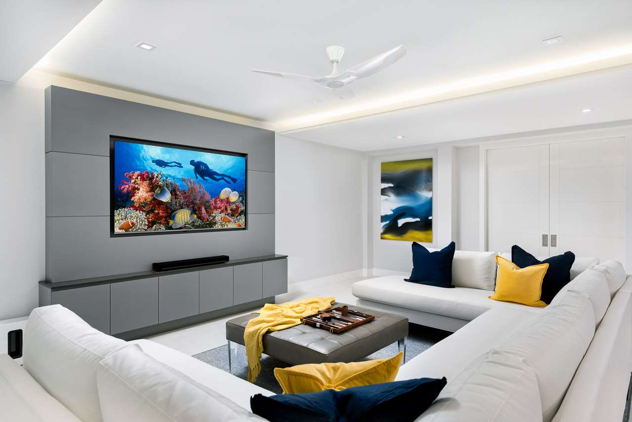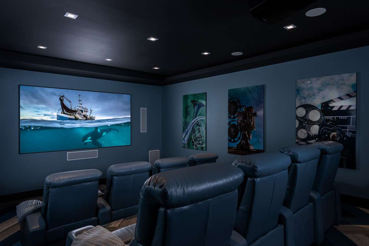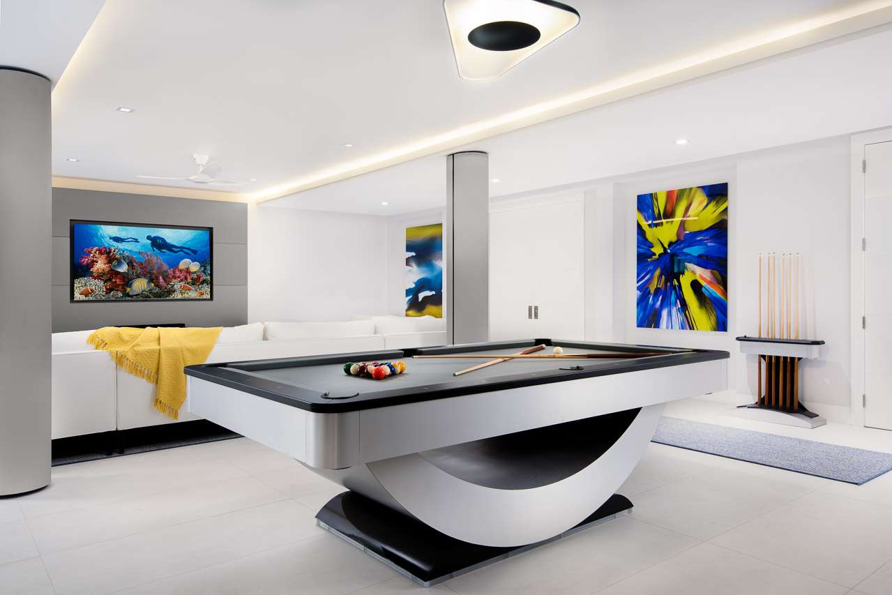 For more cozy indoor entertainment, there’s another lounge with a flat-screen TV, perfect to keep the kids entertained while you enjoy long dinners in the great room. For an authentic movie-going experience, the villa’s media room features plush cinema-style seating and surround sound.