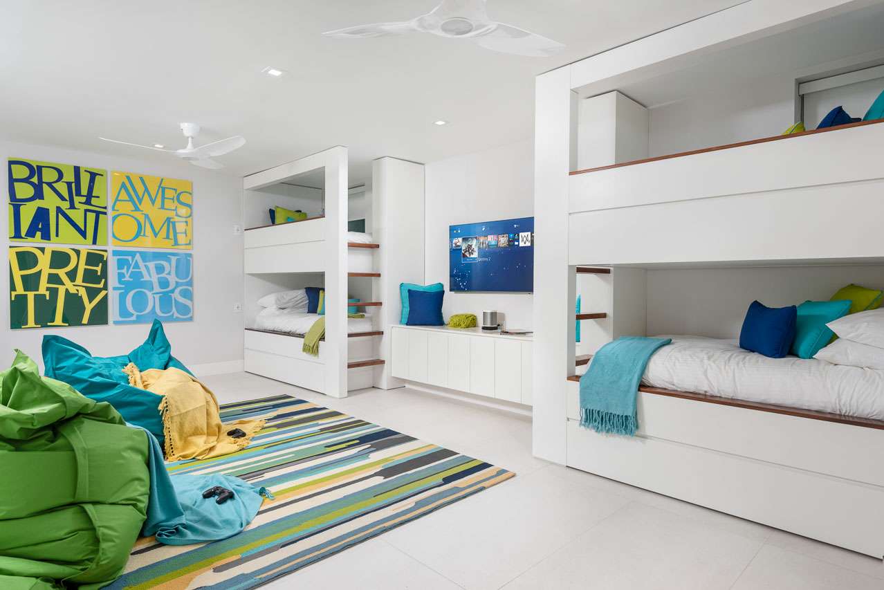 A 9th room features a pair of twin bunk beds, with access to two trundle beds as well – the perfect room for younger kids. In each room, the gentle sound of the waves washing against the shore will lull you into a deep, restful sleep.