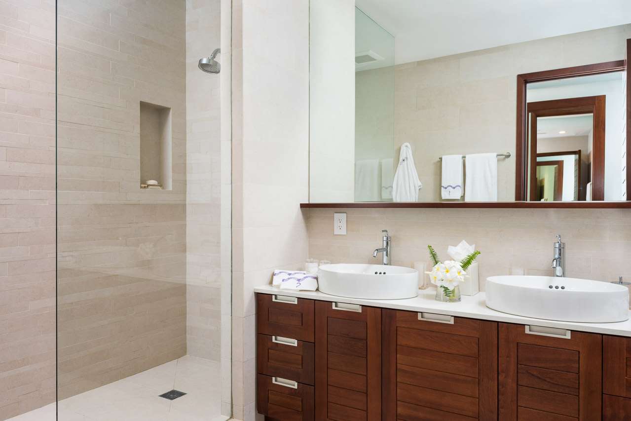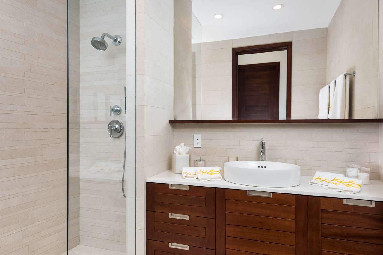 Offering a contemporary design and the latest amenities, Villa Sentosa is a calming and luxurious oasis for a Caribbean getaway. Modern artworks bring splashes of creative life into the cream-colored interiors, while the island light streams in through large windows and sliding glass doors.