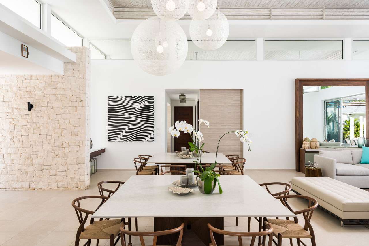 As soon as you step inside Villa Sentosa, you’ll be swept off your feet. The large and airy great room combines living and dining areas beautifully. The white washed room with tall ceilings is lined with windows which let in plenty of natural light, illuminating striking artworks, handmade furniture, and soft wooden details.