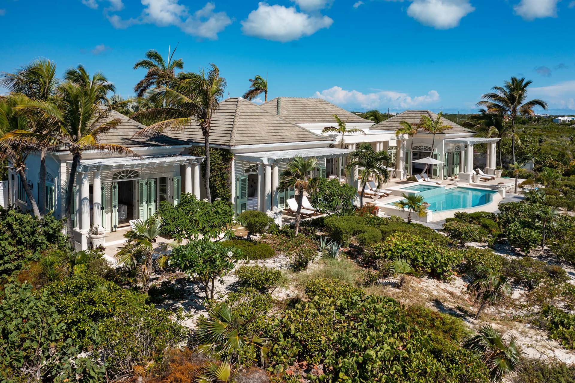 Perched on the edge of Long Bay Beach, recognized among the world's finest by Condé Nast, Villa Shambhala sprawls over two acres of serene landscape yet remains conveniently close to central Grace Bay, just a 10-minute drive away.