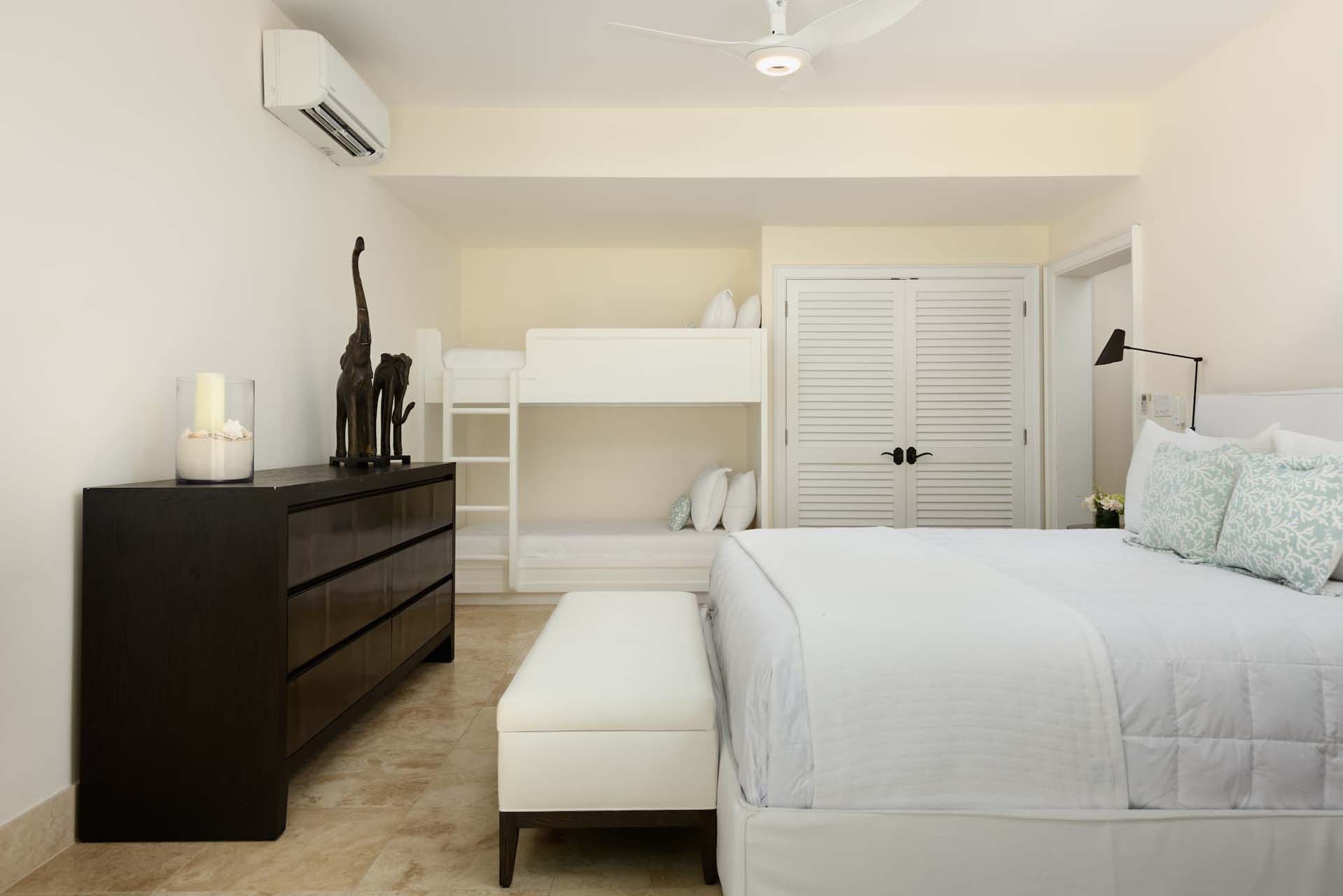 Additionally, the newly-constructed 4,000-square-foot guesthouse comprises three king bedrooms, a spacious open-plan kitchen and living area, and a balcony lounge with an infinity-edge plunge pool, boasting scenic sea views over lush tropical gardens. On the lower level, a striking bar and games room await, equipped with a pool table, table hockey, golf simulator, and gym.