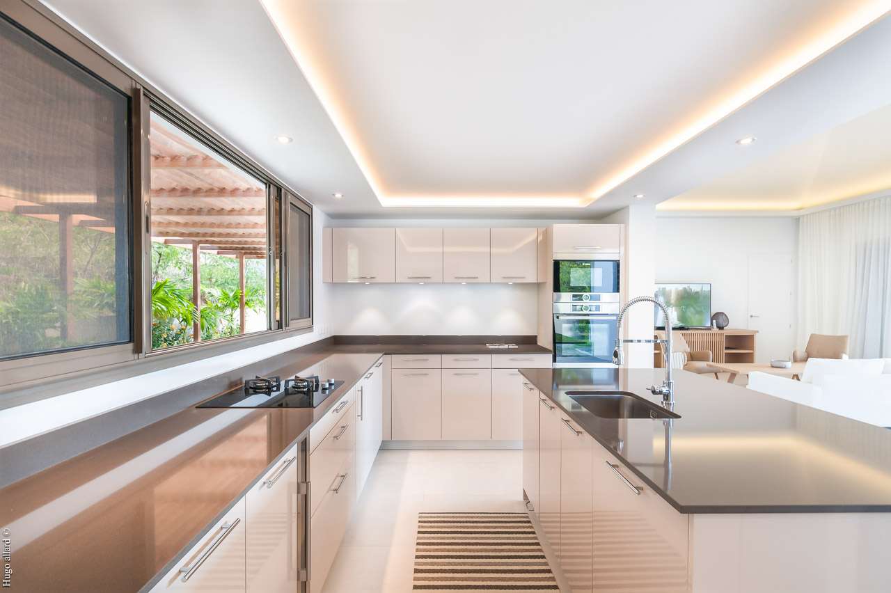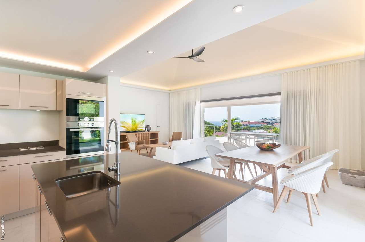 Welcome to Villa Shell Beach (villa code: WV SBV), a contemporary 2-bedroom villa in Gustavia, St. Barts. Located just uphill from Shell Beach and all the restaurants and shops in Gustavia, this is a fantastic choice for a glamorous island getaway. Newly built, Shell Beach Villa features a dreamy design, the latest luxuries, and a timeless style. The interiors feature pale neutral colors and natural features, combining to create an atmosphere of barefoot luxury. Accents of wood add an earthy touch, but by far the most eye-catching feature is the breathtaking view over Gustavia Harbor. Within walking distance is every restaurant, club, and boutique store in town, yet far from any noise, Villa Shell Beach is well-positioned for a fun island getaway in Gustavia. The welcoming waters of Shell Beach is just a short walk away. A large open concept great room merges the living room, dining area, and kitchen. Doors open wide to the outdoor terrace, washing the entire home with tropical air and the cooling sea breeze. The living room is bright, contemporary, and comfortable. A soft sofa invites you to sink in, illuminated by island light streaming in through the glass doors. A large flat-screen TV lets you unwind with a cozy movie night inside. The modern kitchen at Villa Shell Beach is airy and spacious, letting you whip up meals with ease. Our concierge can organize grocery pre-stocking or delivery, catered meals, or arrange private chef service for a special occasion. The indoor dining table with seating for six guests is a magnificent setting for elegant feasts. If alfresco dining is more your style, another table on the covered terrace outside lets you pair your meal with the vistas over Gustavia. There are 2 bedrooms at Shell Beach Villa, situated on either side of the great room to ensure peace and privacy. Equal in size, both feature a European king-sized bed, his-and-her closets, and a spacious ensuite bathroom. Striking details like hanging bird-cage light fixtures and patterned panels enhance the tropical flair of both rooms. Both bedrooms are accessed from the outside terrace. Screened doors let you fall asleep each night with the cool breeze blowing up off the harbor below. Outside of the airy great room, the outdoor terrace offers plenty of space to bask in the island sun. Diving into the pool each morning is a refreshing way to start your day. Sunbathing is available on loungers scattered across the terrace, but you’ll no doubt be tempted back in for frequent dips in the water. As the afternoon fades, the villa’s gas grill provides a fantastic opportunity for an island-style cookout. Grilling up some fresh fish or a succulent steak is a fantastic way to enjoy the warm sunsets, casting a rosy gold light over Gustavia. When it’s time to venture out, the best of St. Barts is at your fingertips. The pristine Shell Beach, after which the villa is named, is just a short walk away. Jumping in the car allows you to explore even further. Gouverneur Beach on the south side of the island is a 5-minute drive, while St-Jean is under 10 minutes away. During the December holidays, the villa rents at the full occupancy rate regardless of how many bedrooms are used.Please fill out the form to begin your inquiry and we will connect you with a seasoned villa rental specialist.