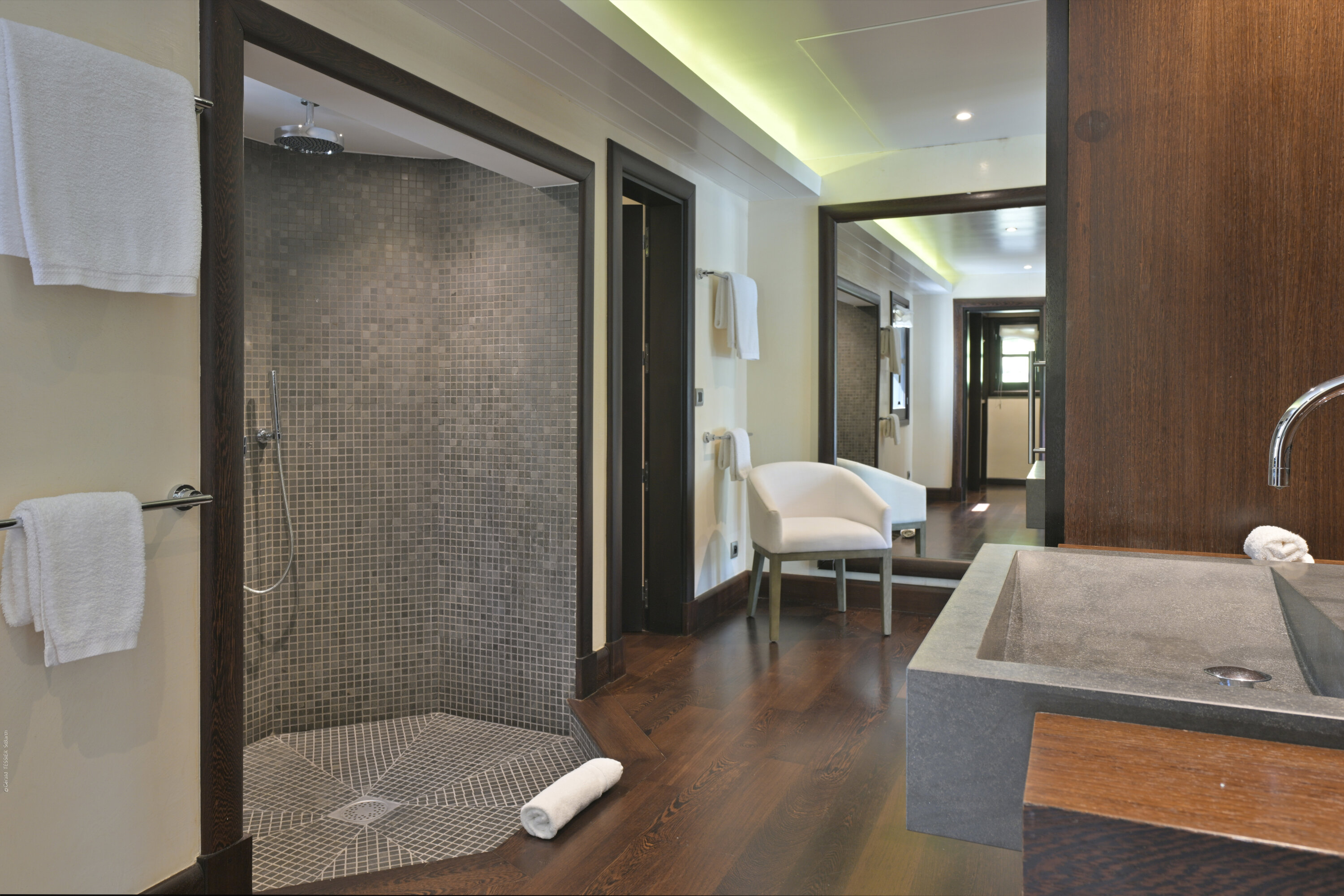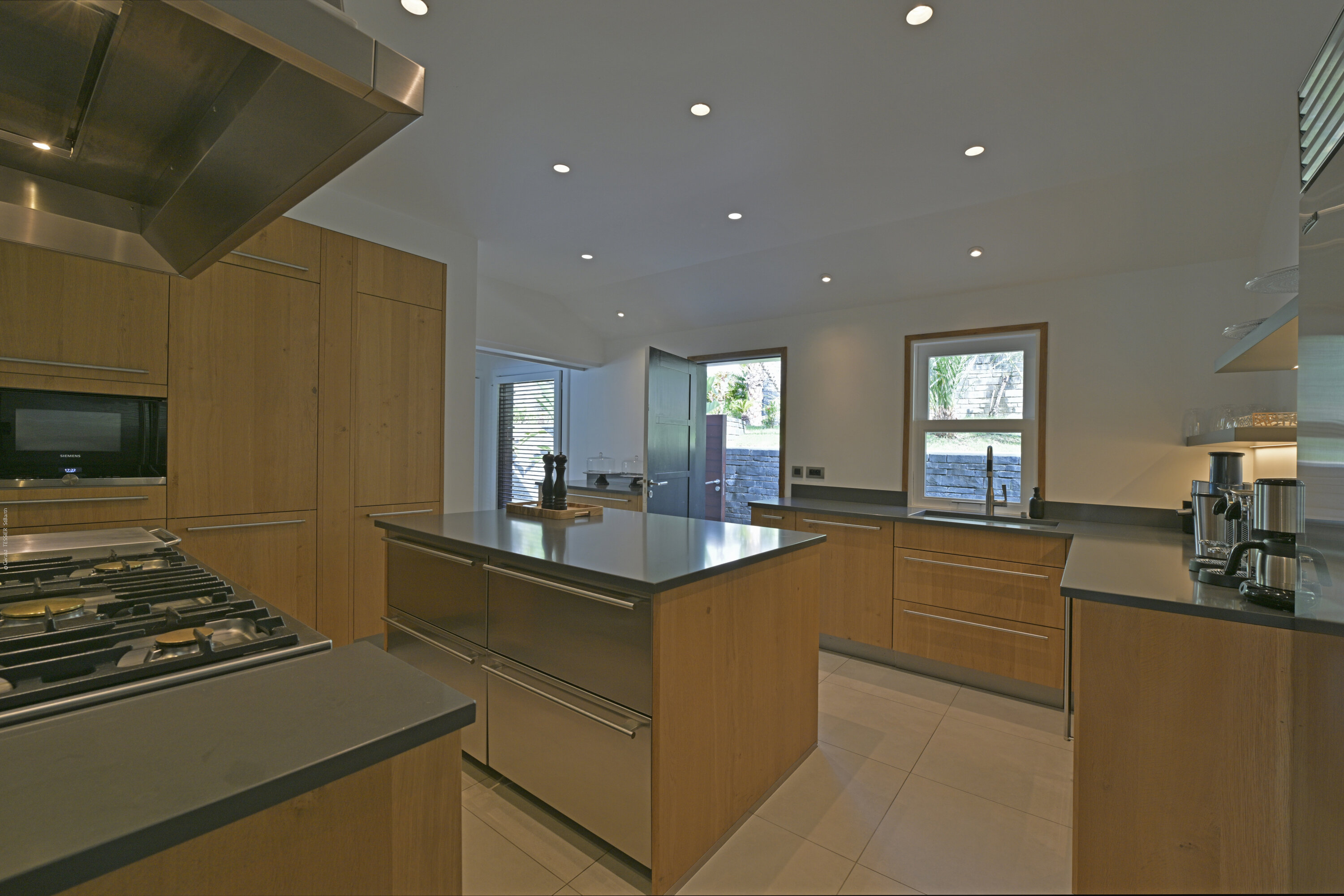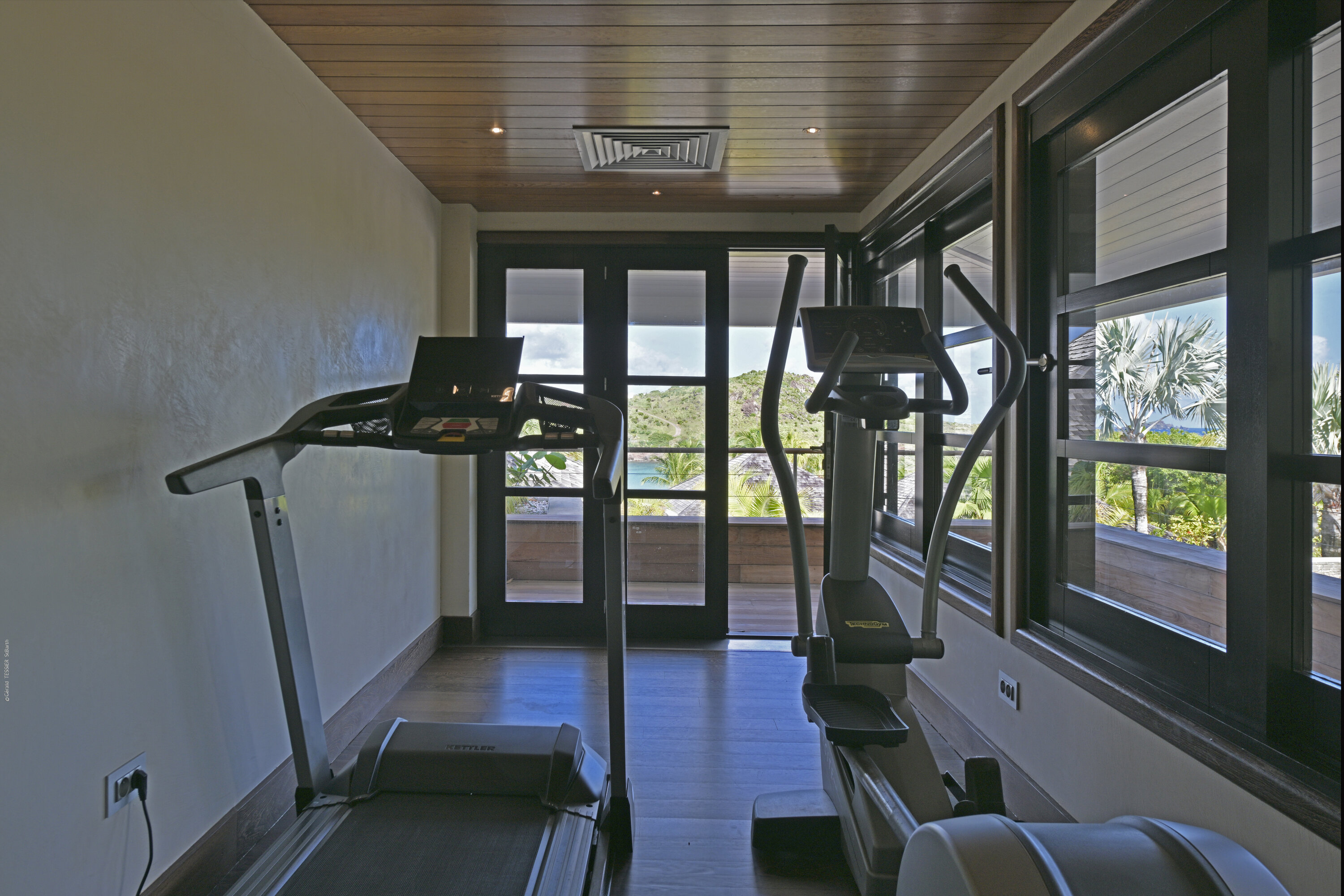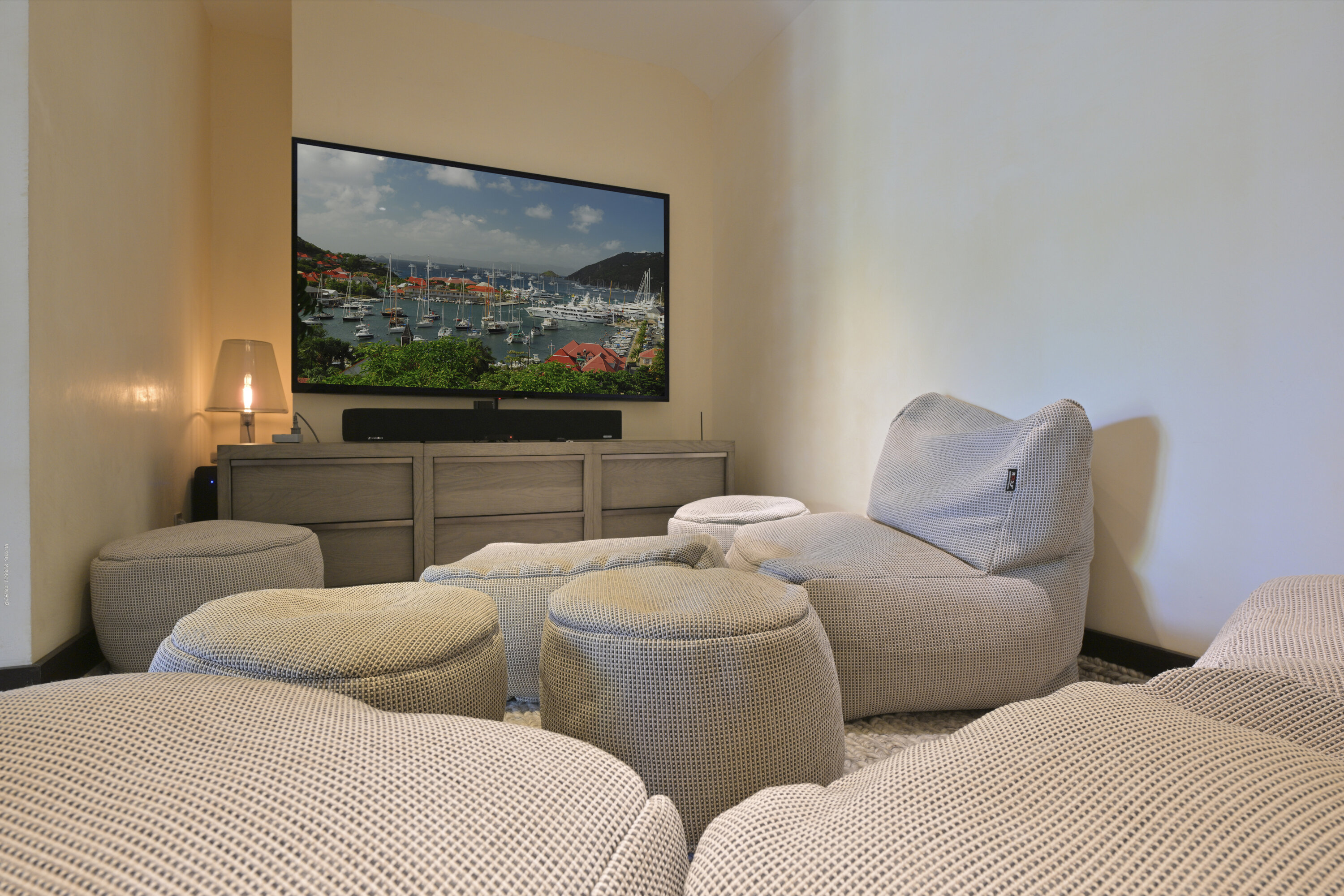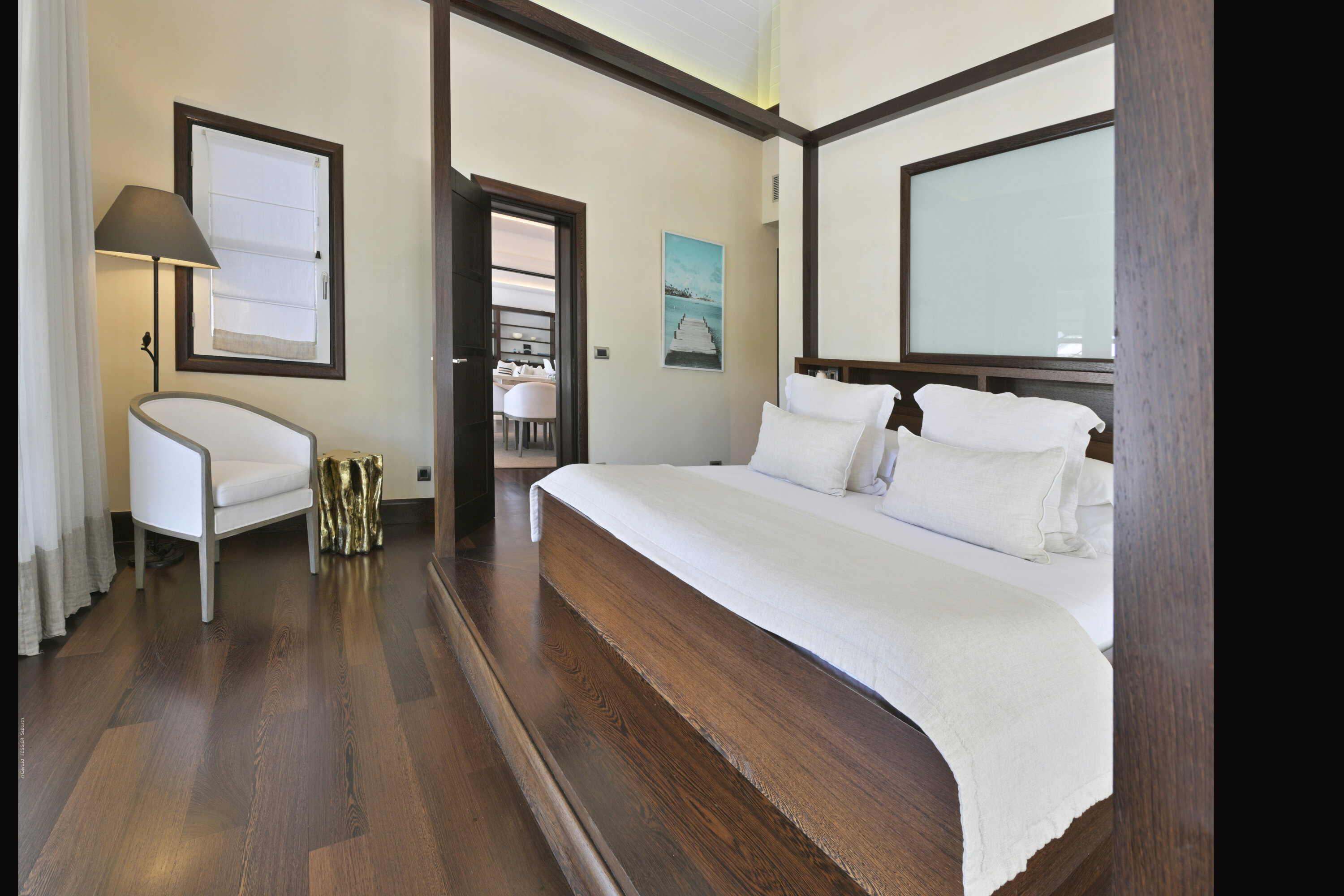 Villa Silver Rainbow, (villa code: WV SIL), is a contemporary 6-bedroom villa located in Petit Cul de Sac within a short walk of the beach and minutes from shopping. This villa offers stunning views of the bay and nearby island. A large, double staircase made of grey stones leads to the living room and large terrace with a heated infinity pool overlooking the bay. The modern living room is elegantly decorated with large comfortable sofas and a bar and opens to the air-conditioned gourmet kitchen. A private dining room features a large, wooden table with seating for 8 guests. Located next door is the master suite, which overlooks the view and has a 4-poster king-size bed and a spacious ensuite bathroom with a rain shower, bathtub, and a large dressing area. On the other side are 2 bedrooms with king-size beds, ensuite bathrooms, and ocean views. A junior cottage is located above the main house and includes 2 bedrooms, a kitchenette, and a living room. Each bedroom offers a king-size bed and ensuite bathroom. A well-equipped fitness room, office, and sixth bedroom, with a king-size bed and ensuite bathroom, are located above the cottage near the entrance. A path leads to a Balinese gazebo and, just beyond, access to the bay. The house also has air-conditioning in the bedrooms and fitness area, WiFi, a fax machine, U.S. satellite TV, and the use of shared tennis courts within walking distance. During the Thanksgiving and December holidays, the villa rents at the full occupancy rate regardless of how many bedrooms are used.Please fill out the form to begin your inquiry and we will connect you with a seasoned villa rental specialist.