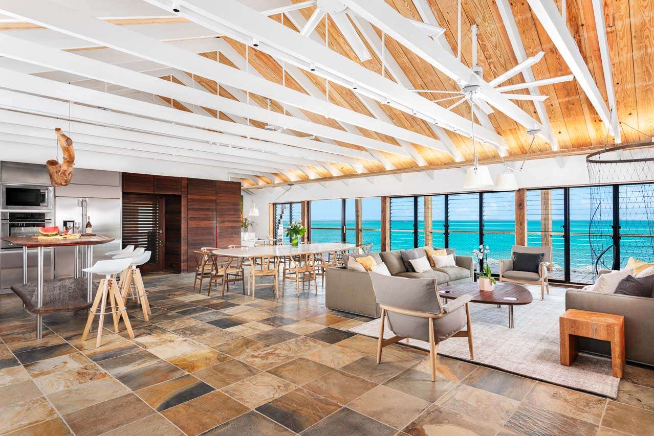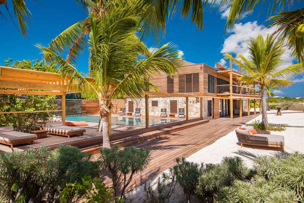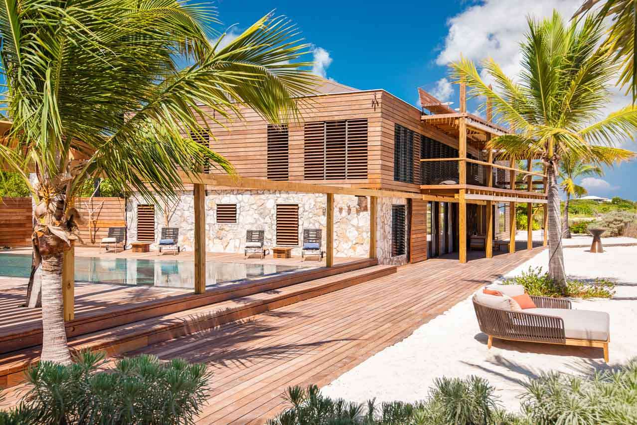 Welcome to Villa Silver Sands (booking code: PL SLS), a spectacular, spacious 8-bedroom family home in the Thompson Cove area of Providenciales. Located directly on Grace Bay beach, with a healthy dose of European design flair, this is one of the top luxury beachfront getaways in Turks and Caicos. Beautifully clad in island wood and coral stones, you’ll quickly fall in love with the imaginative design of Villa Silver Sands. Inside, open-plan living is made even more spacious with gorgeous, vaulted ceilings and wall-to-wall windows. Located on a quiet stretch of Grace Bay Beach, Silver Sands Villa is directly opposite some of the finest snorkeling in Providenciales. There are a handful of shops and restaurants within walking distance, including Da Conch Shack, a popular beachfront restaurant with delicious local food and live music. Island life doesn’t get much better than this. This villa is part of WIMCO’s Special Reserve Collection which means there is an exceptional level of personalized in-villa services, and the use of a private chef is included in the price. Living Spaces: Recently renovated, the living spaces in Silver Sands Villa are sublime. The gorgeous great room on the second floor is where you’ll spend most of your time inside, home to the kitchen, dining room, and living area. The entire room has wall-to-wall windows, letting you gaze out at the stunning Grace Bay Beach. At one end of the room are the snug sofas and flat-screen TV, perfect for some relaxed downtime inside. Whitewashed beams above contrast with earthy furnishings, woven rugs, and thoughtful island antiques. For an even more spectacular view, the third-floor viewing deck is the perfect setting to unwind with a punchy rum cocktail and a rosy island sunset. Cozy movie nights inside can be spent in the comfortable media room downstairs. Kitchen and Dining Room: The sleek kitchen is packed with everything you’ll need to create sumptuous meals during your stay. From easy breakfasts to more involved meals loaded with vibrant Caribbean flavors, the high-end appliances can handle anything you throw at them. Social dinners can be enjoyed at the dining table, with space for up to 14 guests. A stylish breakfast bar at the kitchen island is ideal for a casual meal or quick coffee before staking your claim by the villa pool. Alfresco meals can be enjoyed at the outdoor dining table located on the second-floor deck. Bedrooms: There are 8 bedrooms at Villa Silver Sands, each with a palatial king-sized bed that promises a wonderful night’s sleep. On the beach level, there are 5 bedrooms, quiet and calm places to recharge after a day of exploring. On the upper level adjacent to the villa's great room, 3 peaceful master suites are luxurious and peaceful, each with ensuite bathrooms. Two come with ocean views, while the other overlooks the villa’s lush garden. Outdoor Features: A beautiful wooden deck surrounds the inviting pool at Villa Silver Sands, a perfect setting for basking in the glorious island weather. Sunbeds line the water, while a beautiful waterfall in the pool will tempt you in for a refreshing dip. Nearby, a relaxing hammock grove is a relaxing locale to unwind with a good book or glass of wine. On the sand, there’s an area for beach tennis and volleyball, as well as a beach deck with more lounges to collapse upon after a salty swim in the water. This part of the beach is also home to Pete and Patricia the pelicans, a lovely pair of island locals who you’ll love having around. The entire property is surrounded by a well-kept garden of native island flora, including the beautiful tree known as “wood of life”, or lignum vitae. Soaking up the natural beauty of Turks and Caicos is as easy as stepping outside. Amenities: World-class amenities at Silver Sands Villa help make this an excellent choice for a beachfront stay in Turks and Caicos. There’s high-speed Wi-Fi, kayaks, paddleboards, snorkeling gear, a gas grill, and a fire pit. As part of the WIMCO Special Reserve Collection, the villa also comes fully staffed with a chef, butler, and housekeeper who will pander to your every need. For beachfront getaways in the Caribbean, Silver Sands Villa in Providenciales is a superb choice.