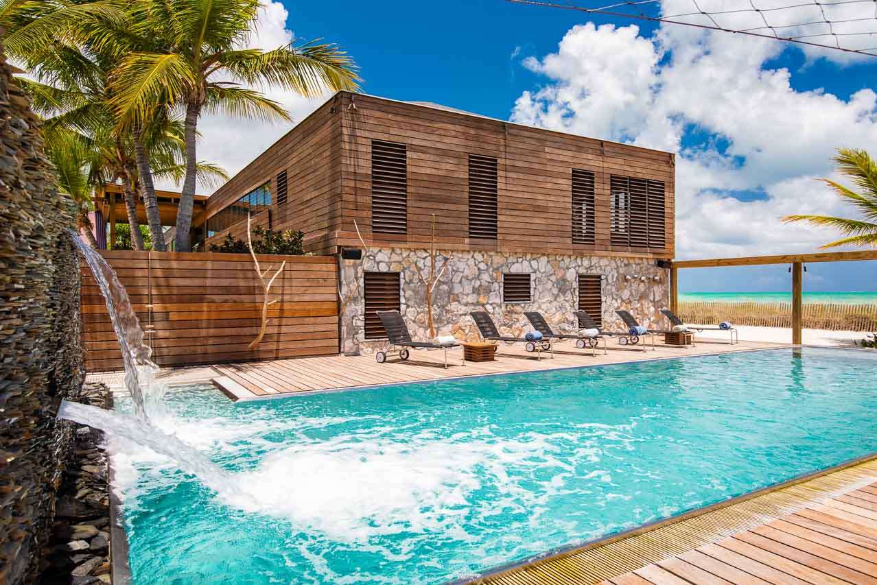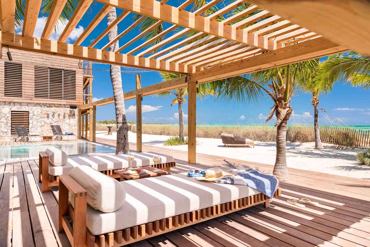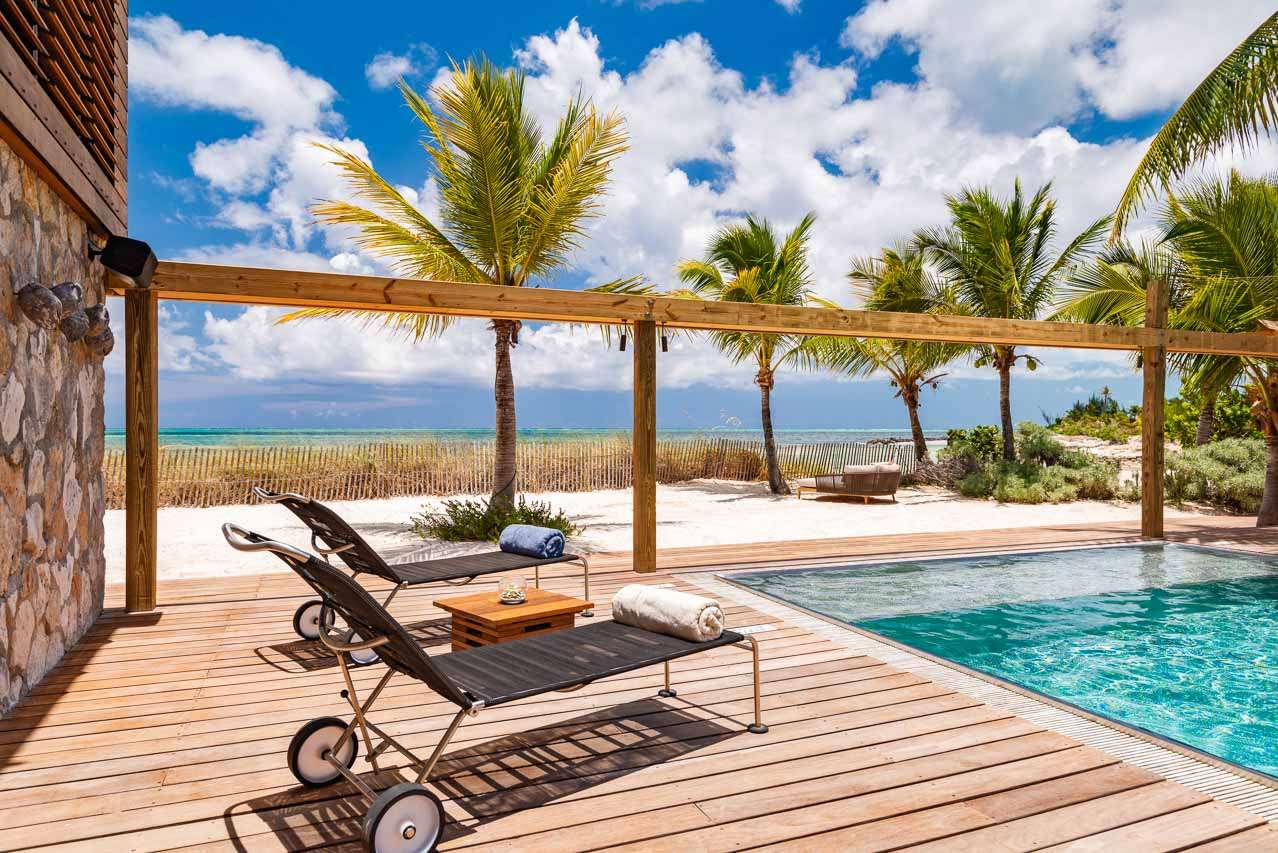 Welcome to Villa Silver Sands (booking code: PL SLS), a spectacular, spacious 8-bedroom family home in the Thompson Cove area of Providenciales. Located directly on Grace Bay beach, with a healthy dose of European design flair, this is one of the top luxury beachfront getaways in Turks and Caicos. Beautifully clad in island wood and coral stones, you’ll quickly fall in love with the imaginative design of Villa Silver Sands. Inside, open-plan living is made even more spacious with gorgeous, vaulted ceilings and wall-to-wall windows. Located on a quiet stretch of Grace Bay Beach, Silver Sands Villa is directly opposite some of the finest snorkeling in Providenciales. There are a handful of shops and restaurants within walking distance, including Da Conch Shack, a popular beachfront restaurant with delicious local food and live music. Island life doesn’t get much better than this. This villa is part of WIMCO’s Special Reserve Collection which means there is an exceptional level of personalized in-villa services, and the use of a private chef is included in the price. Living Spaces: Recently renovated, the living spaces in Silver Sands Villa are sublime. The gorgeous great room on the second floor is where you’ll spend most of your time inside, home to the kitchen, dining room, and living area. The entire room has wall-to-wall windows, letting you gaze out at the stunning Grace Bay Beach. At one end of the room are the snug sofas and flat-screen TV, perfect for some relaxed downtime inside. Whitewashed beams above contrast with earthy furnishings, woven rugs, and thoughtful island antiques. For an even more spectacular view, the third-floor viewing deck is the perfect setting to unwind with a punchy rum cocktail and a rosy island sunset. Cozy movie nights inside can be spent in the comfortable media room downstairs. Kitchen and Dining Room: The sleek kitchen is packed with everything you’ll need to create sumptuous meals during your stay. From easy breakfasts to more involved meals loaded with vibrant Caribbean flavors, the high-end appliances can handle anything you throw at them. Social dinners can be enjoyed at the dining table, with space for up to 14 guests. A stylish breakfast bar at the kitchen island is ideal for a casual meal or quick coffee before staking your claim by the villa pool. Alfresco meals can be enjoyed at the outdoor dining table located on the second-floor deck. Bedrooms: There are 8 bedrooms at Villa Silver Sands, each with a palatial king-sized bed that promises a wonderful night’s sleep. On the beach level, there are 5 bedrooms, quiet and calm places to recharge after a day of exploring. On the upper level adjacent to the villa's great room, 3 peaceful master suites are luxurious and peaceful, each with ensuite bathrooms. Two come with ocean views, while the other overlooks the villa’s lush garden. Outdoor Features: A beautiful wooden deck surrounds the inviting pool at Villa Silver Sands, a perfect setting for basking in the glorious island weather. Sunbeds line the water, while a beautiful waterfall in the pool will tempt you in for a refreshing dip. Nearby, a relaxing hammock grove is a relaxing locale to unwind with a good book or glass of wine. On the sand, there’s an area for beach tennis and volleyball, as well as a beach deck with more lounges to collapse upon after a salty swim in the water. This part of the beach is also home to Pete and Patricia the pelicans, a lovely pair of island locals who you’ll love having around. The entire property is surrounded by a well-kept garden of native island flora, including the beautiful tree known as “wood of life”, or lignum vitae. Soaking up the natural beauty of Turks and Caicos is as easy as stepping outside. Amenities: World-class amenities at Silver Sands Villa help make this an excellent choice for a beachfront stay in Turks and Caicos. There’s high-speed Wi-Fi, kayaks, paddleboards, snorkeling gear, a gas grill, and a fire pit. As part of the WIMCO Special Reserve Collection, the villa also comes fully staffed with a chef, butler, and housekeeper who will pander to your every need. For beachfront getaways in the Caribbean, Silver Sands Villa in Providenciales is a superb choice.