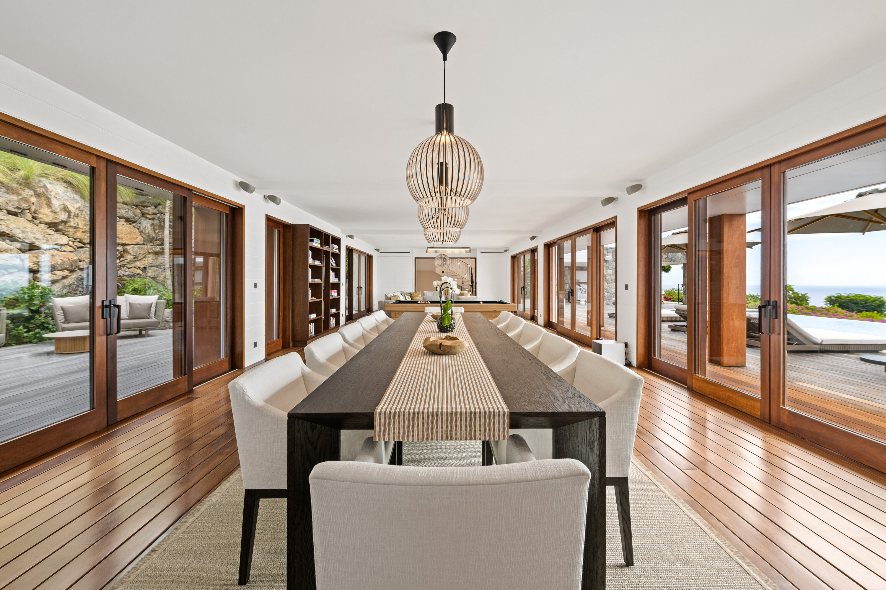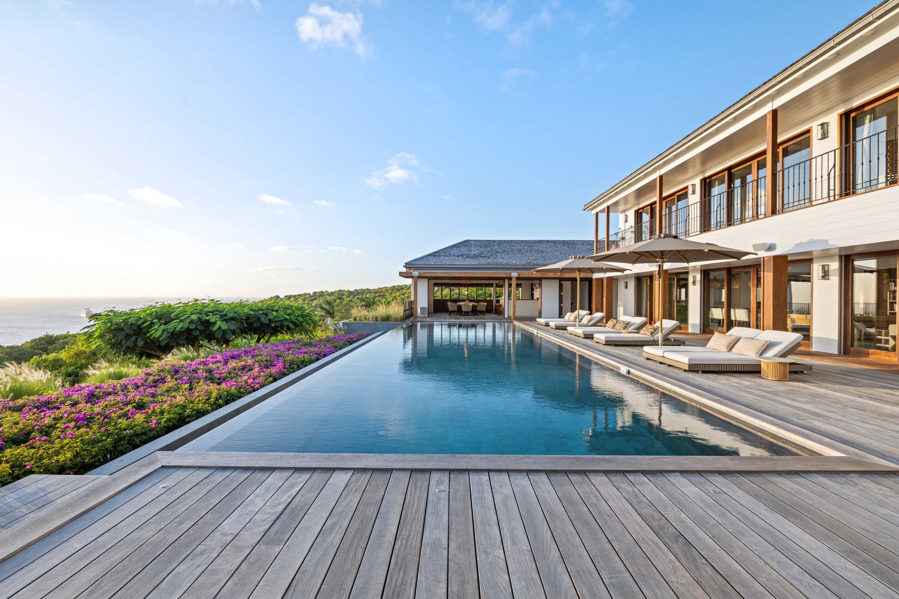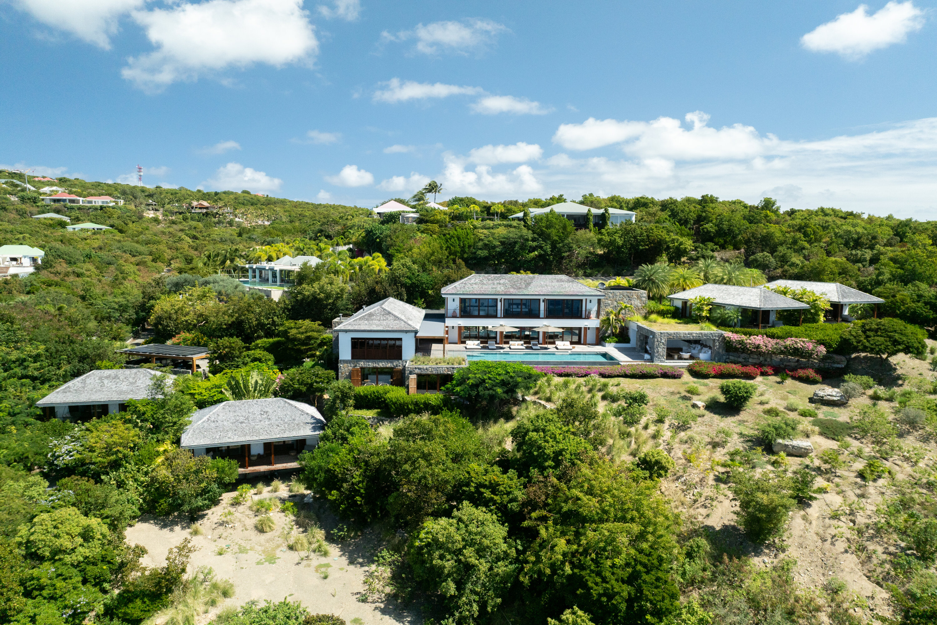 Welcome to the exquisite Villa Sixieme Sens (villa code: WV SNS), a luxurious retreat nestled in the prestigious Gouverneur area. This exceptional six-bedroom, six-bathroom villa promises an unparalleled vacation experience in an idyllic setting. Designed across three levels, the main house offers a seamless blend of elegance and comfort. The upper floor is dedicated to the master suite, complete with a private lounge, office, and an ensuite bathroom with a dressing room. On the ground floor, sunlit spaces invite relaxation, from the expansive living room to the dining area, separated by a stylish billiard table. Floor-to-ceiling windows frame breathtaking ocean views, enhancing the villa’s serene ambiance. Outside, Villa Sixieme Sens is a haven of tranquility, surrounded by lush tropical gardens that ensure privacy and seclusion. The infinity pool, lined with sun loungers and parasols, offers a stunning panoramic view of the ocean. An outdoor lounge, dining area, and bar create the perfect setting for moments of relaxation and conviviality. The lower level features the FISH bedroom, a cozy retreat with its own ensuite bathroom and private terrace. A well-equipped gym along the corridor provides a space to stay active while enjoying your stay. Scattered throughout the property, charming bungalows house the remaining suites. Perched higher up, the BANANA and PINEAPPLE bedrooms offer stunning sea views, while the LOVE and PEACE suites, slightly lower down, provide equally breathtaking perspectives of the ocean and gardens. Each suite boasts a private terrace and ensuite bathroom, ensuring comfort and seclusion. Villa Sixieme Sens masterfully blends the timeless charm of tropical architecture with contemporary luxury. Ultra-private and seamlessly integrated into its natural surroundings, it offers a sanctuary where you can unwind, rejuvenate, and escape the demands of everyday life.Please fill out the form to begin your inquiry and we will connect you with a seasoned villa rental specialist.