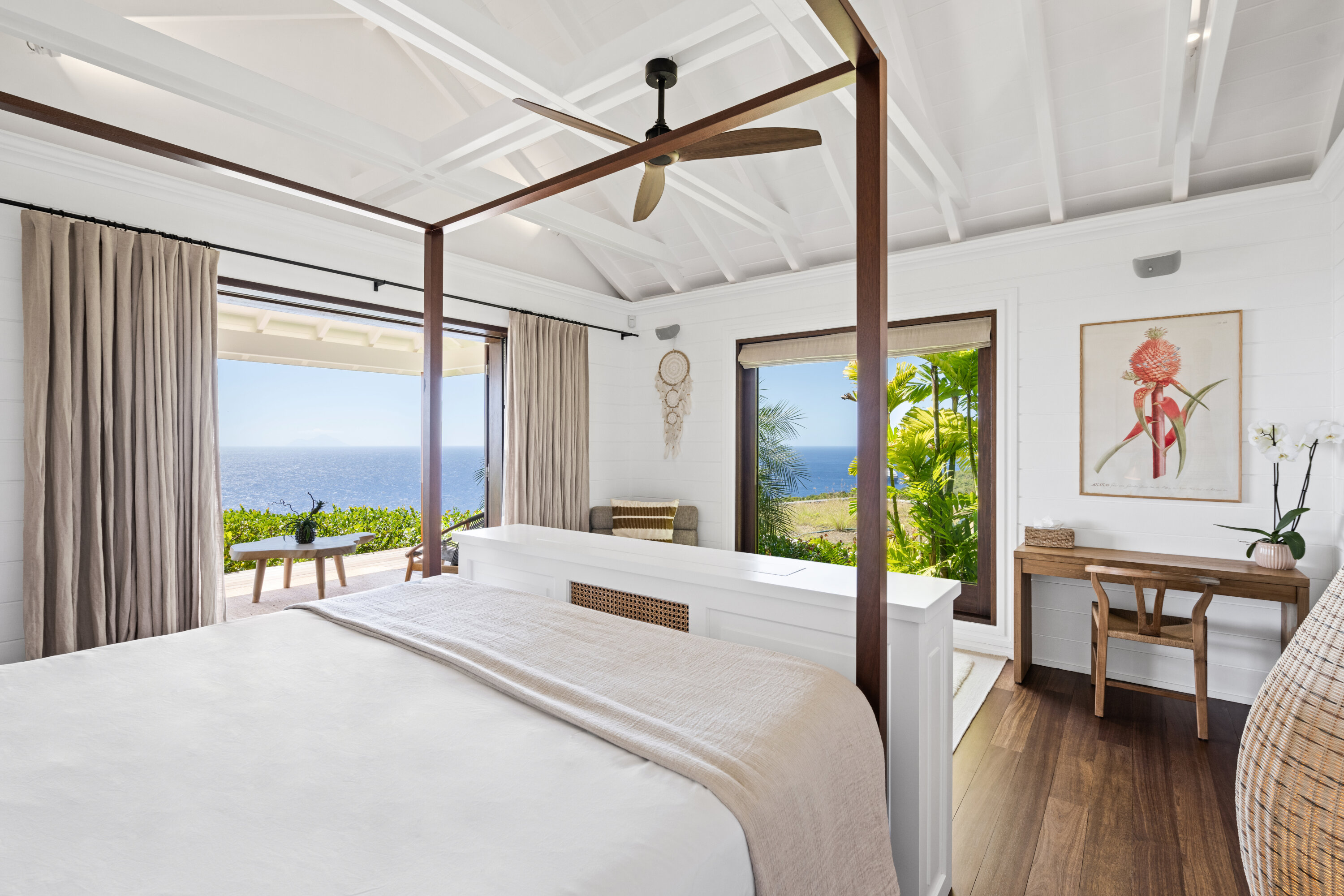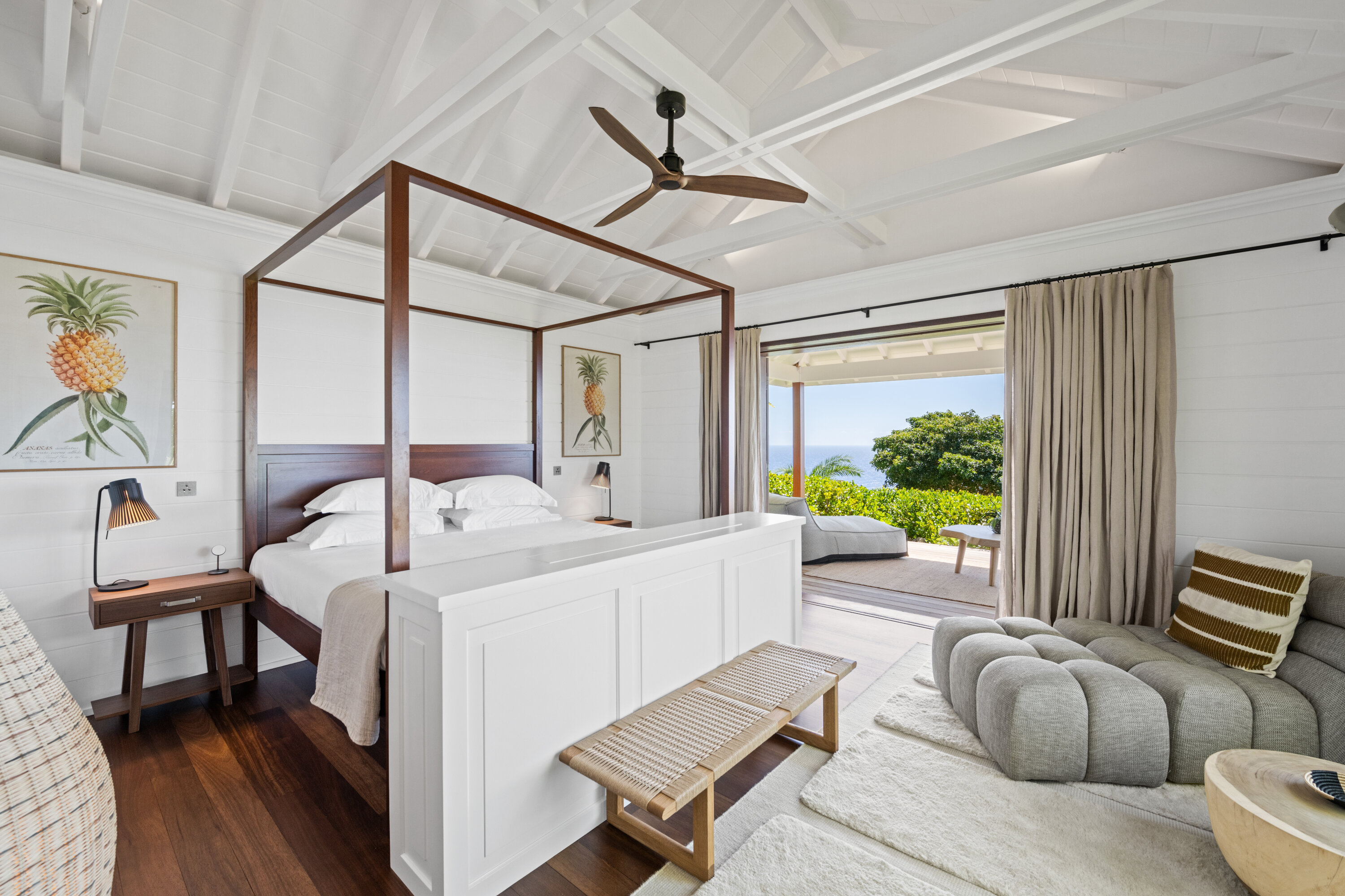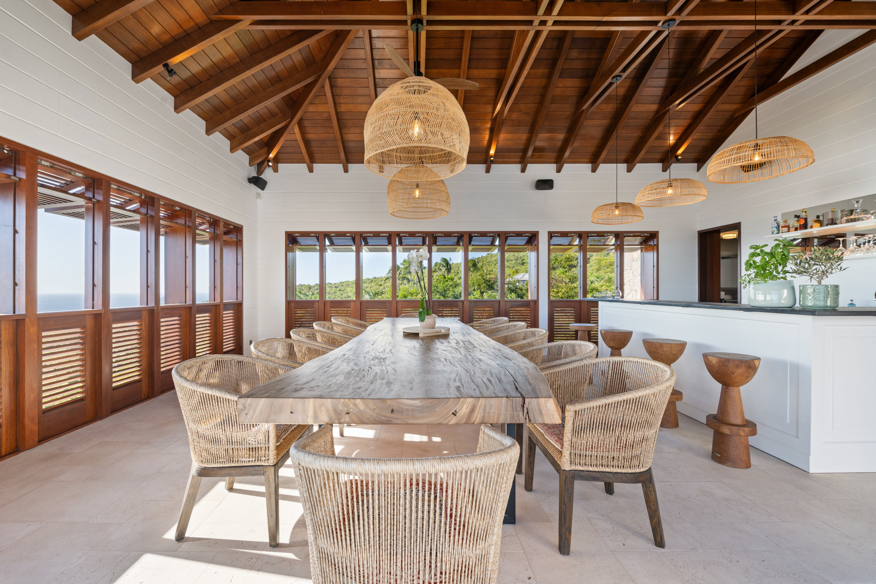 Welcome to the exquisite Villa Sixieme Sens (villa code: WV SNS), a luxurious retreat nestled in the prestigious Gouverneur area. This exceptional six-bedroom, six-bathroom villa promises an unparalleled vacation experience in an idyllic setting. Designed across three levels, the main house offers a seamless blend of elegance and comfort. The upper floor is dedicated to the master suite, complete with a private lounge, office, and an ensuite bathroom with a dressing room. On the ground floor, sunlit spaces invite relaxation, from the expansive living room to the dining area, separated by a stylish billiard table. Floor-to-ceiling windows frame breathtaking ocean views, enhancing the villa’s serene ambiance. Outside, Villa Sixieme Sens is a haven of tranquility, surrounded by lush tropical gardens that ensure privacy and seclusion. The infinity pool, lined with sun loungers and parasols, offers a stunning panoramic view of the ocean. An outdoor lounge, dining area, and bar create the perfect setting for moments of relaxation and conviviality. The lower level features the FISH bedroom, a cozy retreat with its own ensuite bathroom and private terrace. A well-equipped gym along the corridor provides a space to stay active while enjoying your stay. Scattered throughout the property, charming bungalows house the remaining suites. Perched higher up, the BANANA and PINEAPPLE bedrooms offer stunning sea views, while the LOVE and PEACE suites, slightly lower down, provide equally breathtaking perspectives of the ocean and gardens. Each suite boasts a private terrace and ensuite bathroom, ensuring comfort and seclusion. Villa Sixieme Sens masterfully blends the timeless charm of tropical architecture with contemporary luxury. Ultra-private and seamlessly integrated into its natural surroundings, it offers a sanctuary where you can unwind, rejuvenate, and escape the demands of everyday life.Please fill out the form to begin your inquiry and we will connect you with a seasoned villa rental specialist.