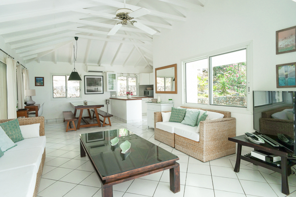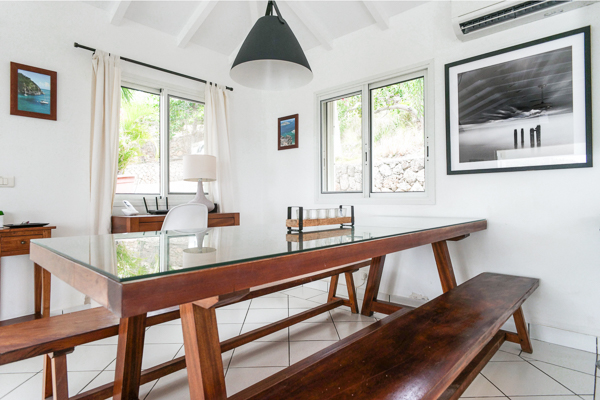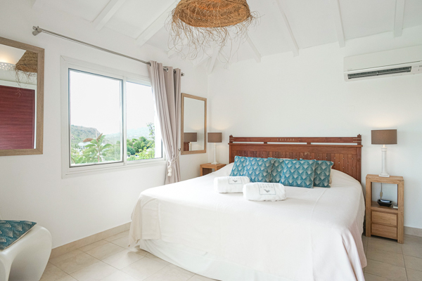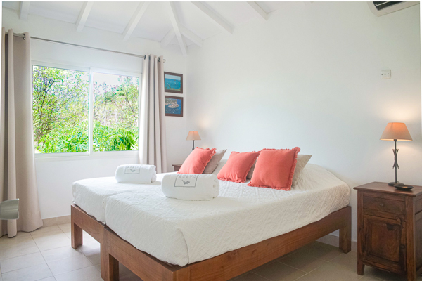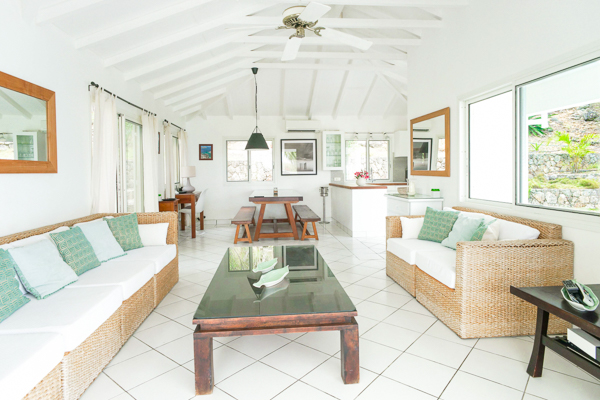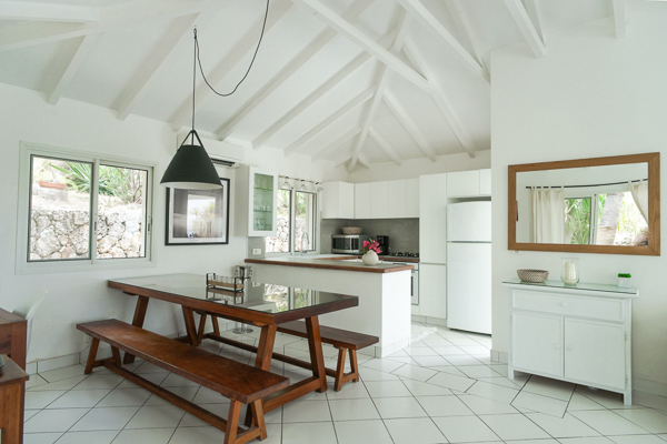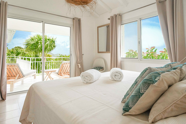 Welcome to Villa St. Jean Lataniers (villa code: WV REL), a charming 2 +1-bedroom villa located in St. Jean. Contemporary island interiors and wonderful views are the hallmark of this property, a blissful hideout on the island of St. Barts. The interiors at Villa St. Jean Lataniers are awash with calming color, from the white walls to the sea-green trim and soft, wooden accents. Pictures of the sea adorn the walls, and the entire home welcomes plenty of tranquil island light. Staying here is an ideal choice for those island travelers looking for a laid-back and stylish home for their St. Barts vacation. Nestled within the hills of St. Jean, Villa St. Jean Lataniers enjoys a private and quiet location not far from town. It’s a short drive down the hill to reach the beach, boutique shops, and restaurants, while the capital Gustavia is only 10 minutes by car. The villa also enjoys beautiful views of the Caribbean and the surrounding landscapes. Airy and pared-back living spaces inside are designed to help guests relax and feel at ease. There’s a distinctive tropical style to the home and an inviting open-plan great room where you’ll gather with family and friends. Here you’ll find the living room, dining area, and kitchen in one large space, with doors opening to the outdoor terrace. The living room has comfortable sofas with beige and sea-green cushions, an inviting spot to sink in and unwind. A breakfast bar separates the living room from Villa St. Jean Lataniers’ kitchen. Chic white cabinetry and high-end appliances make this space a pleasure to cook in. Our concierge could even organize a grocery delivery, or for a special occasion, a visit from one of the island’s chefs. Next to the kitchen is the beautiful dining room table, made from island wood and with unique bench-style seating. It’s a wonderful setting for meals together as a group after a long day at the beach. The 3 bedrooms at Villa St. Jean Lataniers are peaceful and serene, with soft linens, plush beds, and wonderful views over St. Barts. The master bedroom has a king-sized bed, an ensuite bathroom, and a private terrace with views of the shimmering Caribbean. The second bedroom also features a king-sized bed and shares its bathroom with the third bedroom. This final room has a pair of twin beds, although they can be pushed together to make another king. Simple and comfortable, each bedroom promises a wonderful night’s sleep. Outside, a lush, tropical garden and trees surround the property, which is frequently visited by peacocks. It also provides privacy for lounging around on the outdoor terrace, enjoying the fabulous island weather. There’s a covered terrace with white tiles, featuring an outdoor dining area for meals and a swinging hammock, ideal for reading outside or a nap in the cool breeze. Loungers for sunbathing surround the infinity pool, which has steps for easy access to the refreshing water. For days at the beach, it’s a short drive to the gorgeous shores of St. Jean. This picture-perfect sweep of sand and turquoise water is ideal for swimming in the warm Caribbean water. During the Thanksgiving and December holidays, the villa rents at the full occupancy rate regardless of how many bedrooms are used.Please fill out the form to begin your inquiry and we will connect you with a seasoned villa rental specialist.