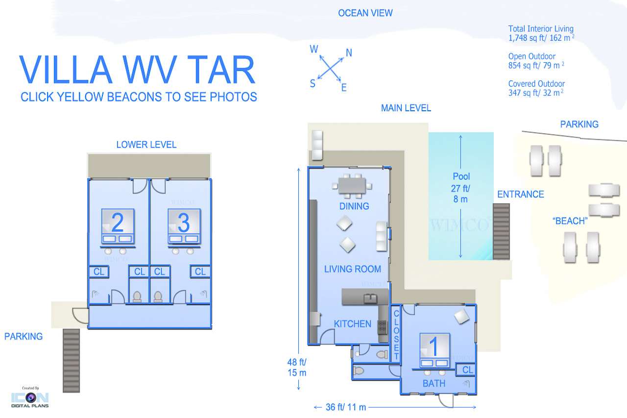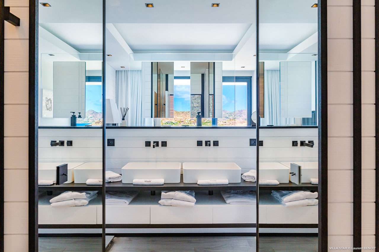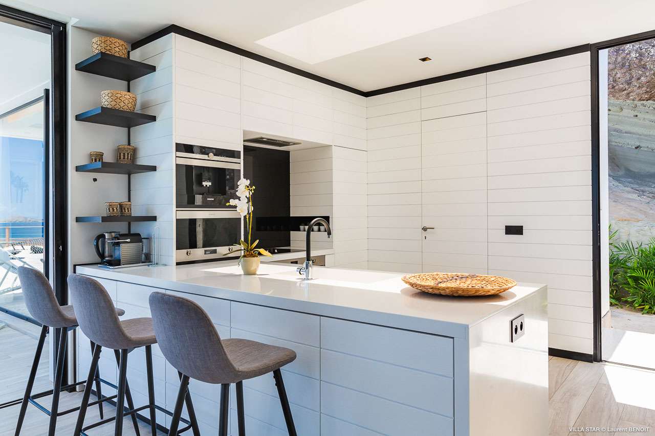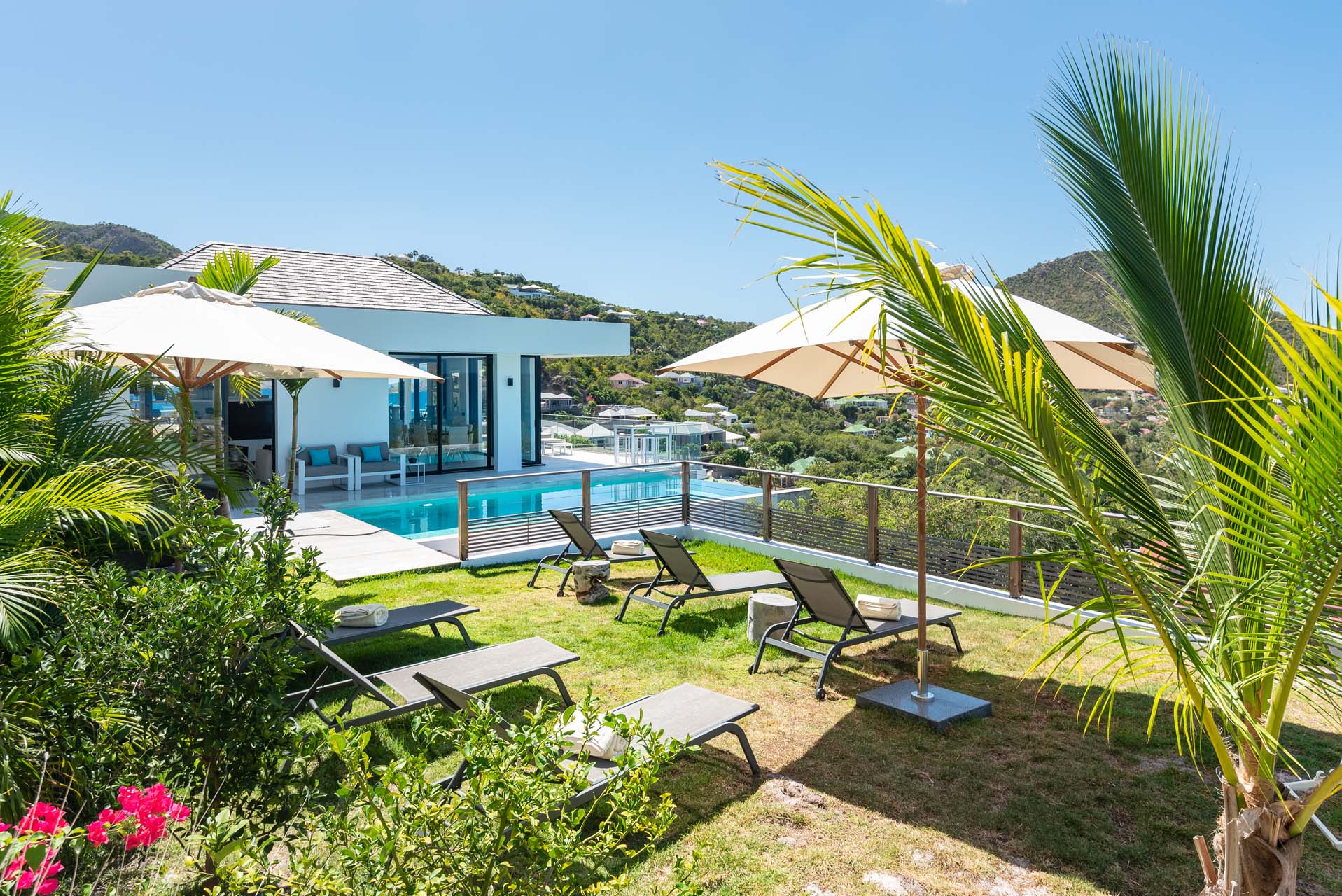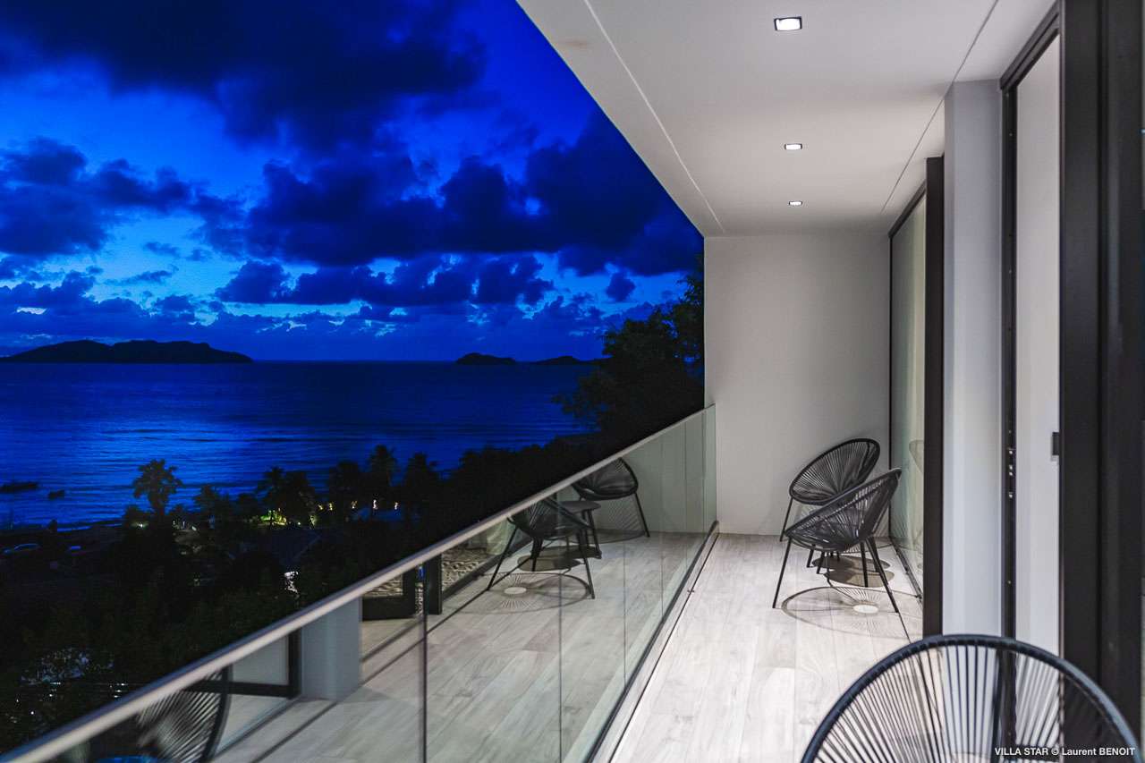 Welcome to Villa Star (villa code: WV TAR), a modern 3-bedroom villa in Camaruche above Lorient Bay, St. Barts. This luxurious home unabashedly celebrates the finer things in life, from the outstanding island views to the high-end design. The interiors of Villa Star are sleek and chic, contemporary white with black trim creating a luxurious atmosphere. Stylish furnishings offer comfortable spots to relax, while large doors let in plenty of island breezes and natural light. Built into the rock of the hillside overlooking Lorient and its magnificent bay, Villa Star offers spectacular views and sunsets. The beach is a short drive away, while nearby St. Jean is an exquisite spot with excellent restaurants and an enticing, laid-back tempo. Fully air-conditioned, the villa’s main room can be a welcome refuge after a long day in the sun. It can also be opened to the natural breezes for those who prefer the feeling of being outside with the comforts of home. This space features the living room, dining area, and kitchen. In the living room, there are comfortable couches that coax you to sink in at any time of the day. Whether you’re reading a good book, watching TV, or indulging in an afternoon nap, this is the most relaxing space inside Villa Star. Next to the living room is the stylish kitchen, with sleek cabinetry and the latest modern appliances. You’ll have no trouble preparing meals for your group here. Our concierge even has a few tricks up their sleeves to make your stay easier, from grocery deliveries to arranging a private chef for an unforgettable in-villa experience. At the far end of the great room is the dining table, sitting in front of the amazing view. Pairing a fine island meal and a bottle of wine with these vistas is a great way to enjoy an evening with family and friends. There are 3 outstanding bedrooms inside Villa Star, quiet places to reflect and recharge each evening. The master bedroom is situated right outside the living room in front of the pool. This room has a large ensuite bathroom with an indoor and outdoor shower. Two more bedrooms are on the lower floor in a hallway next to the parking area and accessed via exterior stairs, both have ensuite bathrooms with indoor showers. All bedrooms benefit from the views and come with a TV, his-and-hers closets, a minibar, and a plush European king-sized bed. Villa Star is situated directly above WV STR and can be rented together for a total of 8 bedrooms. The large outdoor space is centered around the infinity pool and enjoys the sun for most of the day. You could spend countless hours here, sunbathing on loungers with a cool drink between dips in the refreshing water. Around the corner is a lounge area with outstanding views over the shimmering Caribbean below. At sunset, golden light glows across the tropical landscape, lighting up the turquoise waters, the hills on either side and the luxury yachts scattered around the bay. On the other side of Villa Star’s pool is a unique terrace filled with sand, nicknamed “The Beach”. There are loungers here for more sunbathing, and you can scrunch your toes in the soft sand with a drink or two. It’s also a great area to host a beach-themed party, with the terrific vistas acting as a backdrop. During the Thanksgiving and December holidays, the villa rents at full occupancy rates regardless of how many bedrooms are used.Please fill out the form to begin your inquiry and we will connect you with a seasoned villa rental specialist.