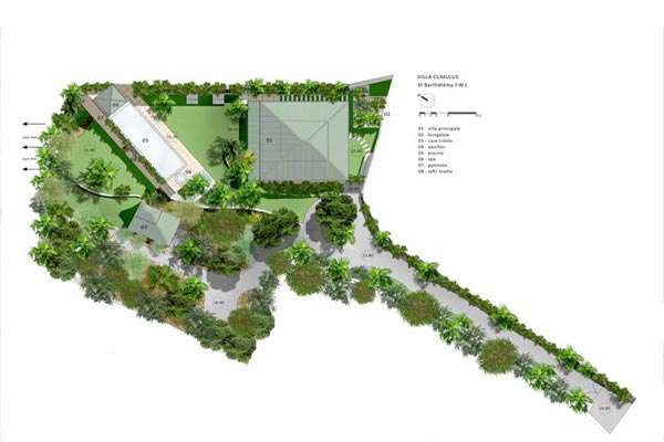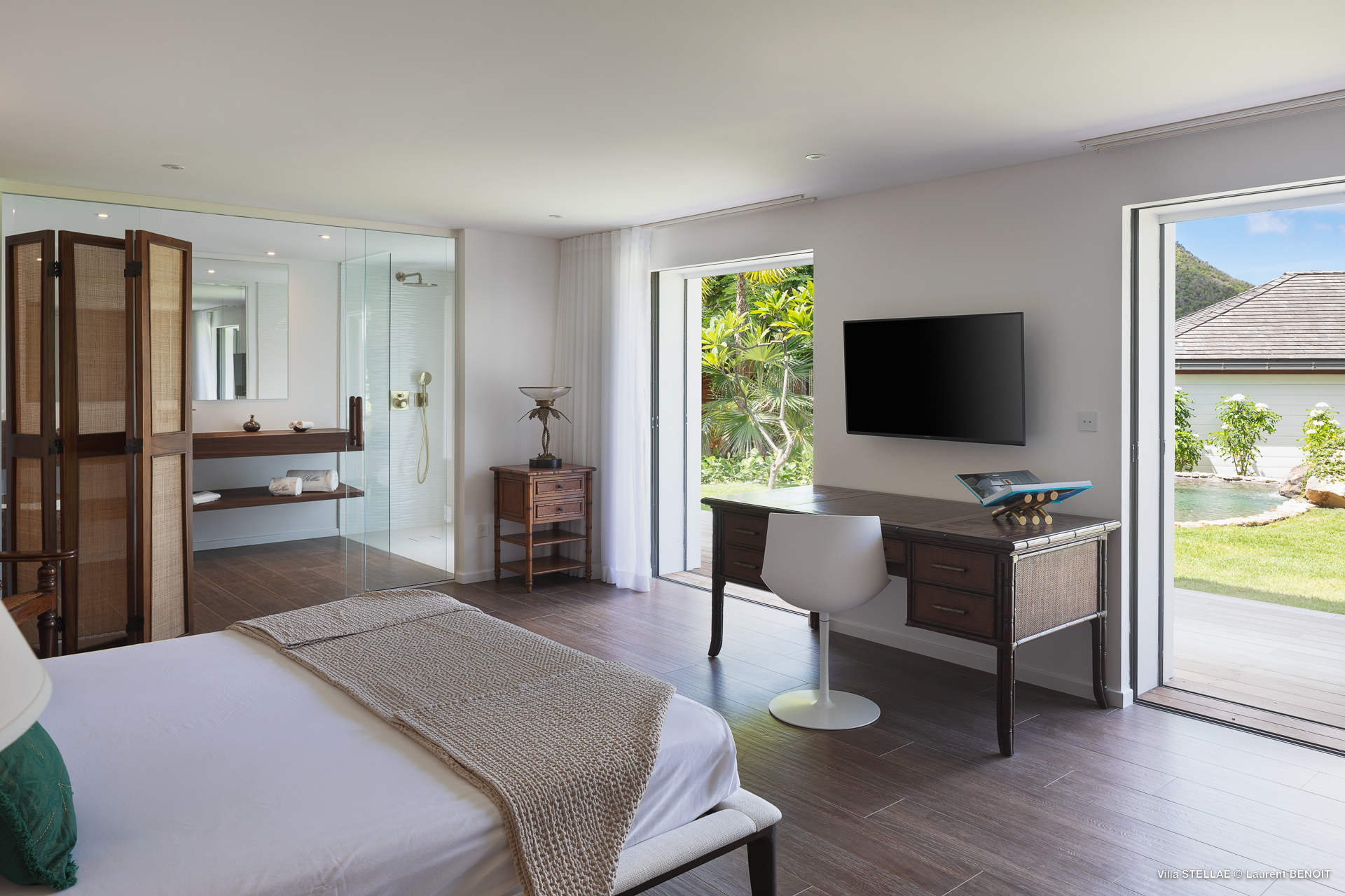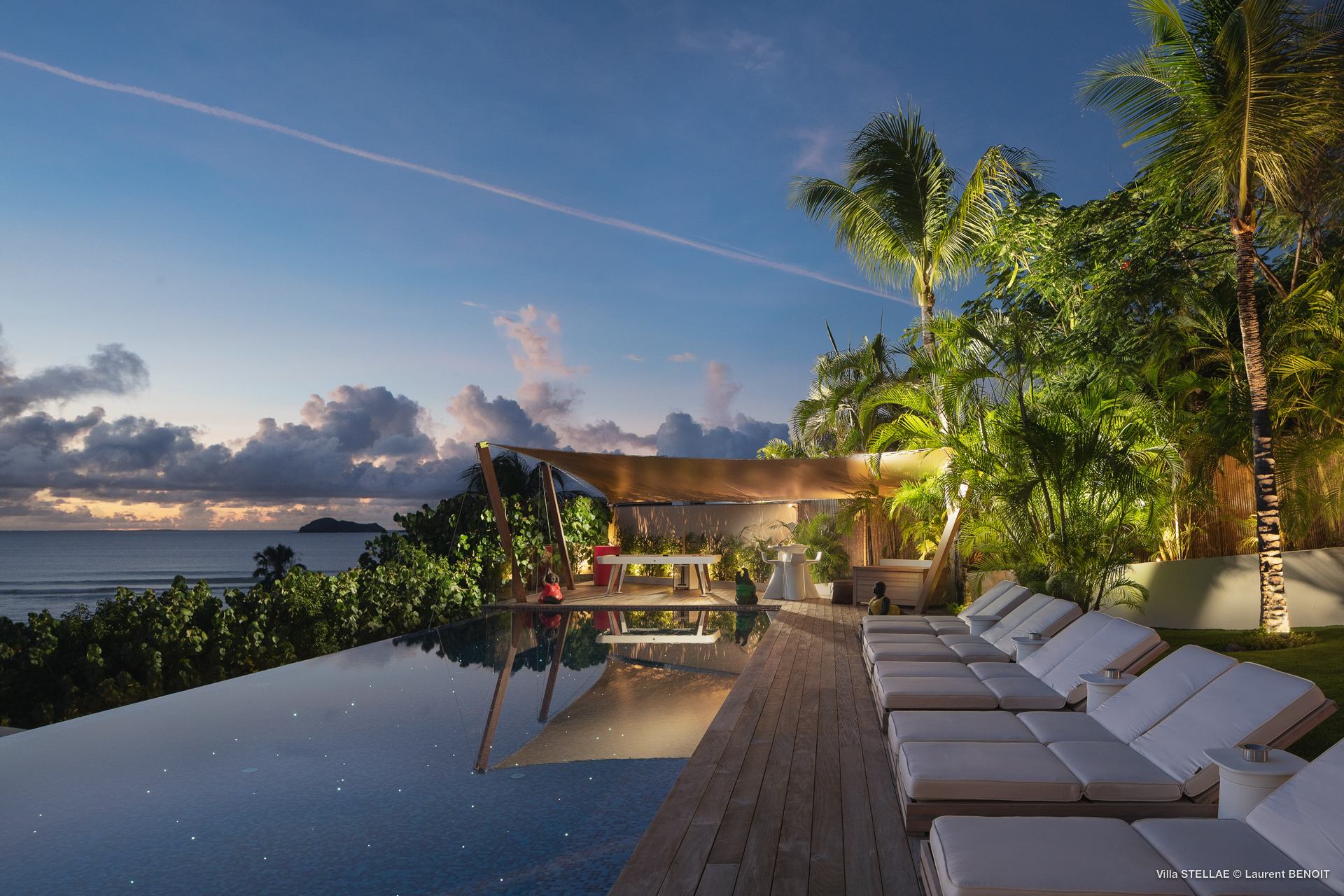 Villa Stellae, (villa code: WV STL) is a 6-bedroom villa located on the Lorient hillside and within walking distance to the beach, grocery stores and bakery. Villa Stellae is ideal for the discriminating client looking for high-end furnishings and quality construction. The main building graces the top of the estate and features a living area, kitchen with bar, covered dining area with an outdoor living area, guest bath, marble floors, and two ensuite bedrooms. The third ensuite bedroom with patio and Jacuzzi is in a detached pavilion just to the rear of the main living room. A huge pool, BBQ area, and pool table cascade down the property. On the lower level of the main house is a 4th ensuite bedroom, gym, overlooking a second, natural-shaped pool in the garden. Two more ensuite bedrooms in individual Caribbean-style pavilions are near the second pool, each with privacy. Villa Stellae boasts a sunset and water view, is gated and is accessible by a private road.Please fill out the form to begin your inquiry and we will connect you with a seasoned villa rental specialist.