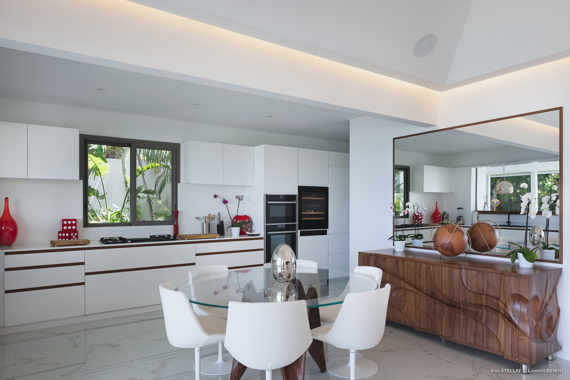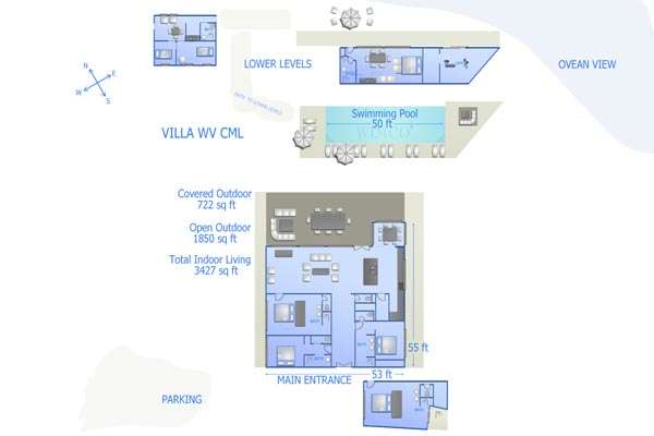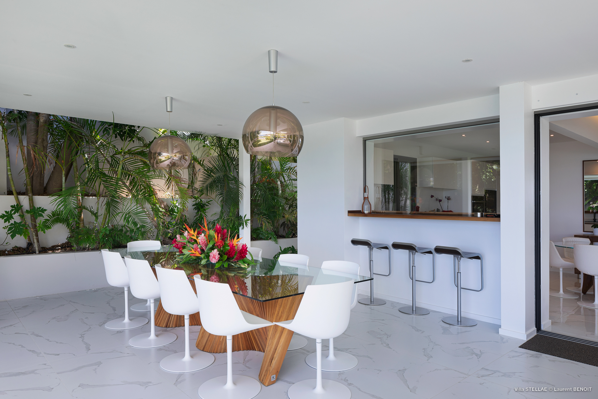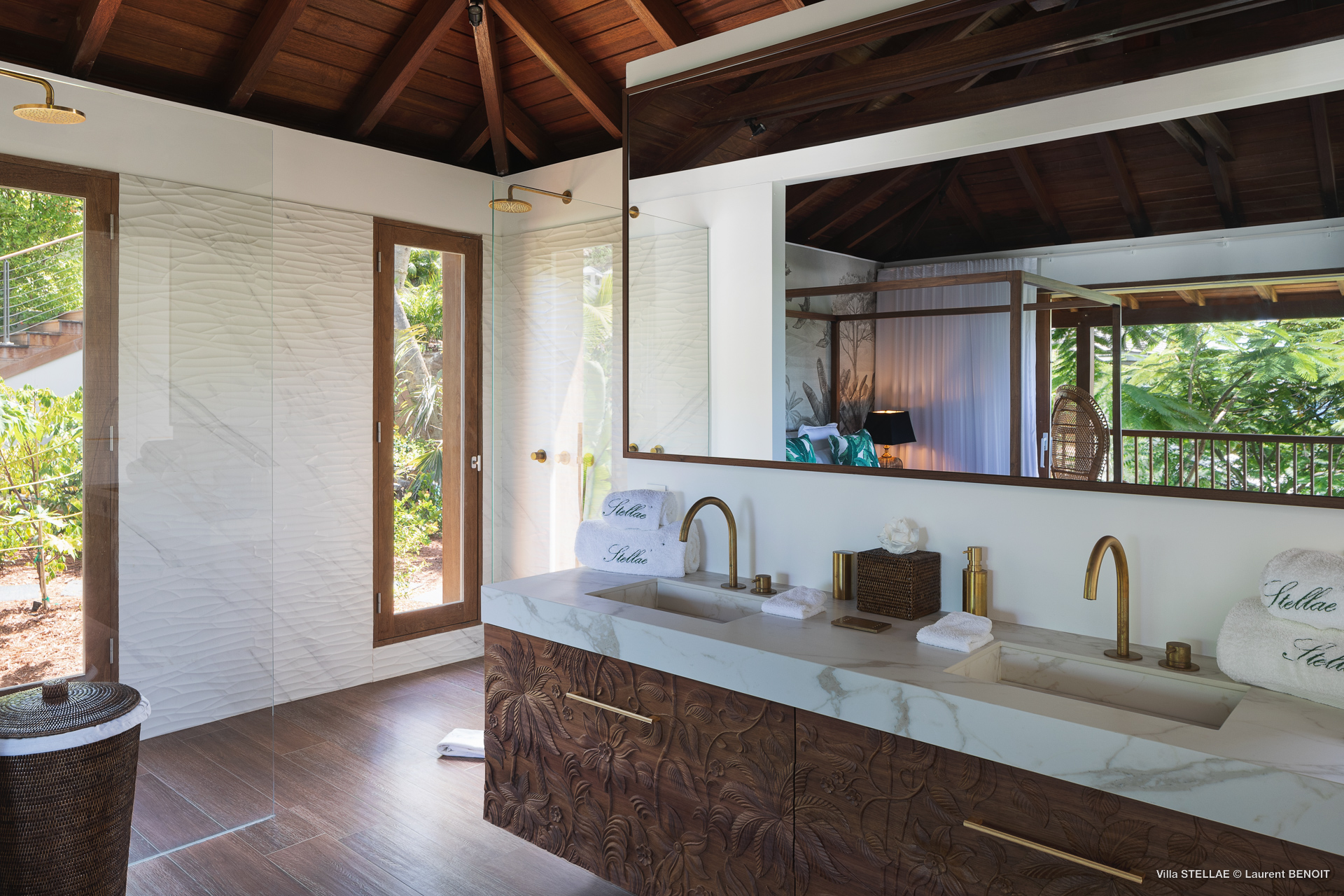 Villa Stellae, (villa code: WV STL) is a 6-bedroom villa located on the Lorient hillside and within walking distance to the beach, grocery stores and bakery. Villa Stellae is ideal for the discriminating client looking for high-end furnishings and quality construction. The main building graces the top of the estate and features a living area, kitchen with bar, covered dining area with an outdoor living area, guest bath, marble floors, and two ensuite bedrooms. The third ensuite bedroom with patio and Jacuzzi is in a detached pavilion just to the rear of the main living room. A huge pool, BBQ area, and pool table cascade down the property. On the lower level of the main house is a 4th ensuite bedroom, gym, overlooking a second, natural-shaped pool in the garden. Two more ensuite bedrooms in individual Caribbean-style pavilions are near the second pool, each with privacy. Villa Stellae boasts a sunset and water view, is gated and is accessible by a private road.Please fill out the form to begin your inquiry and we will connect you with a seasoned villa rental specialist.