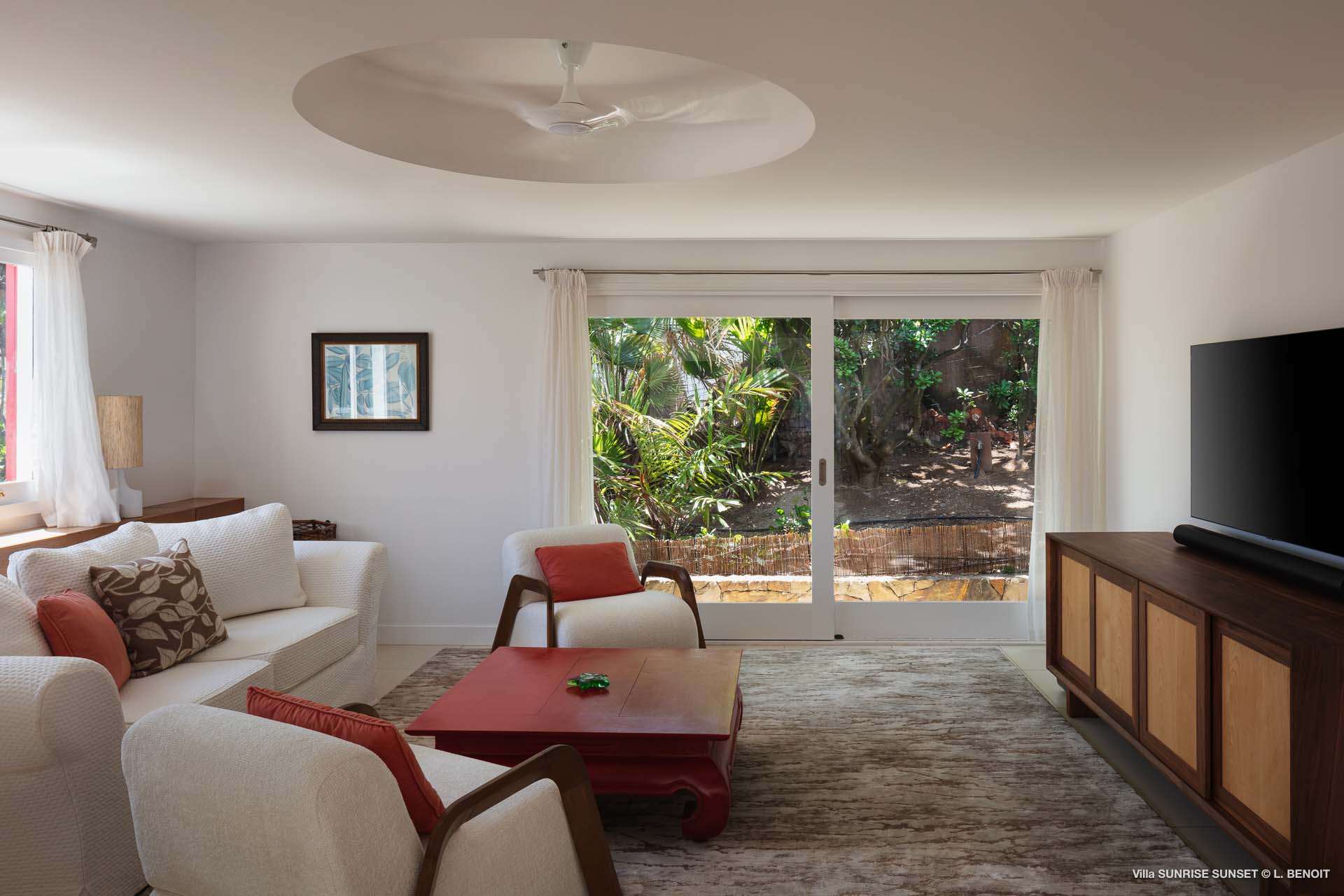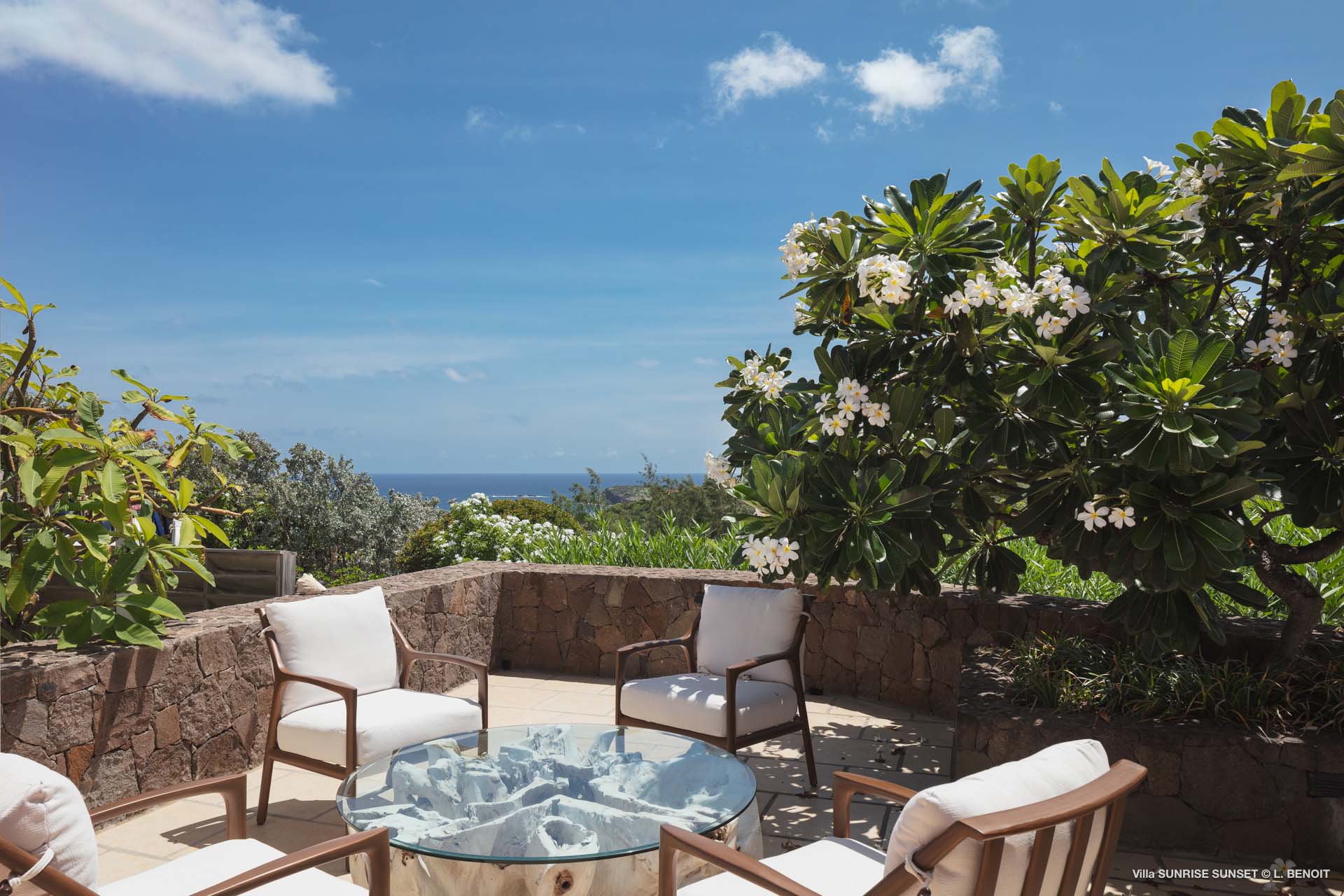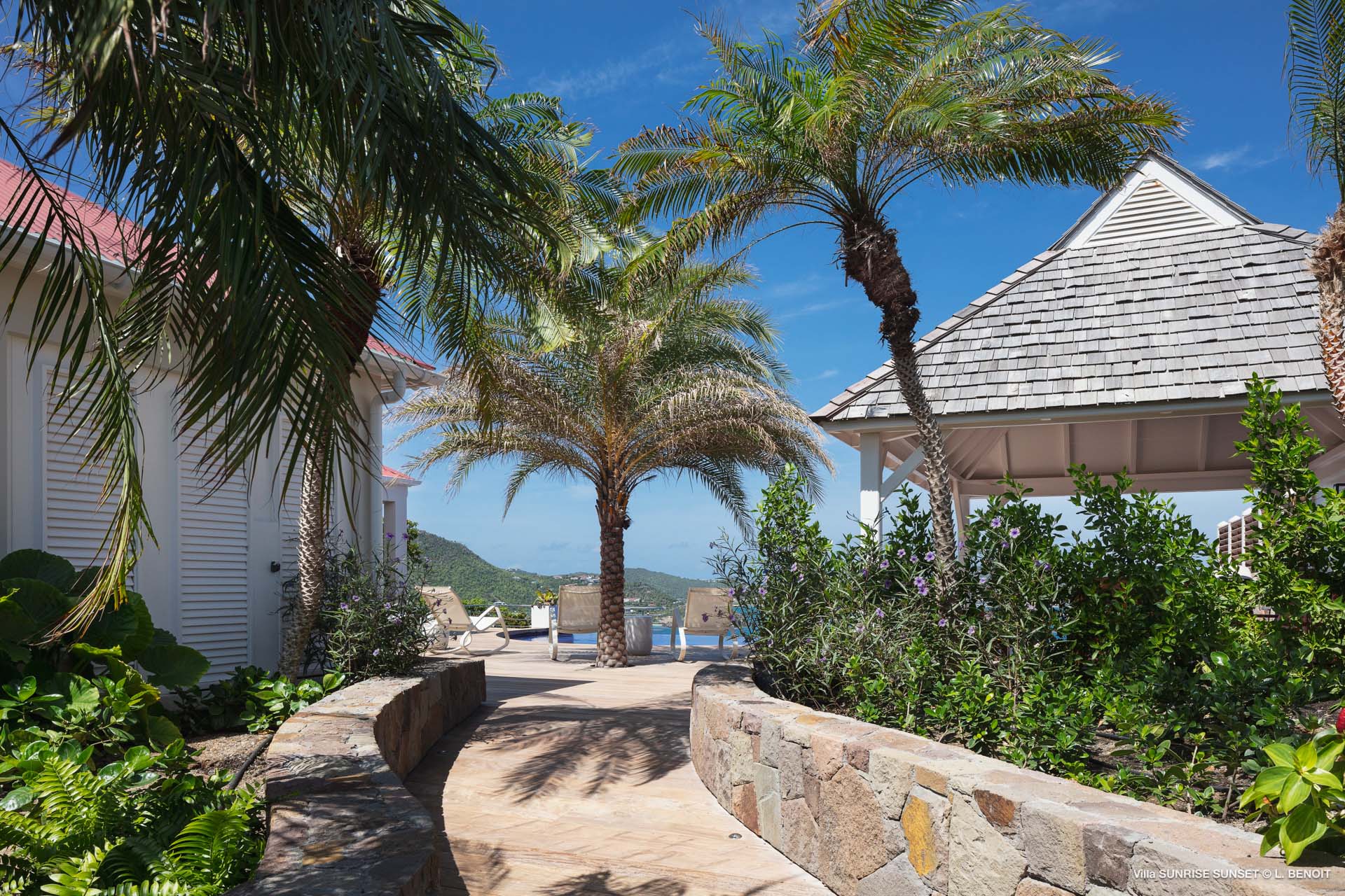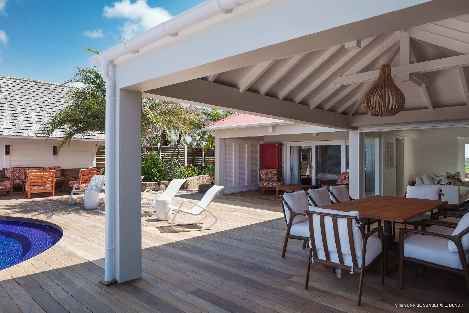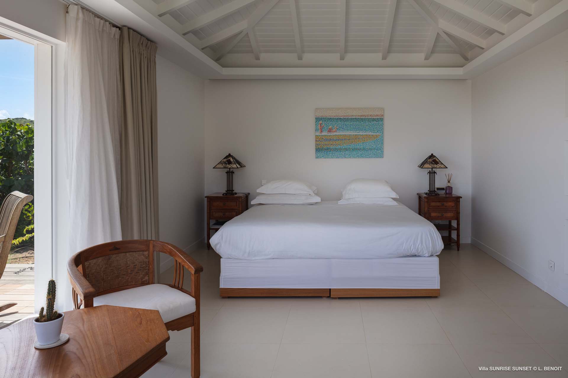 Villa Sunrise-Sunset (villa code: WV SRS) is a rare opportunity to be located high on the coveted Ridge Road in beautiful Point Milou. From here you will enjoy stunning views of the Caribbean as well as St Martin, Anguilla, and the sun as it sets behind St Bart’s airport. Have your morning coffee on the Atlantic side terrace with the sunrise. The Caribbean side offers a spacious deck with a heated pool cascading down into the lower-level pool. The bench in the upper pool is perfect for sipping your sunset cocktails and taking in the breathtaking panorama. The terrace offers sun and shade as well as abundant living and dining options. The house has a spacious living room open to both the Caribbean and Atlantic side terraces, a formal dining area as well as a separate TV room, and a new contemporary kitchen. The main house has 2 air-conditioned bedrooms with ensuite baths and a patio that opens to the sea. Adjacent to the main house is a very spacious air-conditioned guest house with an ensuite bath along with a sitting and coffee area, as well as a private deck overlooking the Atlantic. The home was newly-renovated and furnished in 2023. Villa Sunrise-Sunset is a lovely vacation home that will suit honeymooners, couples as well as families with children.Please fill out the form to begin your inquiry and we will connect you with a seasoned villa rental specialist.
