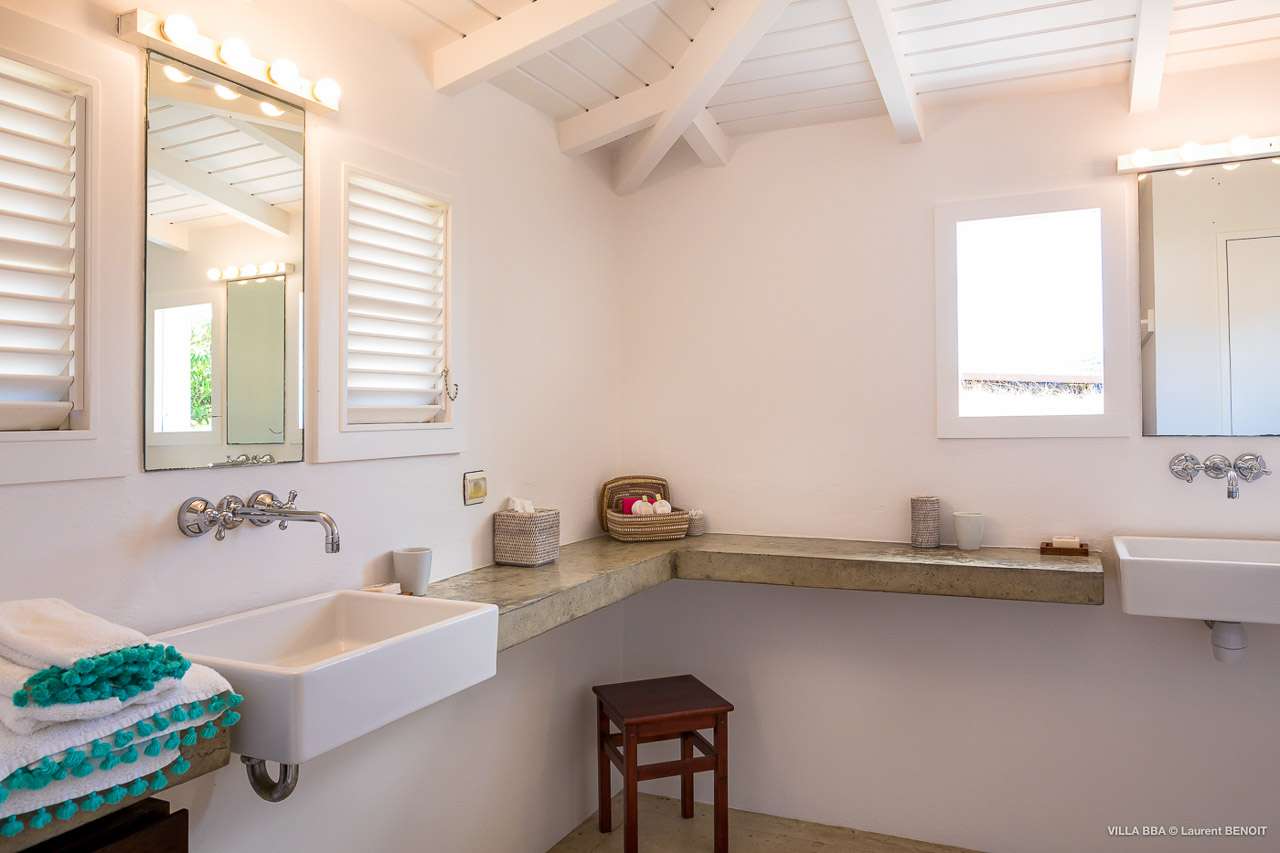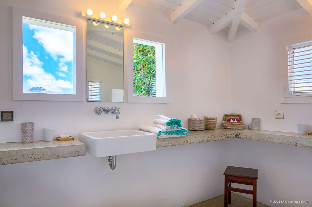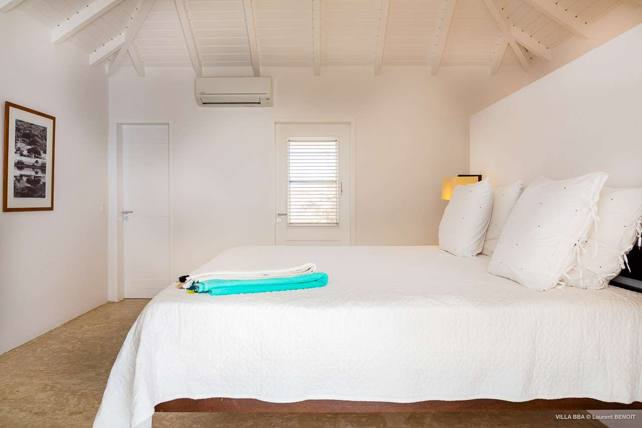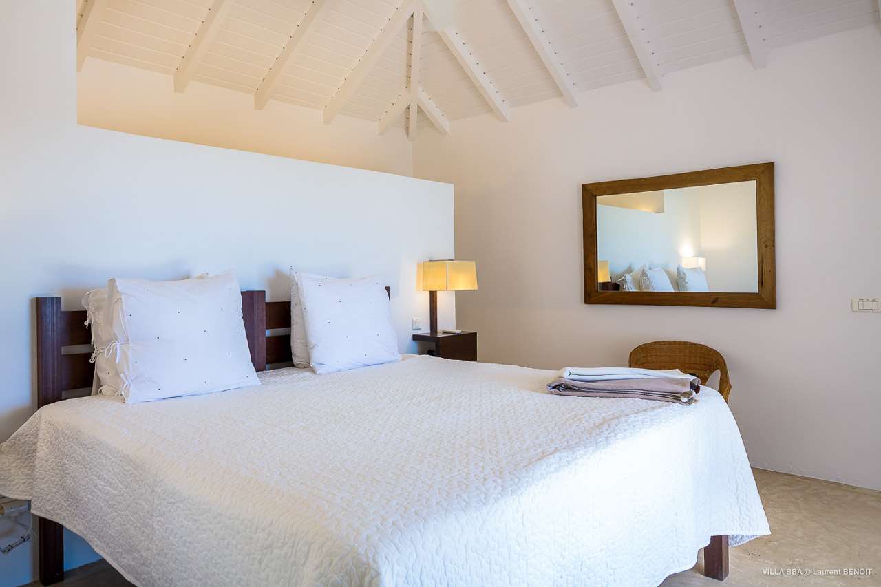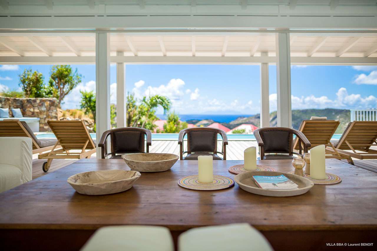Welcome to Villa Super Sky (villa code: WV BBA), a stunning 3-bedroom villa located in the hills above St. Jean Bay within minutes of beaches and shopping. The key to this villa is all in its name. Perched high in the hills of St. Barts, from this lofty vantage point you can enjoy breathtaking panoramas of the Caribbean and rugged coastline of St. Barts. The unique design of Villa Super Sky is easy to love. The home is set around a central courtyard with a pool, wall-to-wall doors opening wide to the stunning views – and even a second pool. The interiors embrace a casual, island elegance, with natural fabrics and rustic wood blending superbly with earthy stone walls. The fantastic location puts you within easy reach of three beaches: St. Jean, Lorient, and Saline. From here you are also less than 10 minutes from the elegant restaurants and boutiques of Gustavia, making this a fantastic choice for an island getaway on St. Barts. A comfortable and spacious living room overlooks the outdoor terrace. Soft sofas offer nice spots to sink in and unwind, while the doors on either side wash the space in the sea breeze. You’ll immediately want to grab a good book, settle in for a nap, or enjoy a cocktail hour at sunset in this magnificent setting. Next to the inner courtyard is another comfortable lounge area. While open to the plunge pool, it’s a great spot to unwind between swims. Otherwise, the room closes entirely off and transforms into a media room, complete with a large TV for a movie night. Connected to the living room is Villa Super Sky’s modern kitchen. Well-equipped with the latest appliances and a portable wine cellar, cooking here is a breeze. Our concierge can even organize grocery pre-stocking or delivery, catered meals, or arrange private chef service for a special occasion. Flowing on from the kitchen is the dining room, with a beautiful and rustic wooden table that seats 8 guests. Opening to a covered terrace, the views over the rolling hills from here are stunning, the ideal accompaniment to an island feast. There are 3 bedrooms at Super Sky Villa, each occupying its own corner of the house to ensure privacy between guests. Two of the bedrooms have king-sized beds, while the third bedroom has twin beds. Each bedroom comes with air-conditioning, a spacious ensuite, and screened windows so you can fall asleep to the cool island trade winds. The inner courtyard surrounds Villa Super Sky’s plunge pool, a fantastic spot to cool off during the day. To one side is a covered lounge area, a nice spot for a cool drink or bite to eat before diving back in the water. On the other side of the living room is the villa’s lap pool, overlooking the lush hills of St. Barts. Loungers lining the water let you bask in the island sun. From this vantage point high in the hills, the sunsets are stunning. A large terrace has an extended covered lounge area, which is ideal for either sunbathing or relaxing in the shade. For days on the beach, you’re spoilt for choice – 5 minutes by car are some of St. Barts’ most stunning stretches of sand. To the north is Lorient, while St. Jean lies to the west. For something quieter and more understated, Saline Beach is to the south. During the December holidays, the villa rents at the full occupancy rate regardless of how many bedrooms are used.Please fill out the form to begin your inquiry and we will connect you with a seasoned villa rental specialist.