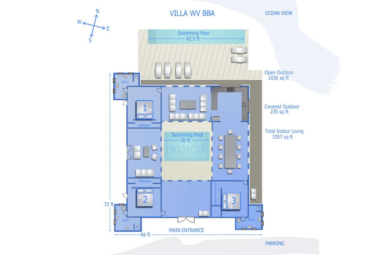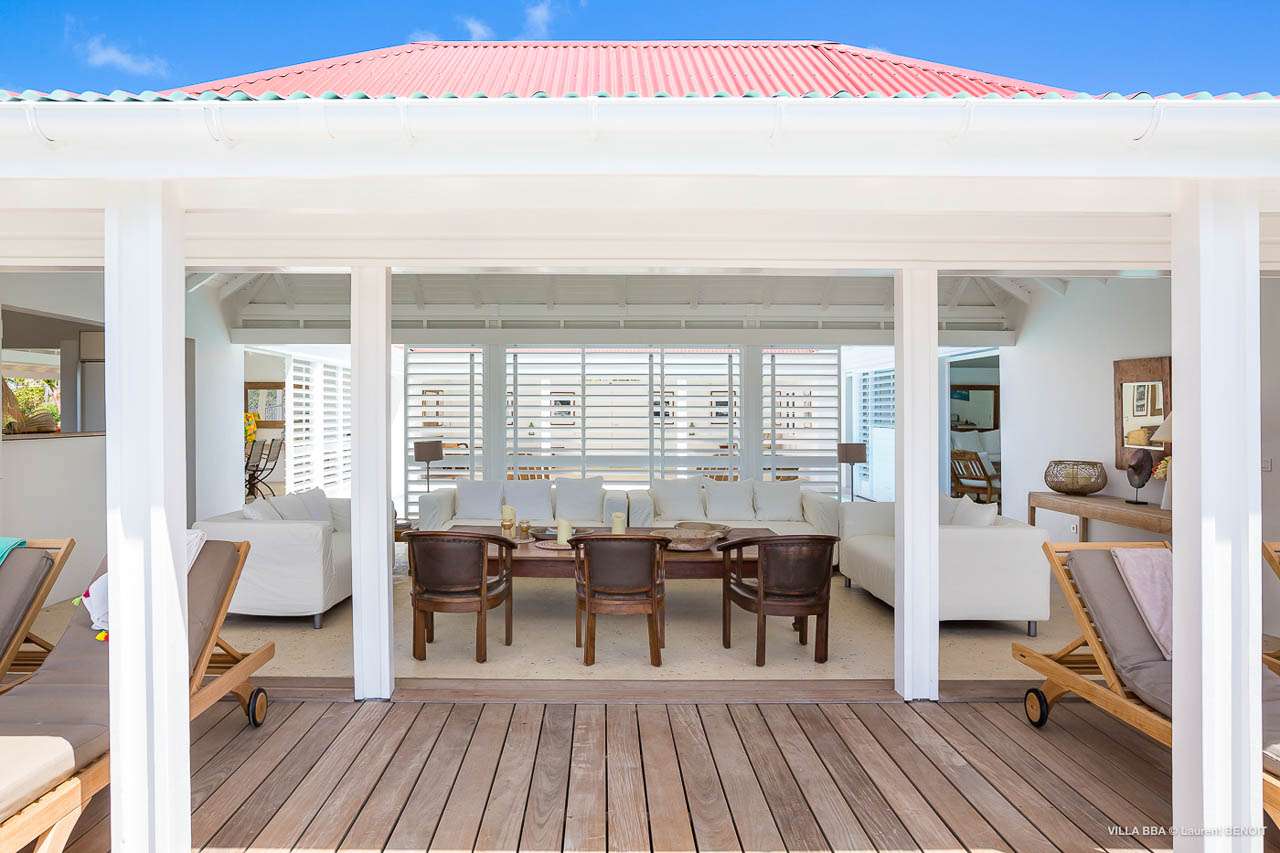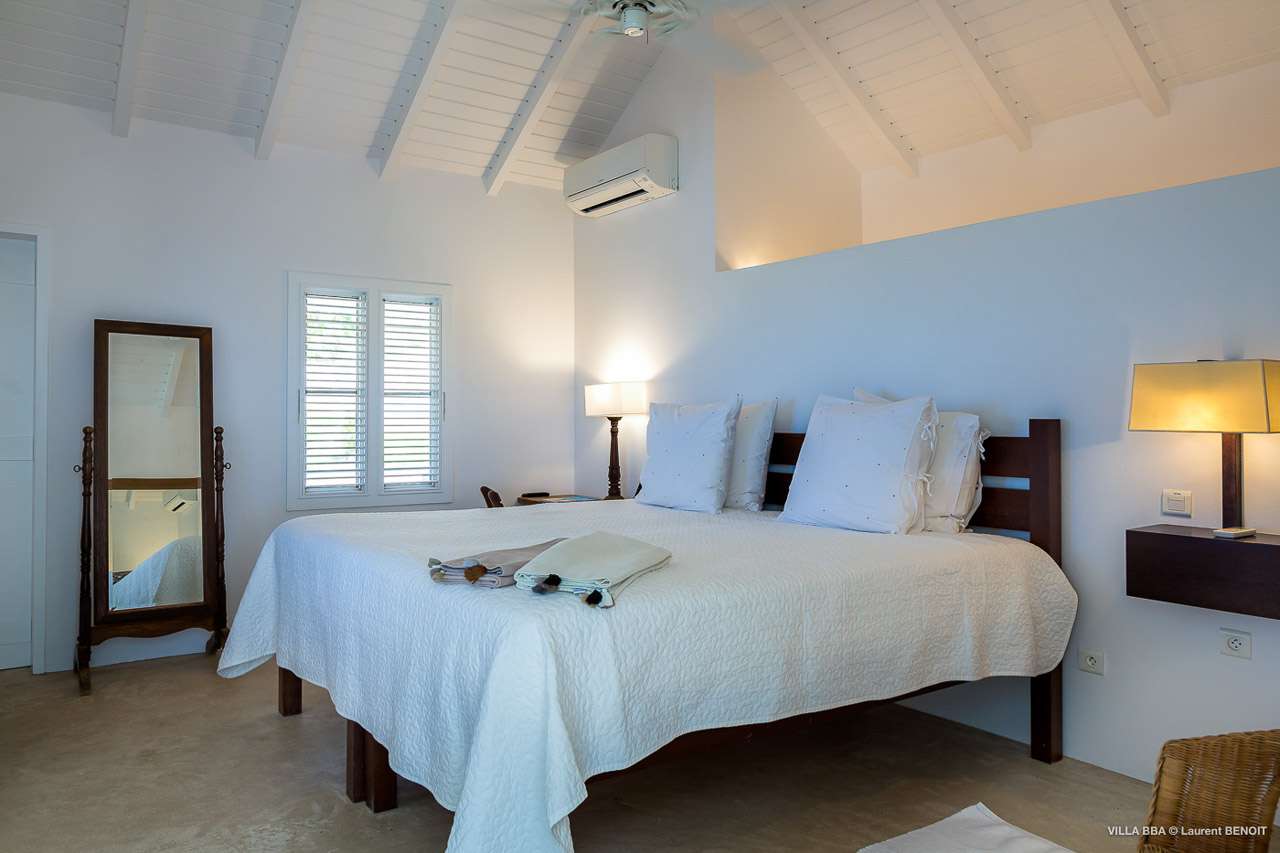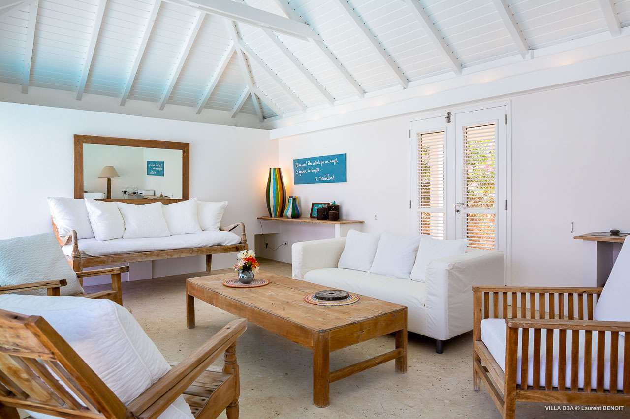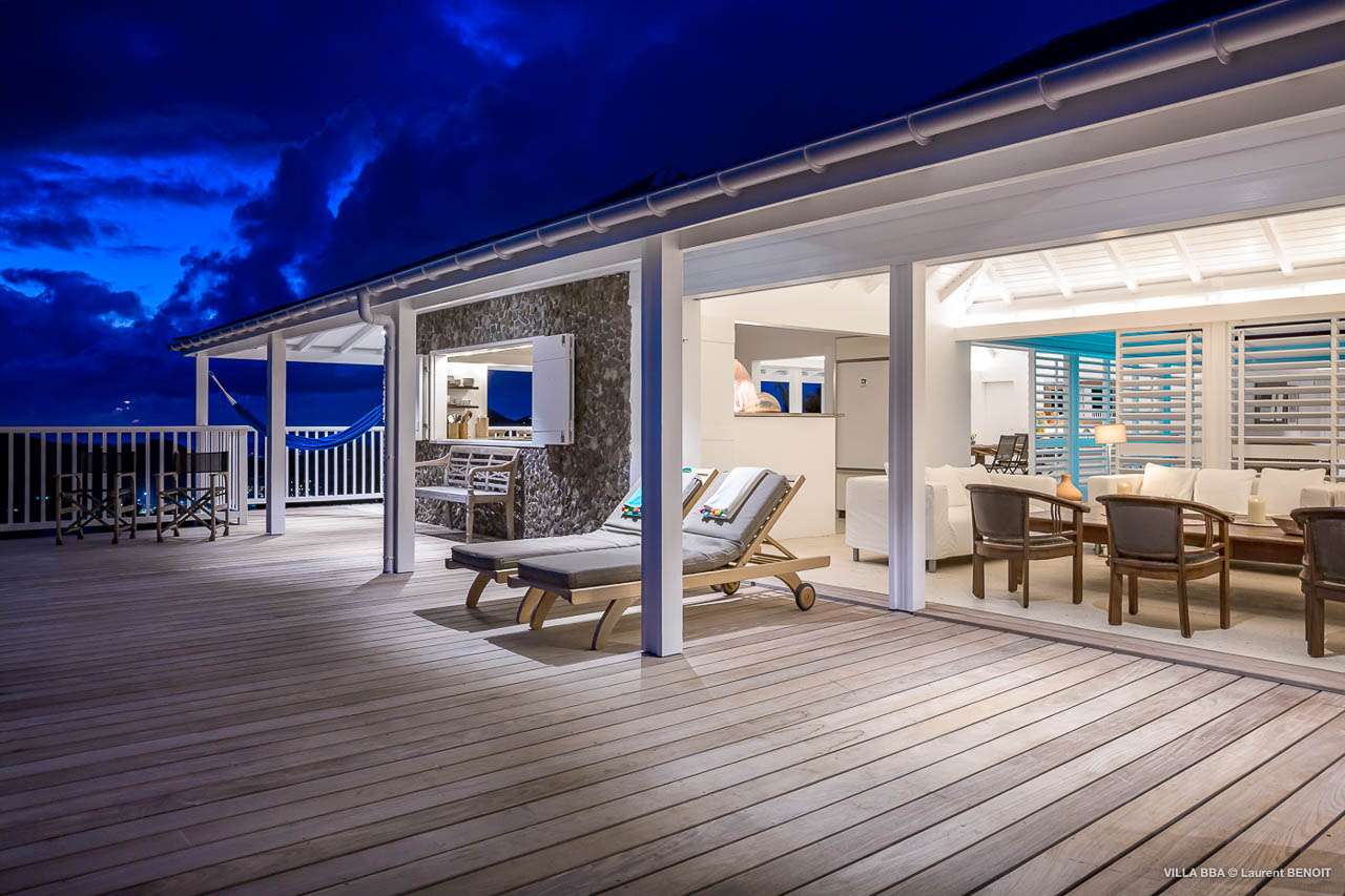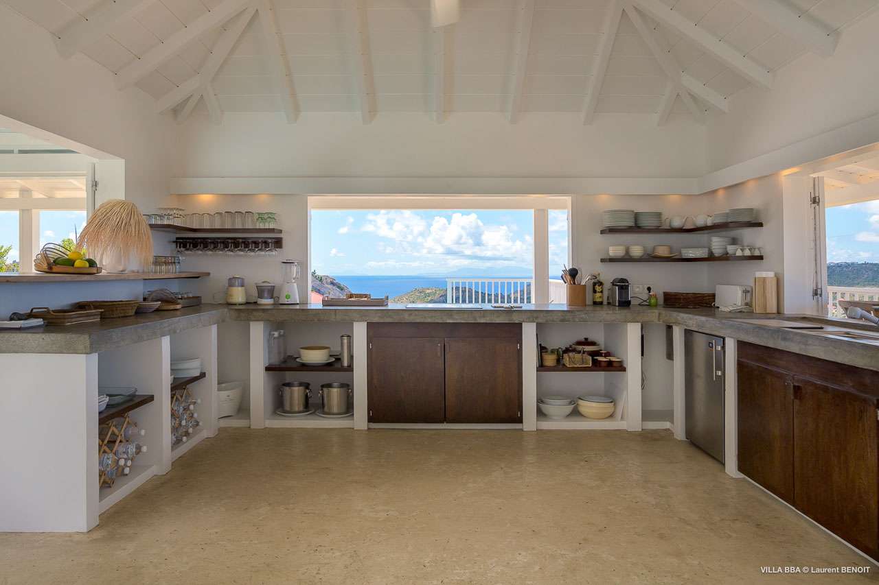 Welcome to Villa Super Sky (villa code: WV BBA), a stunning 3-bedroom villa located in the hills above St. Jean Bay within minutes of beaches and shopping. The key to this villa is all in its name. Perched high in the hills of St. Barts, from this lofty vantage point you can enjoy breathtaking panoramas of the Caribbean and rugged coastline of St. Barts. The unique design of Villa Super Sky is easy to love. The home is set around a central courtyard with a pool, wall-to-wall doors opening wide to the stunning views – and even a second pool. The interiors embrace a casual, island elegance, with natural fabrics and rustic wood blending superbly with earthy stone walls. The fantastic location puts you within easy reach of three beaches: St. Jean, Lorient, and Saline. From here you are also less than 10 minutes from the elegant restaurants and boutiques of Gustavia, making this a fantastic choice for an island getaway on St. Barts. A comfortable and spacious living room overlooks the outdoor terrace. Soft sofas offer nice spots to sink in and unwind, while the doors on either side wash the space in the sea breeze. You’ll immediately want to grab a good book, settle in for a nap, or enjoy a cocktail hour at sunset in this magnificent setting. Next to the inner courtyard is another comfortable lounge area. While open to the plunge pool, it’s a great spot to unwind between swims. Otherwise, the room closes entirely off and transforms into a media room, complete with a large TV for a movie night. Connected to the living room is Villa Super Sky’s modern kitchen. Well-equipped with the latest appliances and a portable wine cellar, cooking here is a breeze. Our concierge can even organize grocery pre-stocking or delivery, catered meals, or arrange private chef service for a special occasion. Flowing on from the kitchen is the dining room, with a beautiful and rustic wooden table that seats 8 guests. Opening to a covered terrace, the views over the rolling hills from here are stunning, the ideal accompaniment to an island feast. There are 3 bedrooms at Super Sky Villa, each occupying its own corner of the house to ensure privacy between guests. Two of the bedrooms have king-sized beds, while the third bedroom has twin beds. Each bedroom comes with air-conditioning, a spacious ensuite, and screened windows so you can fall asleep to the cool island trade winds. The inner courtyard surrounds Villa Super Sky’s plunge pool, a fantastic spot to cool off during the day. To one side is a covered lounge area, a nice spot for a cool drink or bite to eat before diving back in the water. On the other side of the living room is the villa’s lap pool, overlooking the lush hills of St. Barts. Loungers lining the water let you bask in the island sun. From this vantage point high in the hills, the sunsets are stunning. A large terrace has an extended covered lounge area, which is ideal for either sunbathing or relaxing in the shade. For days on the beach, you’re spoilt for choice – 5 minutes by car are some of St. Barts’ most stunning stretches of sand. To the north is Lorient, while St. Jean lies to the west. For something quieter and more understated, Saline Beach is to the south. During the December holidays, the villa rents at the full occupancy rate regardless of how many bedrooms are used.Please fill out the form to begin your inquiry and we will connect you with a seasoned villa rental specialist.