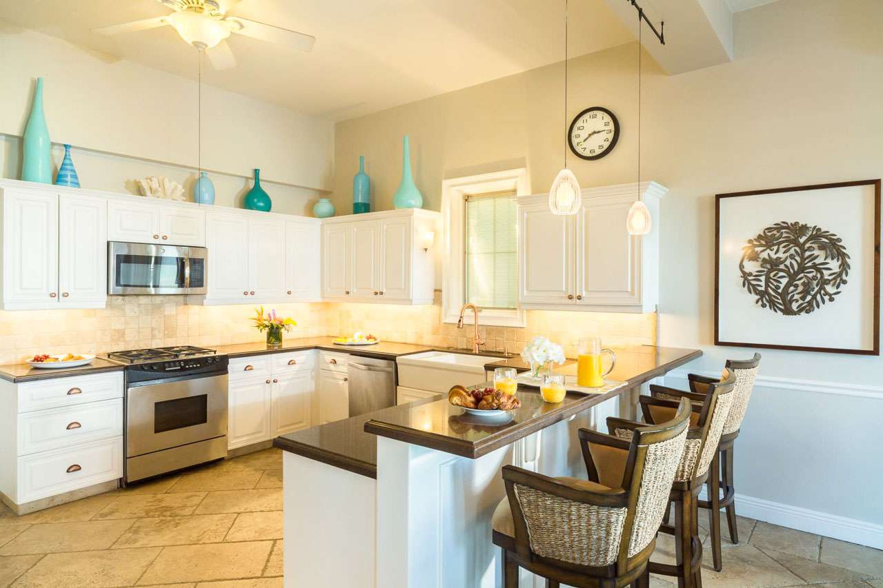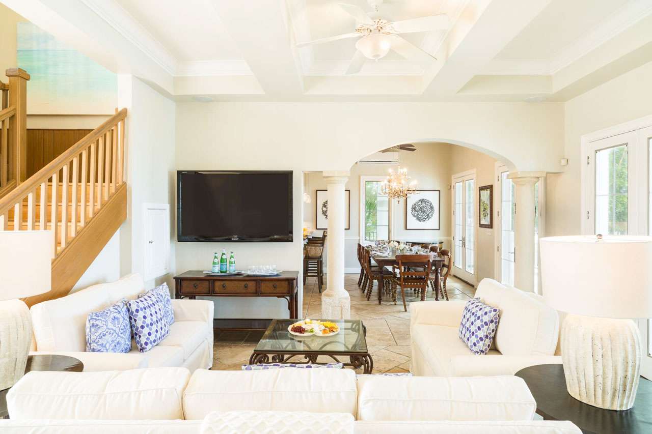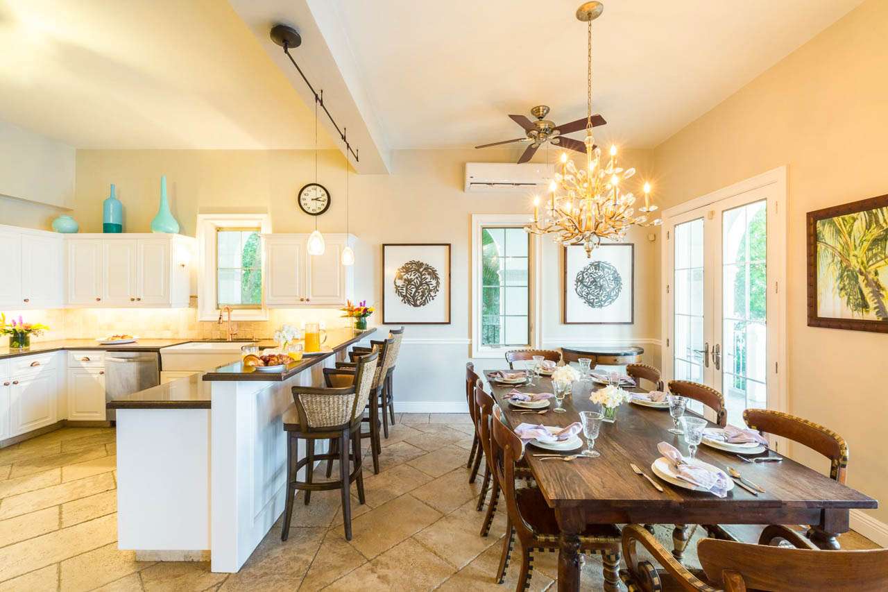 Welcome to Villa Tamarind (booking code: IE TAM), a colorful and contemporary 6-bedroom villa located on Grace Bay Beach, Providenciales. Just steps from the sand, and a short walk to restaurants and shops at Turtle Cove Marina, this is a refined and luxurious beachfront home. With a grand and elegant design, this is a Caribbean palace fit for royalty. Inside is bright and beautiful, featuring a flowing open-plan and gorgeous high ceilings. Spread over 3 levels, there’s a lot of amazing ocean views to enjoy from every room, while just a short walk in the other direction is Turtle Cove Marina, offering restaurants, shops, and cafes. Located on a prime stretch of Grace Bay Beach, this envious location is hard to beat. But the best part? Under the calm and clear surface is Smith’s Reef, directly opposite the villa. Offering the finest snorkeling in Providenciales, diving in reveals colorful corals, tropical fish, and vibrant marine life. It doesn’t get much better than that. Living Room: The living room has comfortable sofas facing towards a large flat-screen TV. You’ll love sinking in here to unwind, feeling the gentle island breeze drift through the French doors and admiring the view. This is the ideal space to gather after dinner and settle in for a drink and some conversation. Dining Room and Kitchen: Adjacent to the living room is the dining table, which comfortably seats 10 guests. It’s a lovely place for a dinner party during your stay, enjoying the company of friends and family. Foodies will immediately feel at home in the villa’s comfortable kitchen, with everything you need for your stay. With lovely views over the pool towards the ocean, inspiration for gourmet Caribbean dishes comes easy. Bedrooms: With 6 bedrooms spread across the three levels, there’s plenty of room to spread out in Villa Tamarind. Each room comes with a deluxe king-sized bed, air-conditioning, ensuite bathroom, and a large flat-screen TV. Two bedrooms on the top floor and three on the second floor each have a private balcony overlooking the pool and ocean beyond. The suite on the ground floor opens to the pool terrace. Every space is quiet and relaxing, with airy canopy beds and island furnishings exuding an island charm. You’ll wake up every morning feeling refreshed and recharged, ready for another day of languishing by the ocean or exploring the beautiful island of Provo. Outdoor Features: Warm island days are best spent outside, where a grand shaded terrace gives way to the villa’s luxurious swimming pool. Cooling dips are the order of the day here, while loungers let you bask in the island sun. Following the wooden boardwalk towards the beach leads you to a set of elevated beach decks. On one are a set of tables, perfect for an evening aperitif hour with some punchy island rum cocktails. On the others, sunbeds encourage you to collapse and recharge after dips in the turquoise water. Back at the main terrace, a gazebo with a gas grill lets you host your own island-style fish fry. Grilling while the setting sun sends tinges of golden light across the villa is exactly what Caribbean vacations are all about. Amenities: Thoughtful design at Villa Tamarind helps elevate your stay. The fully air-conditioned house also has high-speed Wi-Fi, an outdoor shower, gated entry, and 2 washers and dryers. Please note that the air-conditioning in Villa Tamarind is metered; guests are allotted the first $200, after which it will be charged at the market rate + 12% tax. There are 9 separate air-conditioning systems throughout the property, letting you cool certain parts as needed. Although with a near-constant trade wind, it’s rare that you’ll exceed the AC allotment during your stay. Villa Tamarind rents at full occupancy rates during the Thanksgiving and December holidays, regardless of how many bedrooms are used.
