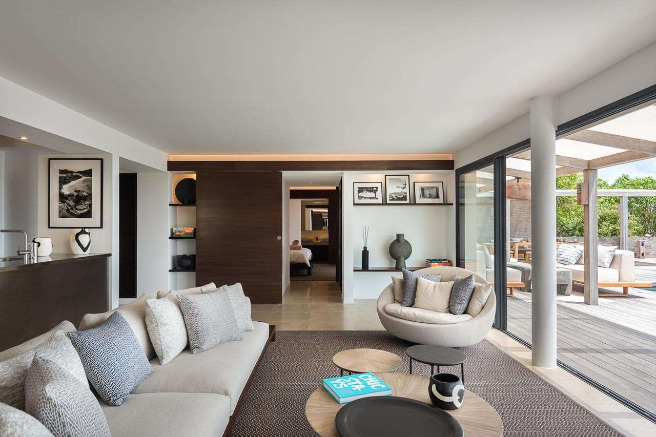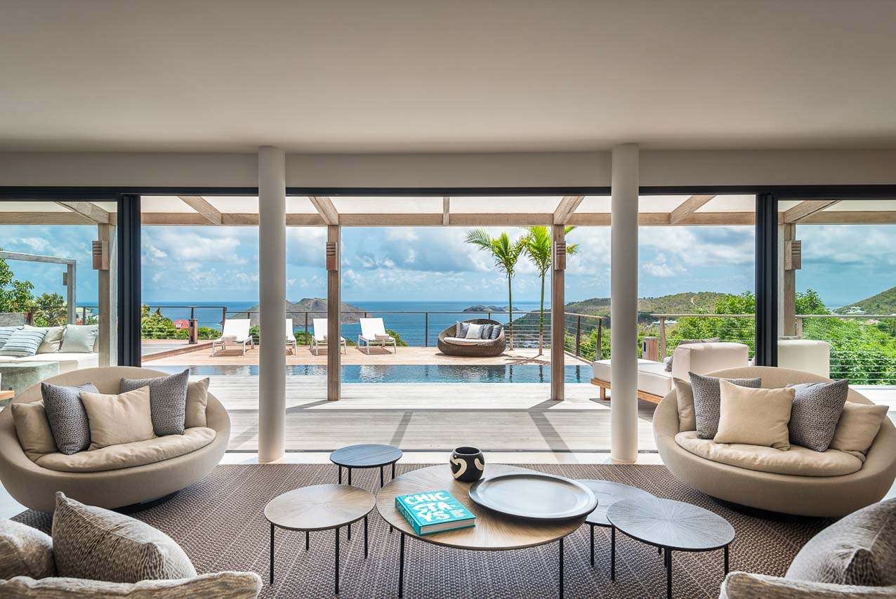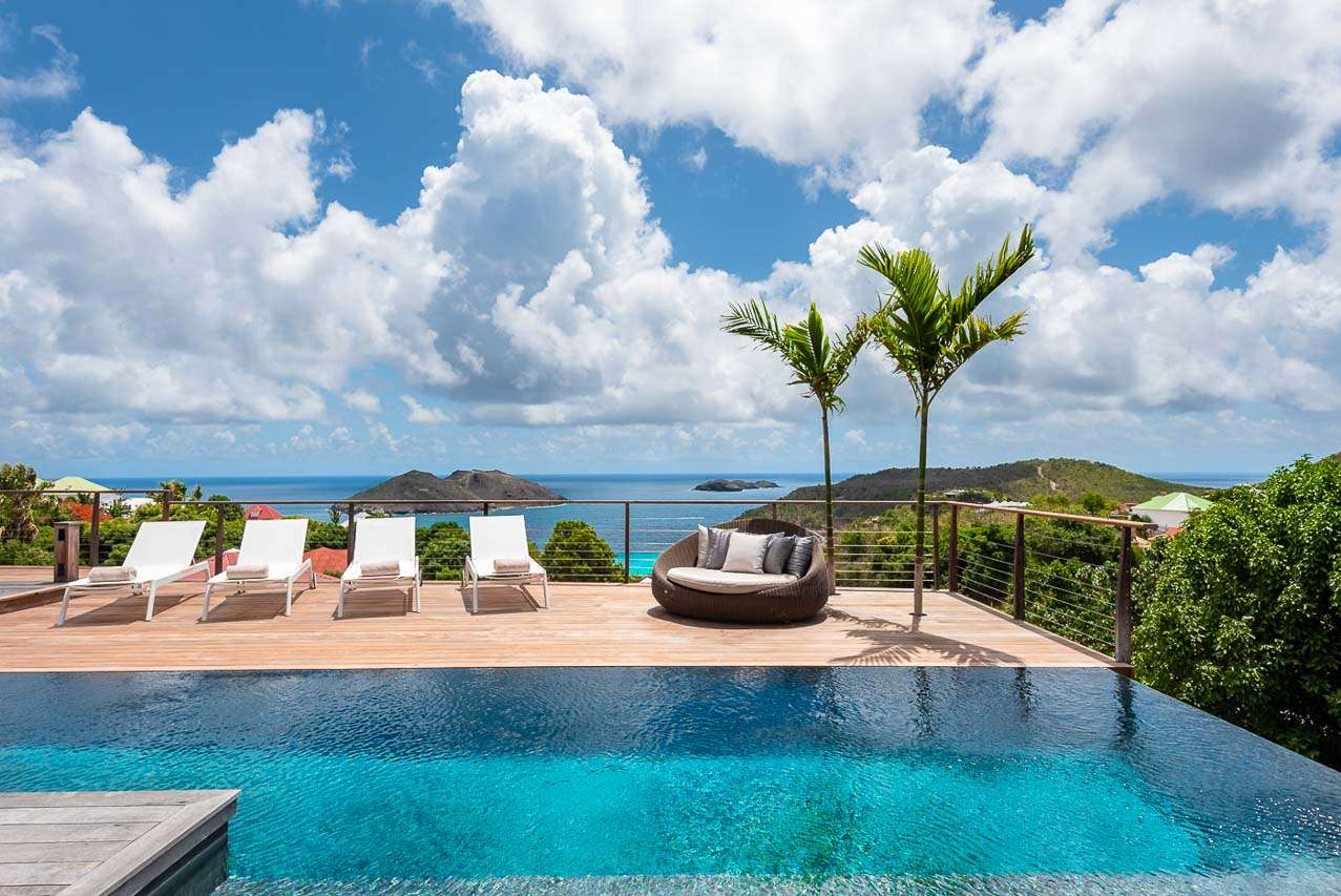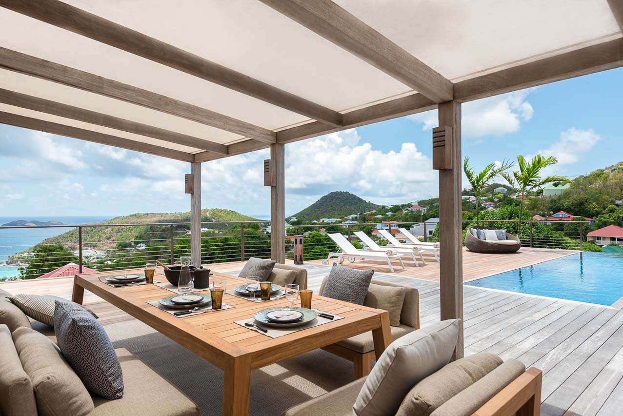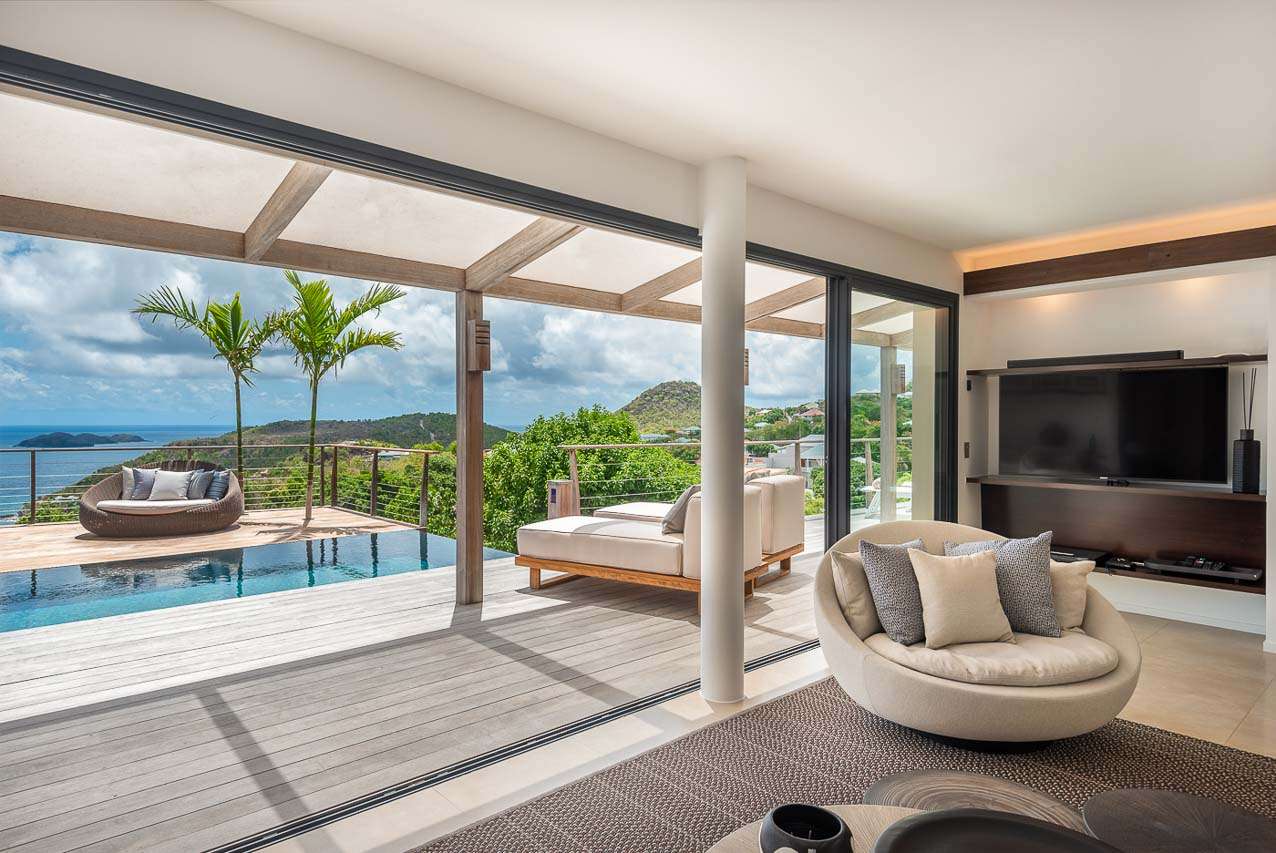 Villa The One, (villa code: WV ONE), is a 3-bedroom villa located in Colombier within a short drive to several beaches and shopping. This hillside villa offers views of the ocean and Bonhomme Island. This villa has a spacious, modern living area that opens onto the terrace and faces the splendid ocean view. A large bar separates the well-equipped kitchen with stainless appliances from the living area. Two of the villa's three bedrooms are located on each side of the living area and have ensuite bathrooms and private terraces. A magnificent outdoor kitchen with TV has recently been installed on the sea-view terrace where the outdoor dining area is ideal for lunch or dinner. The outdoor dining area is ideal for lunch or dinner. During the Thanksgiving and December holidays, the villa rents at full occupancy rates regardless of how many bedrooms are used. *Note - The master bedroom is only available when all bedrooms are rented.Please fill out the form to begin your inquiry and we will connect you with a seasoned villa rental specialist.