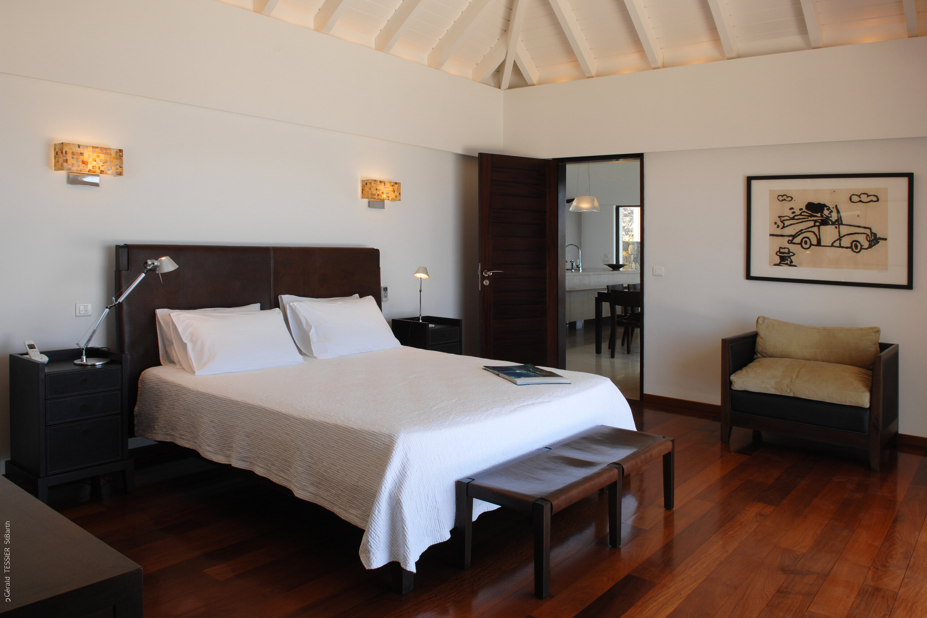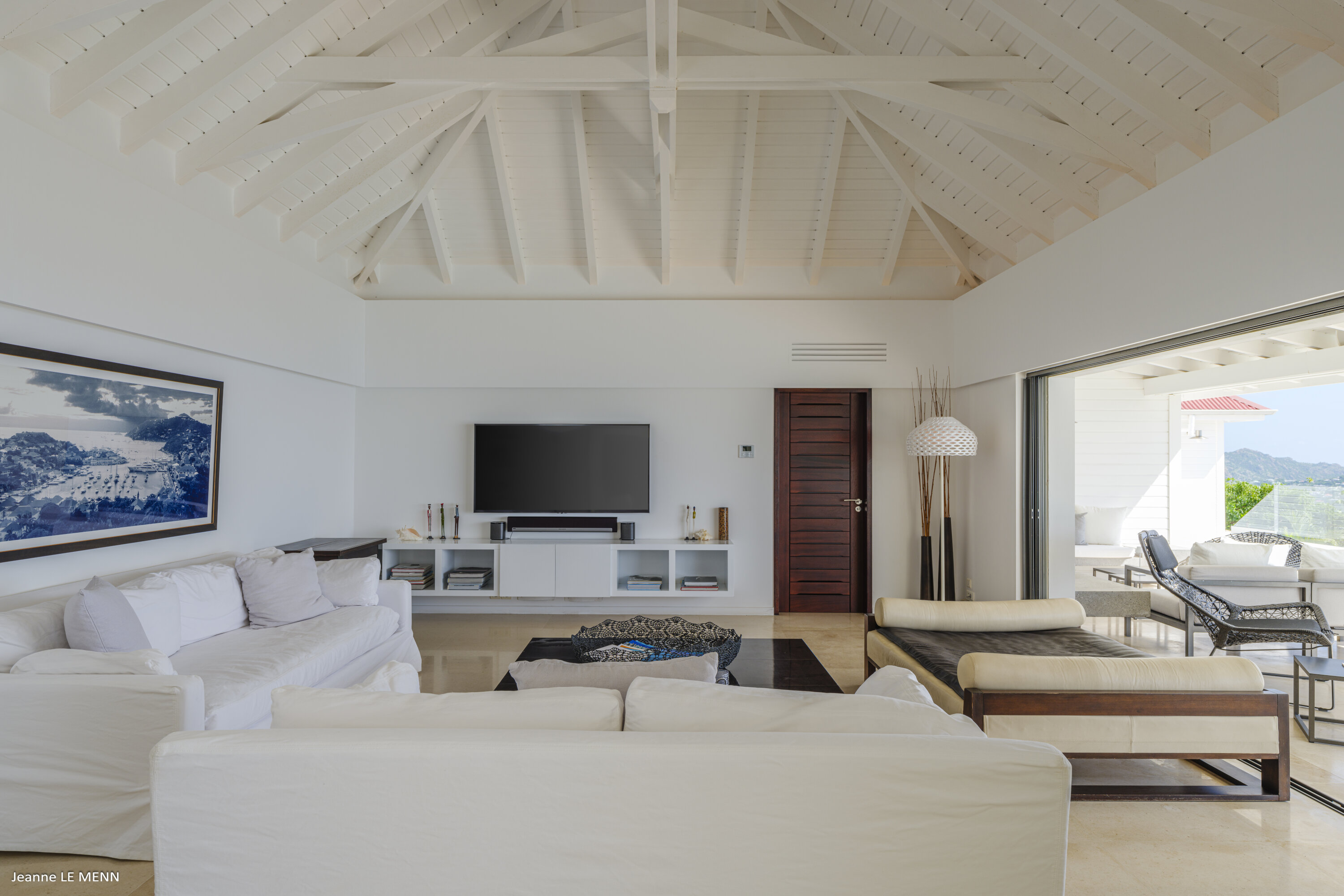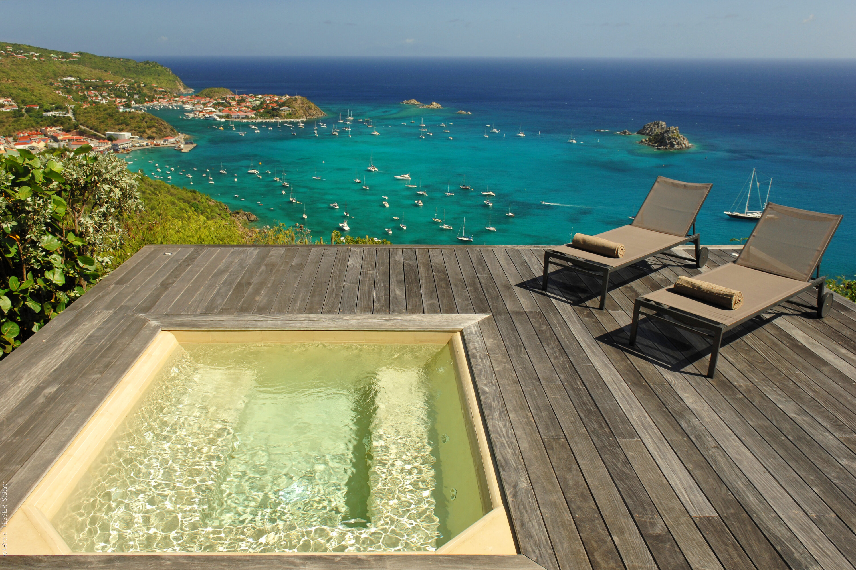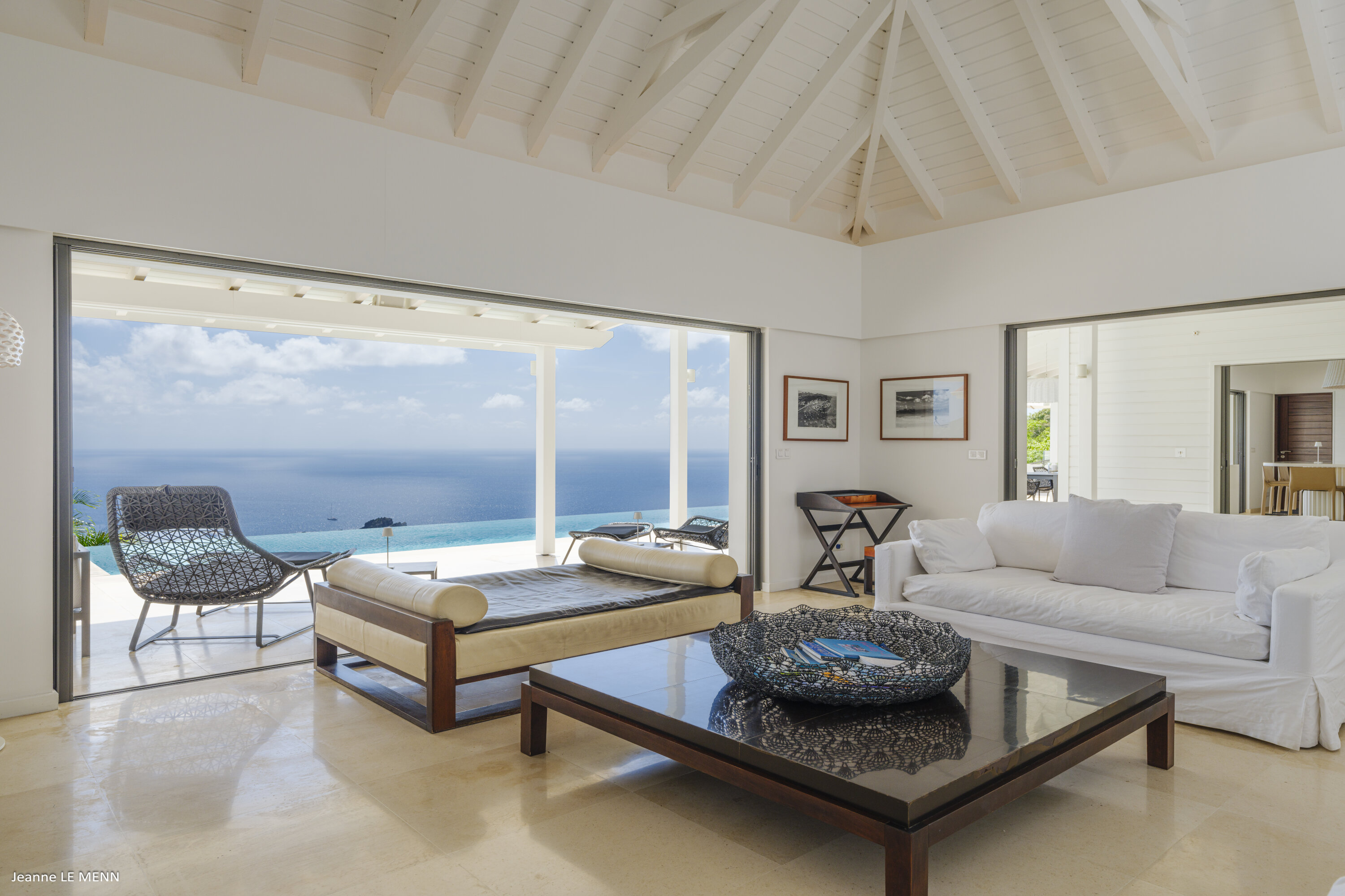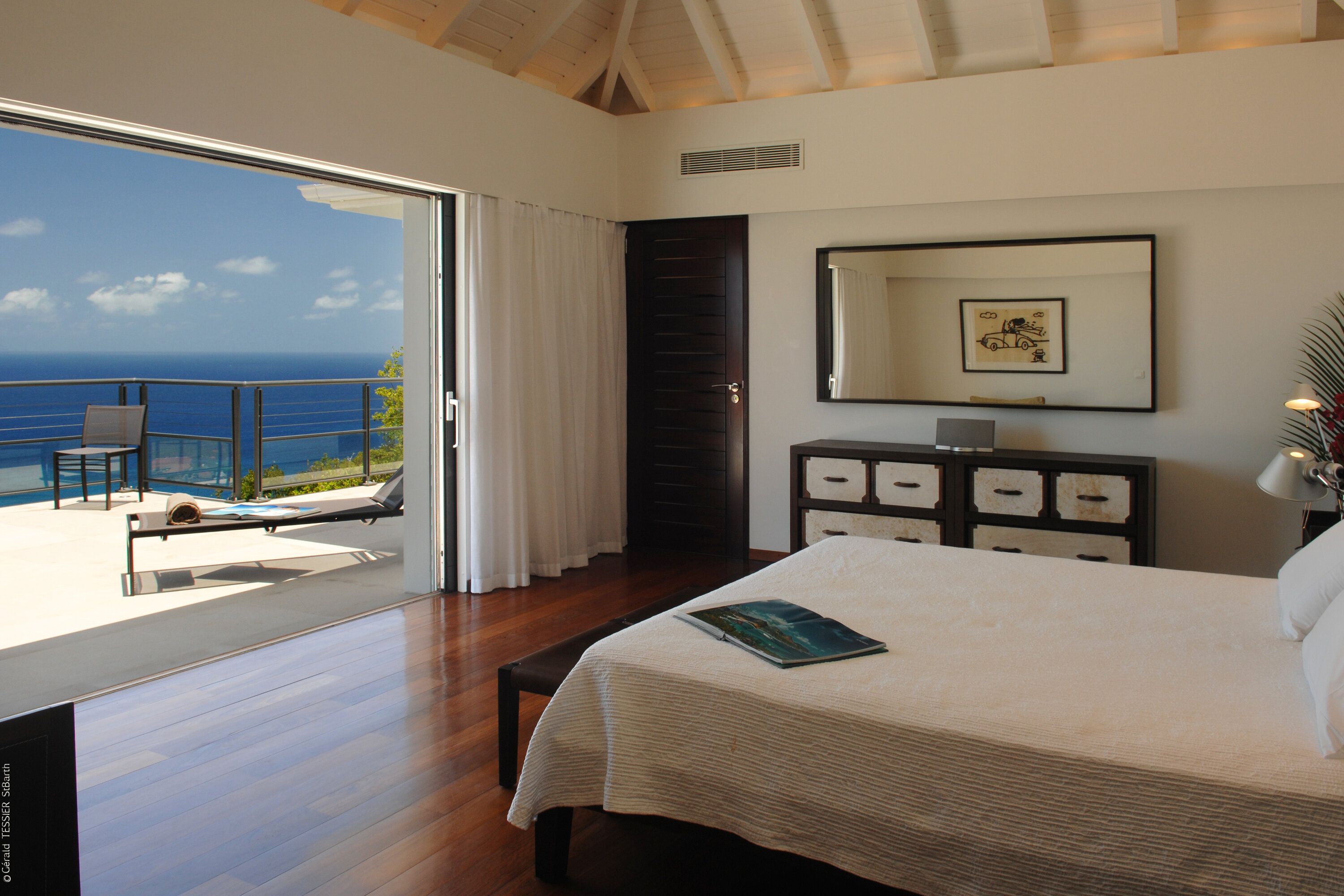 Welcome to Villa "The View” (villa code: WV VUE), a contemporary 4-bedroom villa in Colombier, St. Barts. Located high on the hillside, this villa offers spectacular panoramic views of nearby islands and Gustavia harbor, as well as beautiful sunsets. Elegant and refined, the interiors of The View Villa exude an effortless grace. Chic décor is complemented by a unique collection of leather and parchment designer furniture, in earthy, natural hues. The seamless and beautiful blend of indoor and outdoor spaces makes for a glamorous stay in the Caribbean. From the high vantage point, guests can enjoy stunning views over the Caribbean and the islands of Saba, Saint Eustatius, and Saint Kitts & Nevis. Both Flamands Beach and St Jean Beach are just a short drive away. Stone steps lead down to Villa The View’s entrance, where trickling sounds from a stone waterfall set a soothing tone for your stay. The door leads you into a covered outdoor hallway, with the living room to your left and kitchen and dining to your right. The spacious living room opens wide to the outdoor terrace, with soft sofas inviting you to sink in and unwind. Dark hardwood furnishings add a touch of class, while the views over the infinity pool make it look as if it overflows into the ocean beyond. The modern kitchen at Villa The View is a gourmet foodie’s delight. Featuring high-end appliances and even a wine cave, cooking here is a breeze. Our concierge can organize grocery pre-stocking or delivery, catered meals, or arrange private chef service for a special occasion. Next to the kitchen is the indoor dining area, which opens to the covered terrace with an outside table. Both areas have exquisite views over Gustavia and the Caribbean sea; a wonderful accompaniment to a gourmet feast. There are 4 spacious and comfortable bedrooms at Villa The View. Spread across multiple levels of the property, each offers the utmost privacy for your stay. There are two bedrooms on the main level, featuring incredible views and large ensuite bathrooms with double vanities and spacious showers. The third master suite is on the level below the main house, with its own private stairway and furnished deck area. The fourth suite is down one level more, in its own separate cottage. Completely private from the main villa, this suite enjoys a lounge area, office space, and a huge ensuite bathroom. On the private terrace, there’s even a Jacuzzi, an ideal spot for a night of stargazing with a bottle of champagne. On the main level, the outdoor terrace makes the most of the island weather. There’s a plush outdoor sofa for relaxing, loungers for sunbathing, and daybeds for curling up with a good book. The stunning infinity pool is in the center of it all, offering uninterrupted views over the hills below and Gustavia Harbor. You could relax in the water all day, watching yachts sailing back and forth across the glittering sea. For days at the beach, the lovely Flamands Beach is a 5-minute drive. With soft white sand and inviting turquoise water, it’s one of the dreamiest beaches on St. Barts. The restaurants and shops at St Jean beach are less than 10 minutes away. During the Thanksgiving and December holidays, the villa rents at full occupancy rates regardless of how many bedrooms are used. This villa is suitable for children, ages 12 and older.Please fill out the form to begin your inquiry and we will connect you with a seasoned villa rental specialist.
