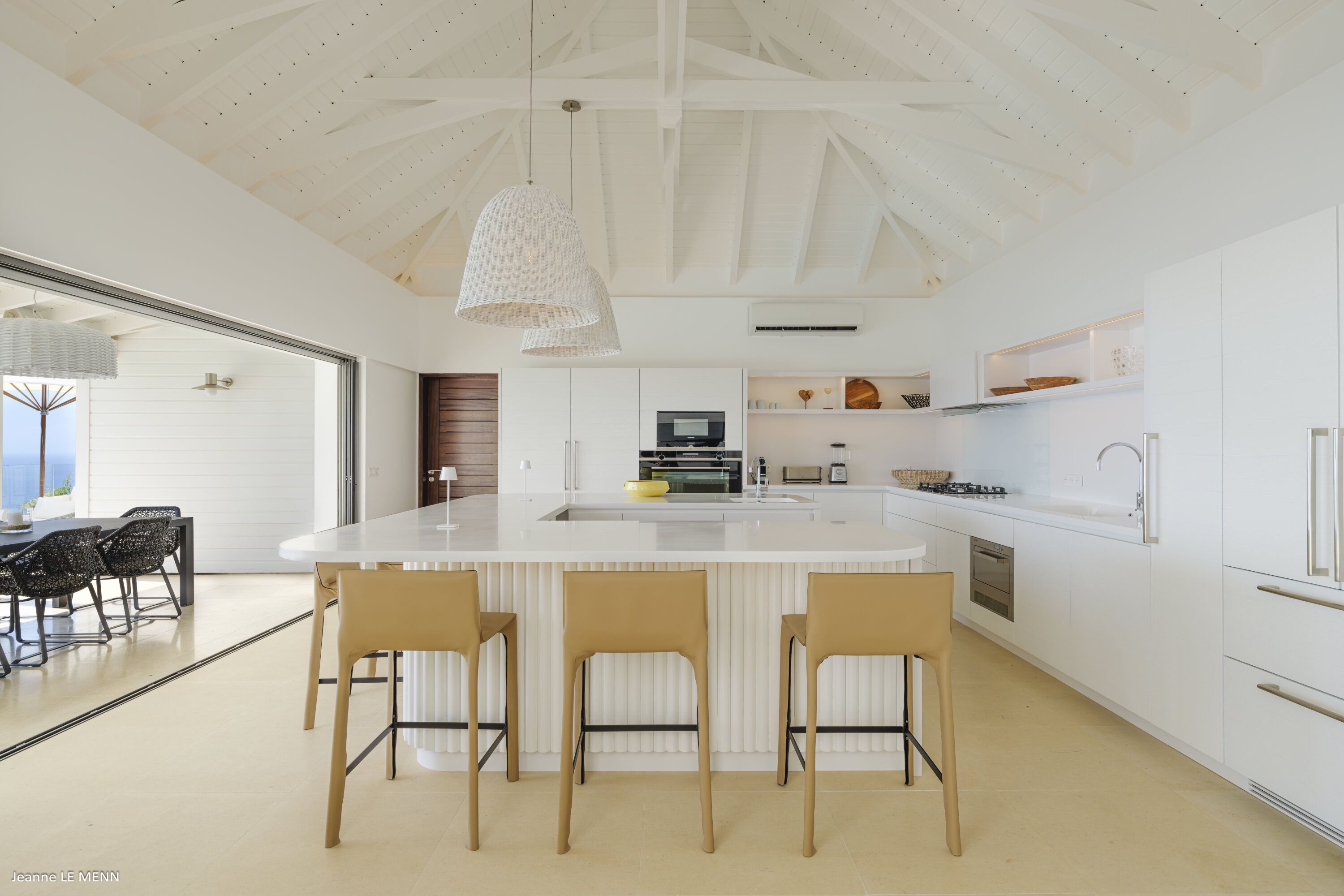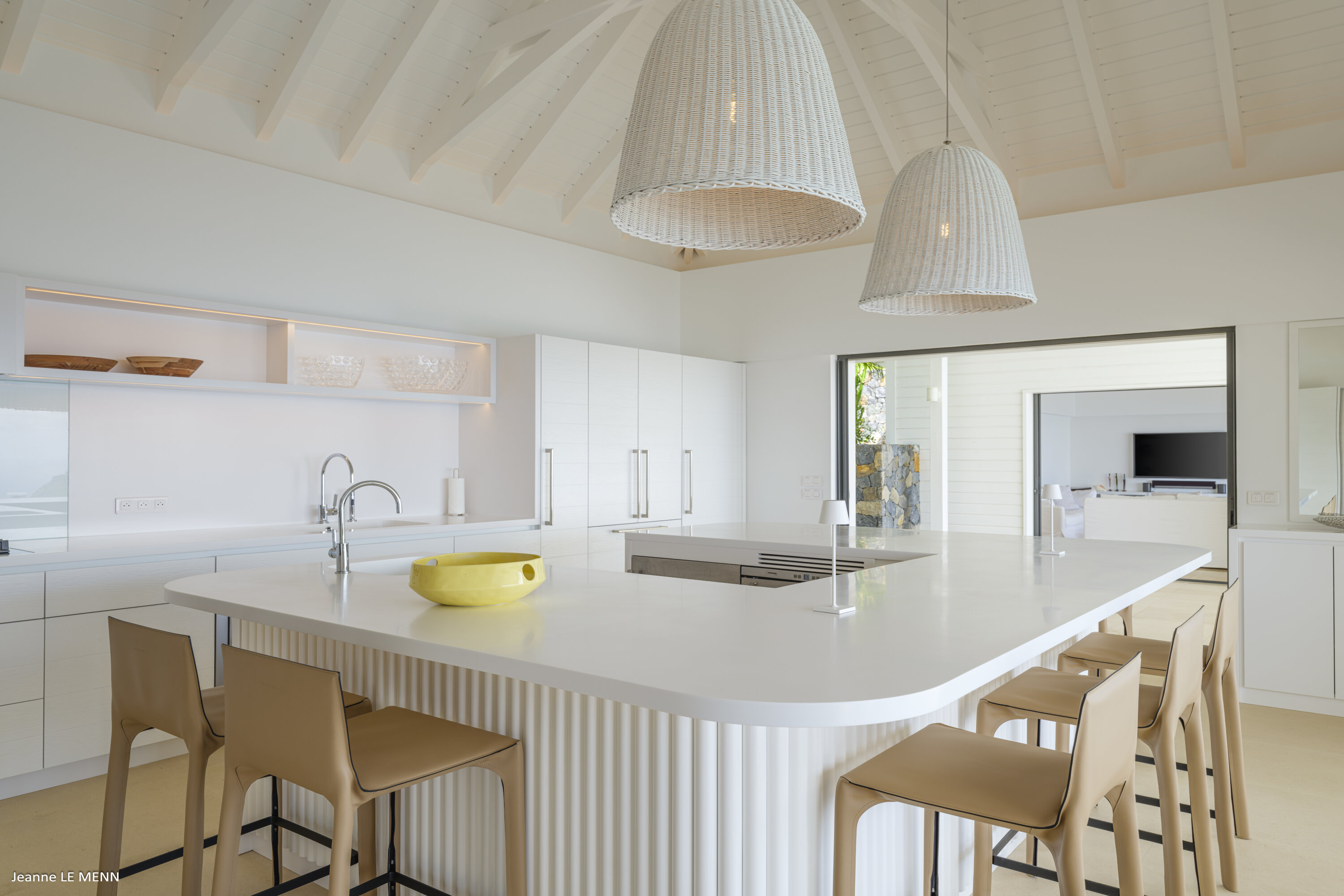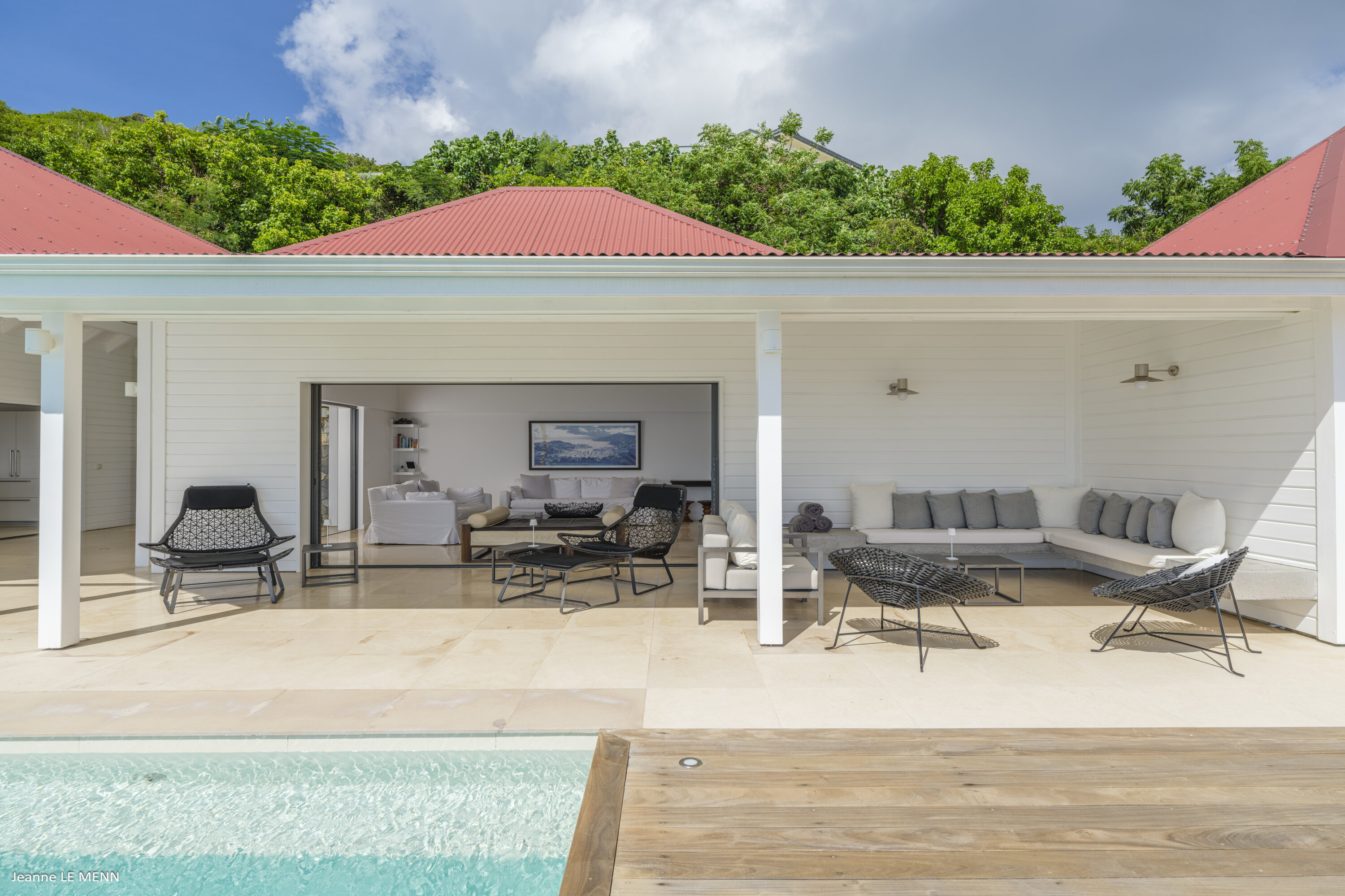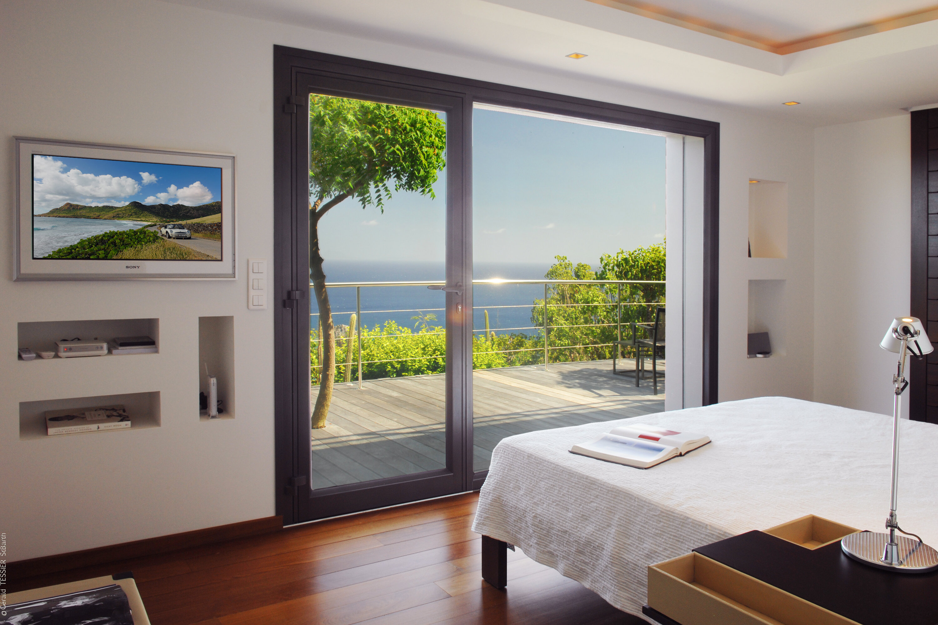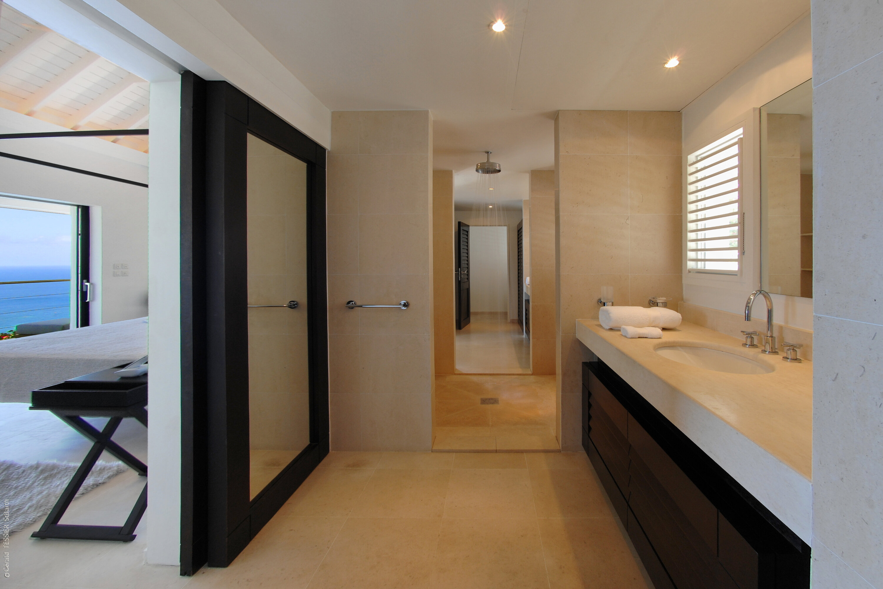 Welcome to Villa "The View” (villa code: WV VUE), a contemporary 4-bedroom villa in Colombier, St. Barts. Located high on the hillside, this villa offers spectacular panoramic views of nearby islands and Gustavia harbor, as well as beautiful sunsets. Elegant and refined, the interiors of The View Villa exude an effortless grace. Chic décor is complemented by a unique collection of leather and parchment designer furniture, in earthy, natural hues. The seamless and beautiful blend of indoor and outdoor spaces makes for a glamorous stay in the Caribbean. From the high vantage point, guests can enjoy stunning views over the Caribbean and the islands of Saba, Saint Eustatius, and Saint Kitts & Nevis. Both Flamands Beach and St Jean Beach are just a short drive away. Stone steps lead down to Villa The View’s entrance, where trickling sounds from a stone waterfall set a soothing tone for your stay. The door leads you into a covered outdoor hallway, with the living room to your left and kitchen and dining to your right. The spacious living room opens wide to the outdoor terrace, with soft sofas inviting you to sink in and unwind. Dark hardwood furnishings add a touch of class, while the views over the infinity pool make it look as if it overflows into the ocean beyond. The modern kitchen at Villa The View is a gourmet foodie’s delight. Featuring high-end appliances and even a wine cave, cooking here is a breeze. Our concierge can organize grocery pre-stocking or delivery, catered meals, or arrange private chef service for a special occasion. Next to the kitchen is the indoor dining area, which opens to the covered terrace with an outside table. Both areas have exquisite views over Gustavia and the Caribbean sea; a wonderful accompaniment to a gourmet feast. There are 4 spacious and comfortable bedrooms at Villa The View. Spread across multiple levels of the property, each offers the utmost privacy for your stay. There are two bedrooms on the main level, featuring incredible views and large ensuite bathrooms with double vanities and spacious showers. The third master suite is on the level below the main house, with its own private stairway and furnished deck area. The fourth suite is down one level more, in its own separate cottage. Completely private from the main villa, this suite enjoys a lounge area, office space, and a huge ensuite bathroom. On the private terrace, there’s even a Jacuzzi, an ideal spot for a night of stargazing with a bottle of champagne. On the main level, the outdoor terrace makes the most of the island weather. There’s a plush outdoor sofa for relaxing, loungers for sunbathing, and daybeds for curling up with a good book. The stunning infinity pool is in the center of it all, offering uninterrupted views over the hills below and Gustavia Harbor. You could relax in the water all day, watching yachts sailing back and forth across the glittering sea. For days at the beach, the lovely Flamands Beach is a 5-minute drive. With soft white sand and inviting turquoise water, it’s one of the dreamiest beaches on St. Barts. The restaurants and shops at St Jean beach are less than 10 minutes away. During the Thanksgiving and December holidays, the villa rents at full occupancy rates regardless of how many bedrooms are used. This villa is suitable for children, ages 12 and older.Please fill out the form to begin your inquiry and we will connect you with a seasoned villa rental specialist.