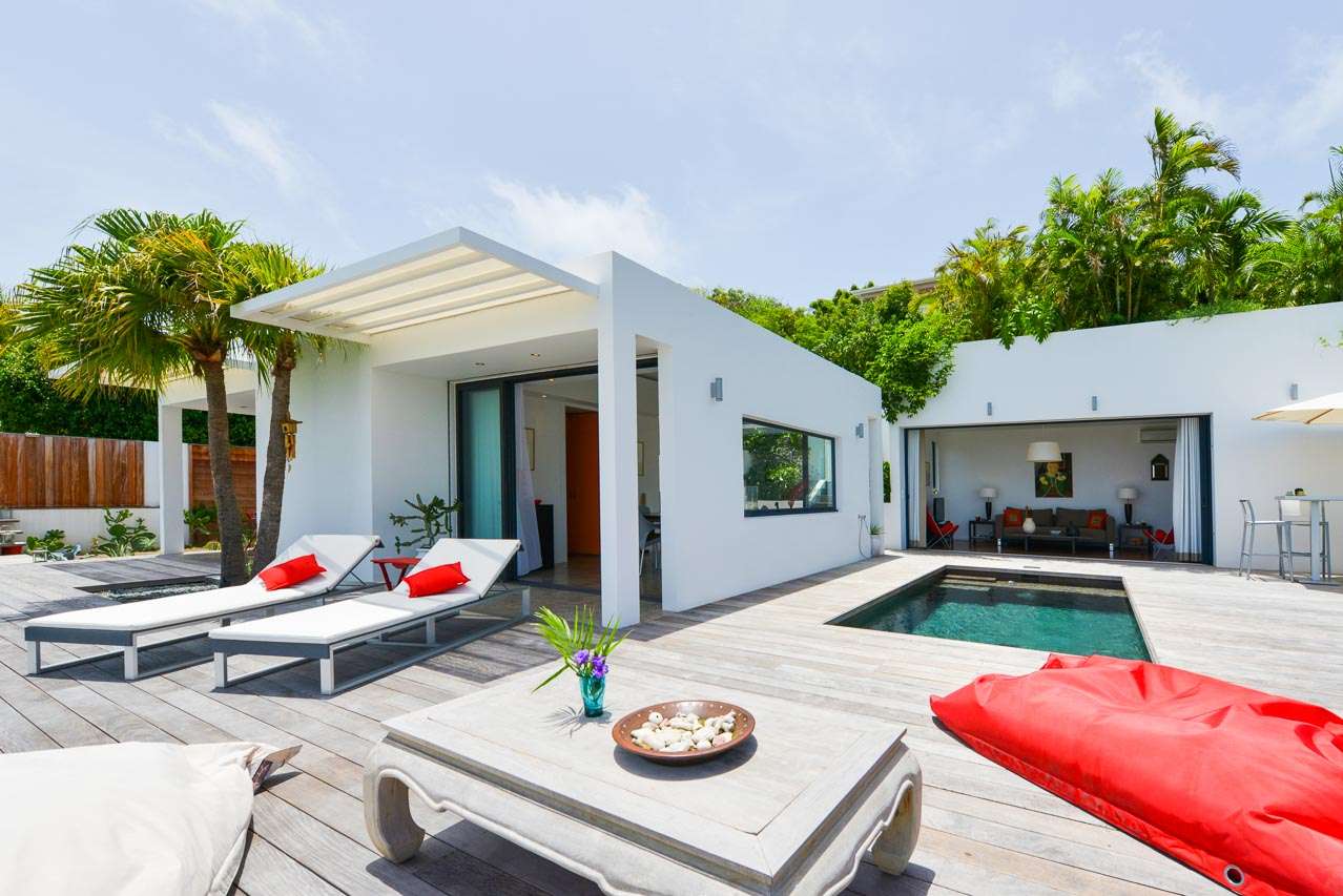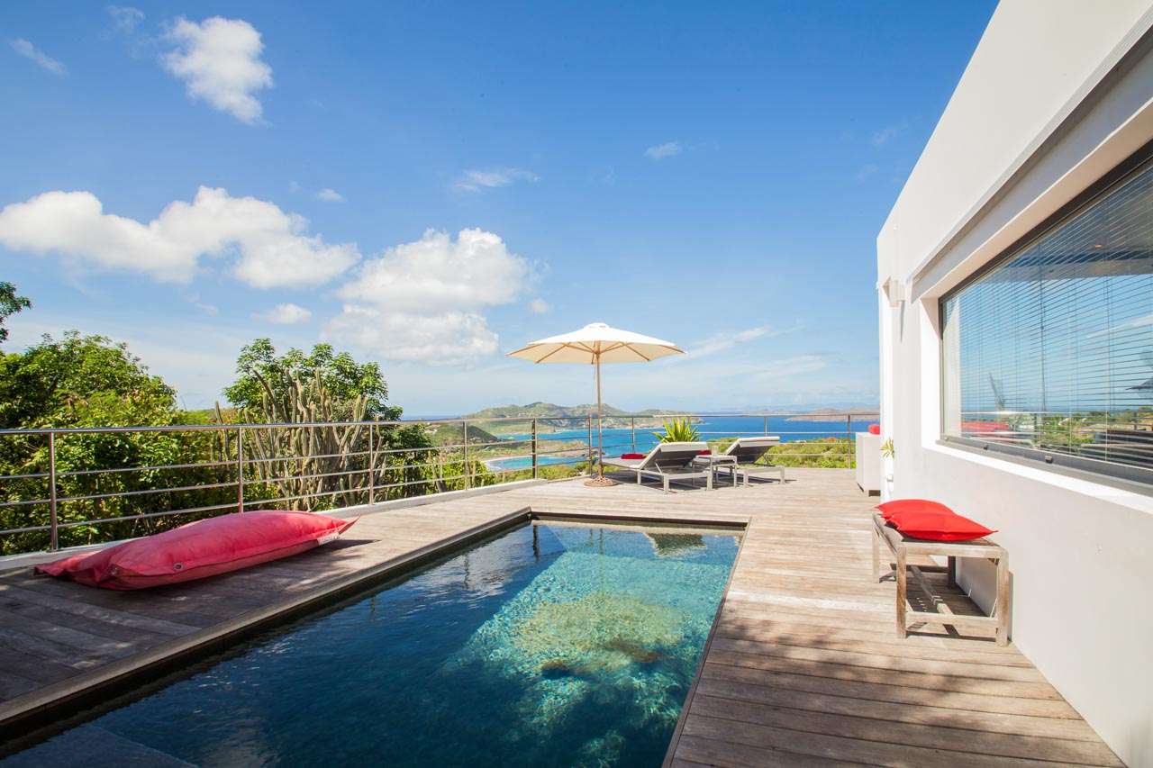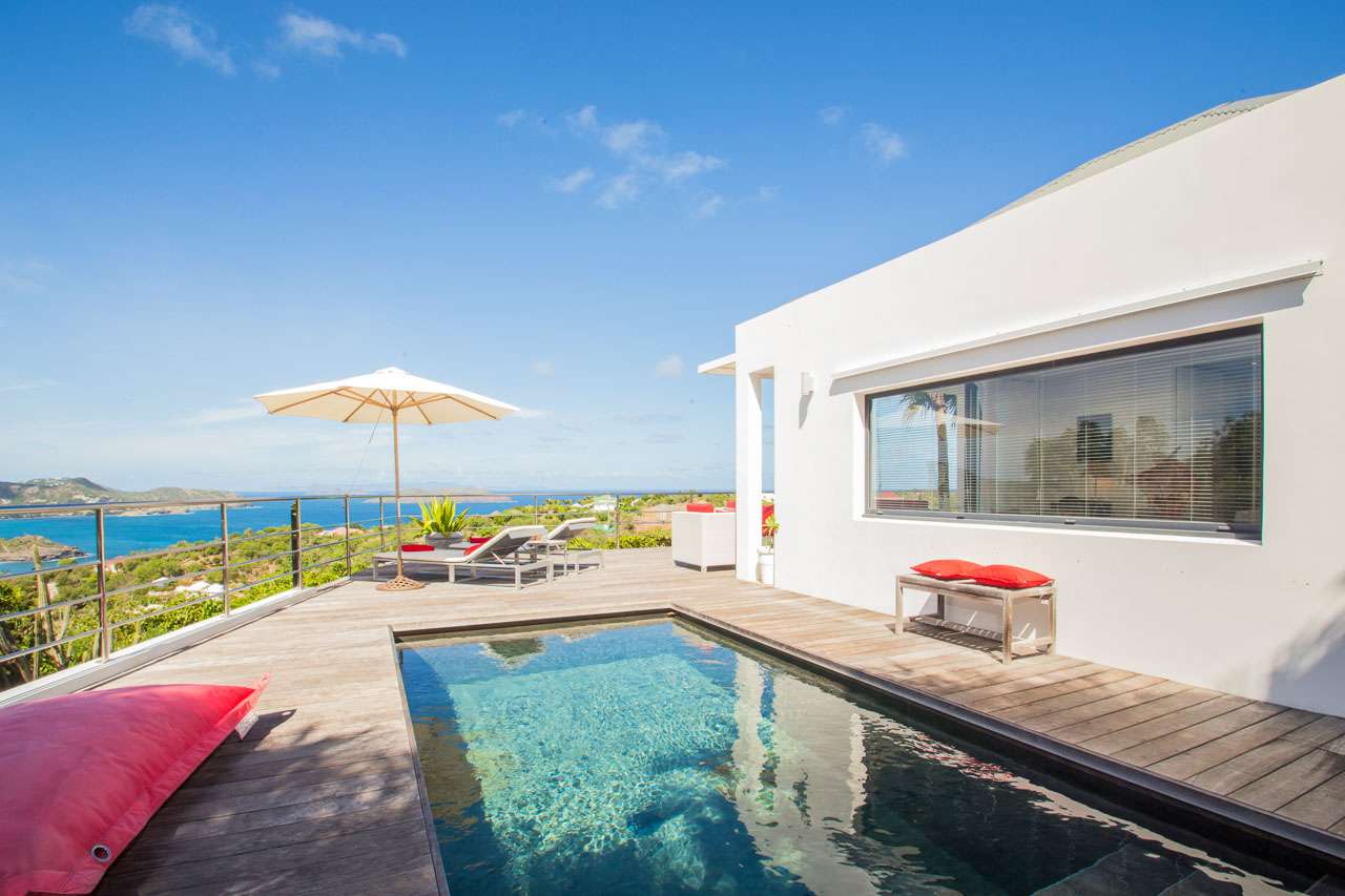 Welcome to Villa Ti Agave (villa code: WV AGV), a contemporary 1-bedroom villa located in Vitet, St. Barts. Embracing the St. Barts lifestyle is easy at this bright and beautiful island home, featuring an effortless style and outstanding views of the ocean and nearby islands. The clean design of Villa Ti Agave allows for plenty of relaxed days spent either inside or out. Bold streaks of red in the furnishings add a lively splash to the décor, which is otherwise elegant and pared-back - the classic St. Barts style. The home is completed by gorgeous wooden floors underfoot and unique décor. Nestled high up in the hills of Camaruche at the entrance of Vitet, Villa Ti Agave enjoys a prime position for a secluded vacation. Facing west, the sunset views are gorgeous, while shops and beaches are only a short drive away. Living Spaces: Villa Ti Agave is composed of two separate bungalows connected by the outdoor terrace. Even though there’s only one bedroom here, there’s still plenty of space to relax and unwind, taking in those spectacular sea views. The first bungalow is in front of the pool and deck, with the central living room. This space can either be opened to the incredible views or closed off and air-conditioned. A soft sofa and chairs are ideal for kicking back, while shelves are overflowing with interesting holiday reads. Kitchen and Dining Room: The second bungalow is next to the pool and contains both the kitchen and a large dining area. Bright red cabinetry in the kitchen is eye-catching, capturing a creative vibe that encourages you to experiment with the local ingredients. For a night off, our concierge could even organize a private chef to pay a visit to the villa. The indoor dining table is a fabulous setting for meals, with seating for up to six people. Long dinners here with loved ones will be a highlight of any stay. Bedrooms: Also in the second bungalow is Villa Ti Agave’s bedroom. Touches of earthy brown and rattan textures help make this space a great spot to unwind after a day at the beach or shopping in Gustavia. There’s a plush European king-sized bed, a dressing area, and a spacious ensuite bathroom with a shower. Sliding doors open to the outdoor terrace, letting you start and end each day with those arresting views over the St. Barts landscape. Outdoor Features: Graceful, light, and playful, the outdoor areas at Villa Ti Agave make you feel as if you’re on top of the world. The weathered wooden terrace enjoys plenty of space in both sun and shade, letting you enjoy leisurely days with ease. A lounge area is a great spot to invite some friends over for a cocktail evening, watching the spectacular sunset cast golden colors across the sea and sky. As the evening fades, the offshore islands shift into silhouettes, while below, the lights of villas in the hills twinkle to life. The swimming pool is a tempting spot for a dip, cooling off in the heat of the day. Sunseekers will love the chaise loungers that line the water, offering an enticing spot for sunbathing, reading, or drifting off to the sound of the breeze rustling through palm trees. For days at the beach, Villa Ti Agave is only a 5-minute drive from Lorient Beach. Pristine, beautiful, and inviting, this is the dream Caribbean beach. Also within a short drive are the beaches at St. Jean, and the quieter Marigot and Grand Cul de Sac.Please fill out the form to begin your inquiry and we will connect you with a seasoned villa rental specialist.