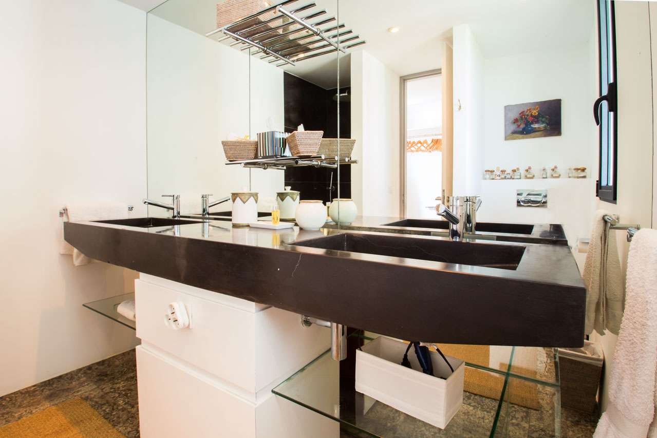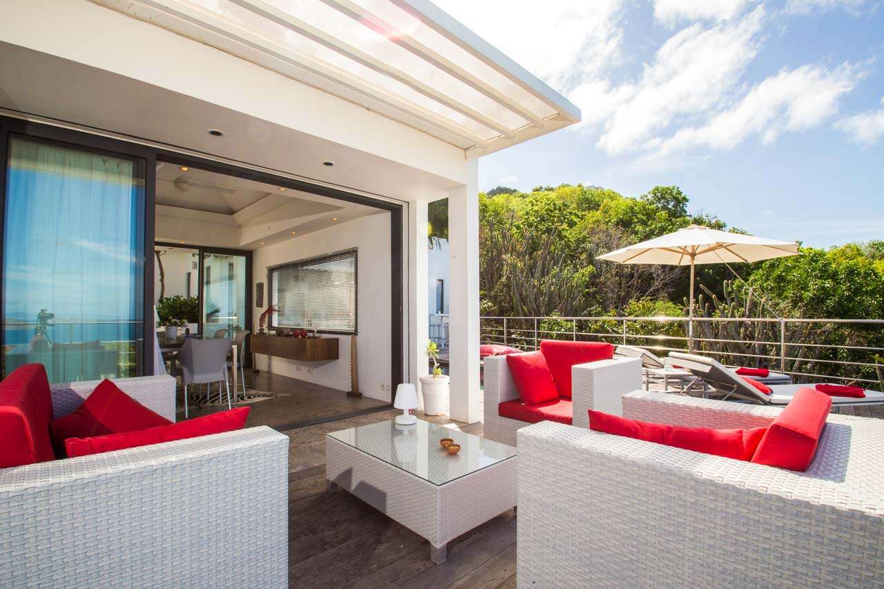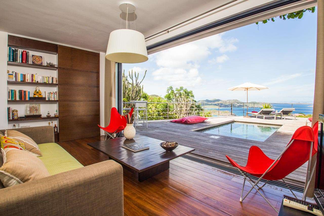 Welcome to Villa Ti Agave (villa code: WV AGV), a contemporary 1-bedroom villa located in Vitet, St. Barts. Embracing the St. Barts lifestyle is easy at this bright and beautiful island home, featuring an effortless style and outstanding views of the ocean and nearby islands. The clean design of Villa Ti Agave allows for plenty of relaxed days spent either inside or out. Bold streaks of red in the furnishings add a lively splash to the décor, which is otherwise elegant and pared-back - the classic St. Barts style. The home is completed by gorgeous wooden floors underfoot and unique décor. Nestled high up in the hills of Camaruche at the entrance of Vitet, Villa Ti Agave enjoys a prime position for a secluded vacation. Facing west, the sunset views are gorgeous, while shops and beaches are only a short drive away. Living Spaces: Villa Ti Agave is composed of two separate bungalows connected by the outdoor terrace. Even though there’s only one bedroom here, there’s still plenty of space to relax and unwind, taking in those spectacular sea views. The first bungalow is in front of the pool and deck, with the central living room. This space can either be opened to the incredible views or closed off and air-conditioned. A soft sofa and chairs are ideal for kicking back, while shelves are overflowing with interesting holiday reads. Kitchen and Dining Room: The second bungalow is next to the pool and contains both the kitchen and a large dining area. Bright red cabinetry in the kitchen is eye-catching, capturing a creative vibe that encourages you to experiment with the local ingredients. For a night off, our concierge could even organize a private chef to pay a visit to the villa. The indoor dining table is a fabulous setting for meals, with seating for up to six people. Long dinners here with loved ones will be a highlight of any stay. Bedrooms: Also in the second bungalow is Villa Ti Agave’s bedroom. Touches of earthy brown and rattan textures help make this space a great spot to unwind after a day at the beach or shopping in Gustavia. There’s a plush European king-sized bed, a dressing area, and a spacious ensuite bathroom with a shower. Sliding doors open to the outdoor terrace, letting you start and end each day with those arresting views over the St. Barts landscape. Outdoor Features: Graceful, light, and playful, the outdoor areas at Villa Ti Agave make you feel as if you’re on top of the world. The weathered wooden terrace enjoys plenty of space in both sun and shade, letting you enjoy leisurely days with ease. A lounge area is a great spot to invite some friends over for a cocktail evening, watching the spectacular sunset cast golden colors across the sea and sky. As the evening fades, the offshore islands shift into silhouettes, while below, the lights of villas in the hills twinkle to life. The swimming pool is a tempting spot for a dip, cooling off in the heat of the day. Sunseekers will love the chaise loungers that line the water, offering an enticing spot for sunbathing, reading, or drifting off to the sound of the breeze rustling through palm trees. For days at the beach, Villa Ti Agave is only a 5-minute drive from Lorient Beach. Pristine, beautiful, and inviting, this is the dream Caribbean beach. Also within a short drive are the beaches at St. Jean, and the quieter Marigot and Grand Cul de Sac.Please fill out the form to begin your inquiry and we will connect you with a seasoned villa rental specialist.