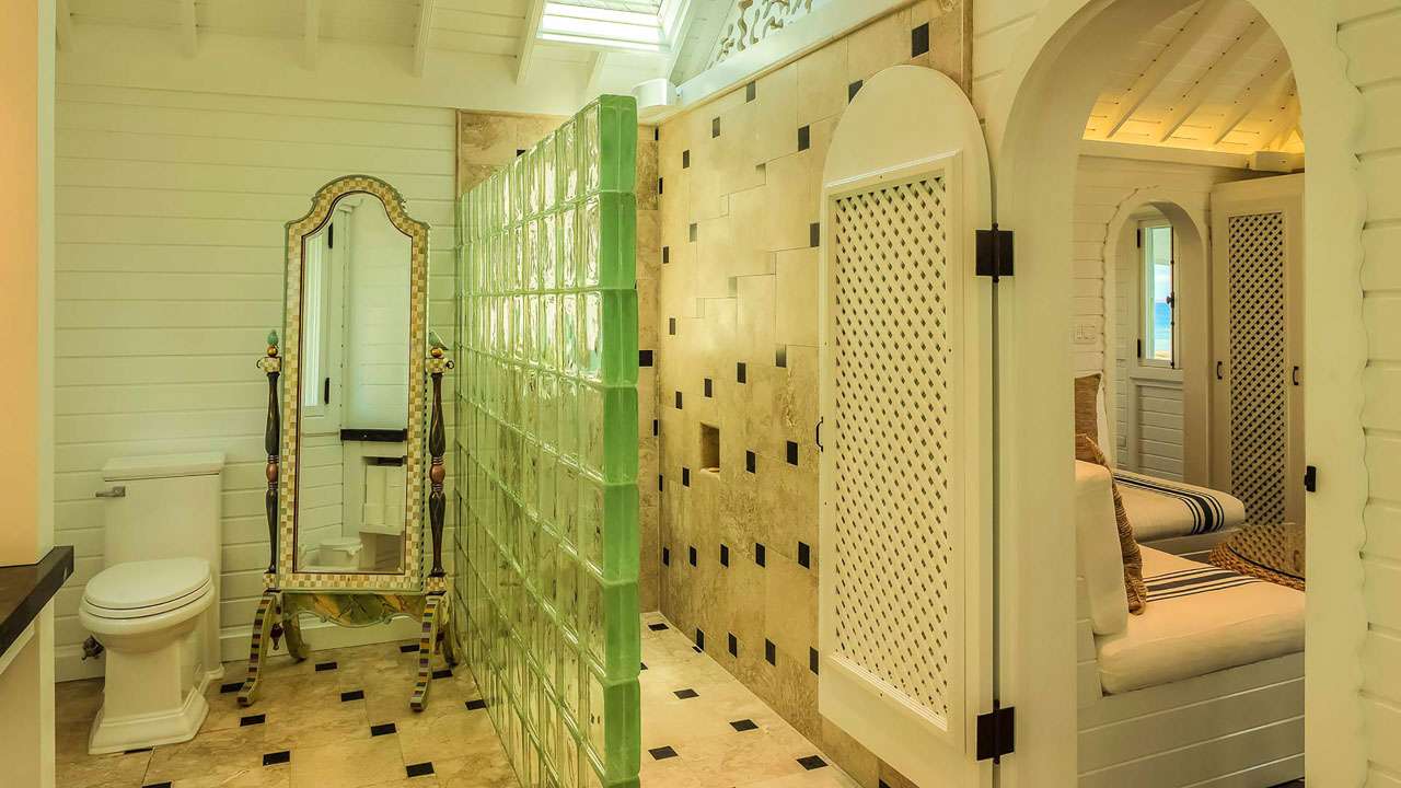 The fourth and final bedroom is on the upper level of Villa Tigh-na-Mara’s pool house. With its own kitchenette, it’s ideal for those after a bit more seclusion. A private terrace is a fantastic spot for a quiet cocktail while watching the beautiful island sunset.