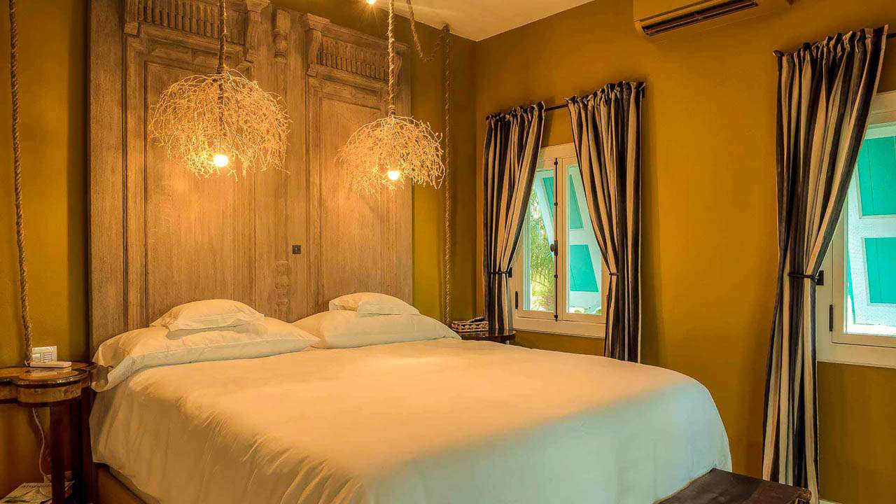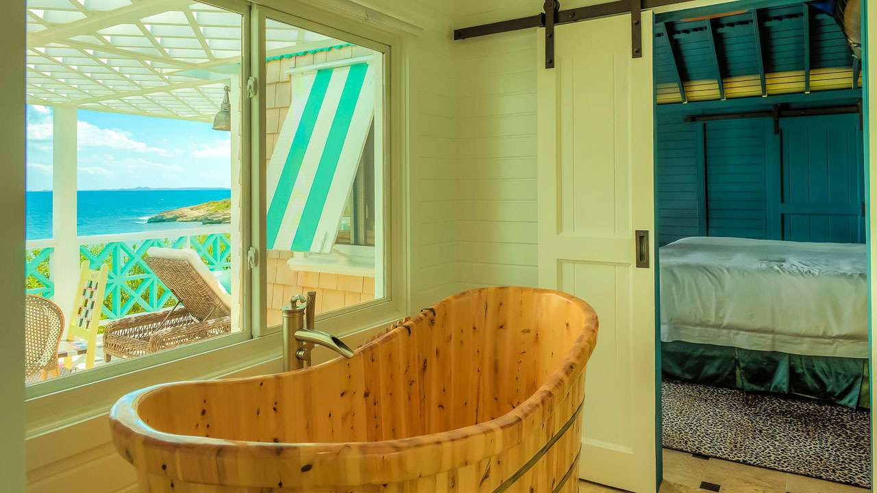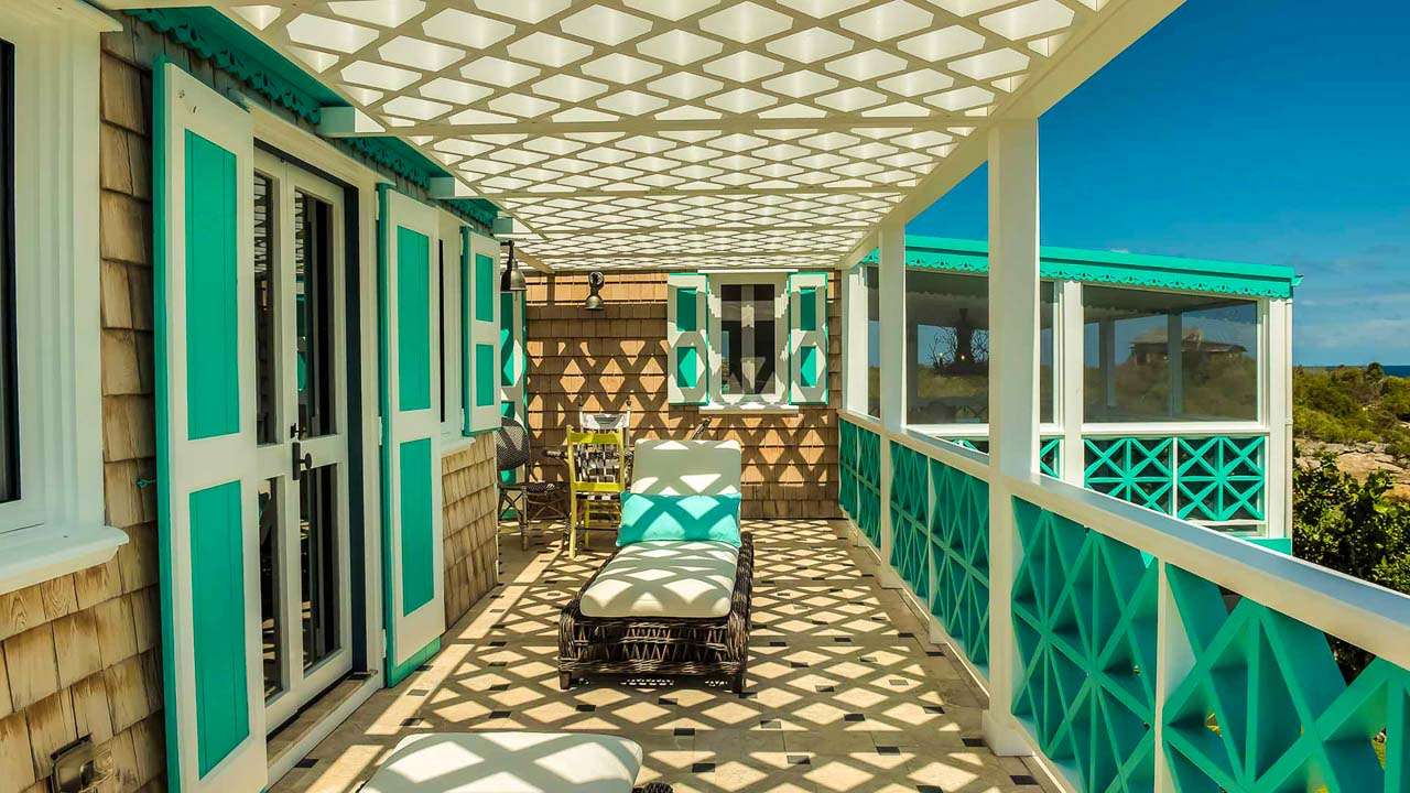 The exterior lattice and shutters are trimmed in vibrant teal and white, while inside this villa will immerse you in the ambiance of days gone by. Wooden details, plenty of Caribbean color, and wicker furnishings will immerse you in the island lifestyle.