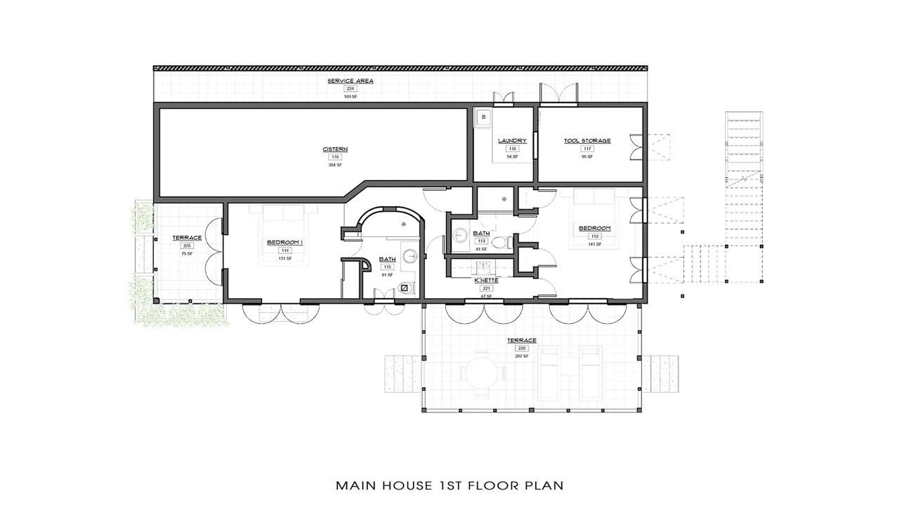 There are three bedrooms in the main house, each with a king-sized bed. The master bedroom is spacious and airy, with access to a private terrace. Two more bedrooms on the ground level are quiet and peaceful, with a small kitchenette between them both.