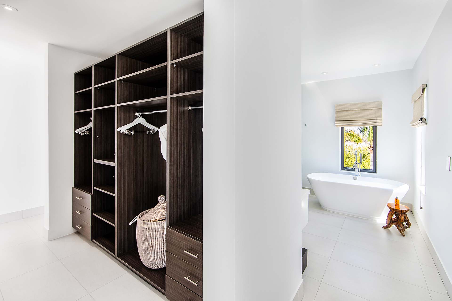 The stunning glass-walled pool is a highlight. With an infinity edge, you’ll feel at one with the shimmering Caribbean just steps away. It also has an intuitive LED lighting system, letting you program it to your favorite hue or hook it up to the villa’s sound system for a sun-soaked pool party.