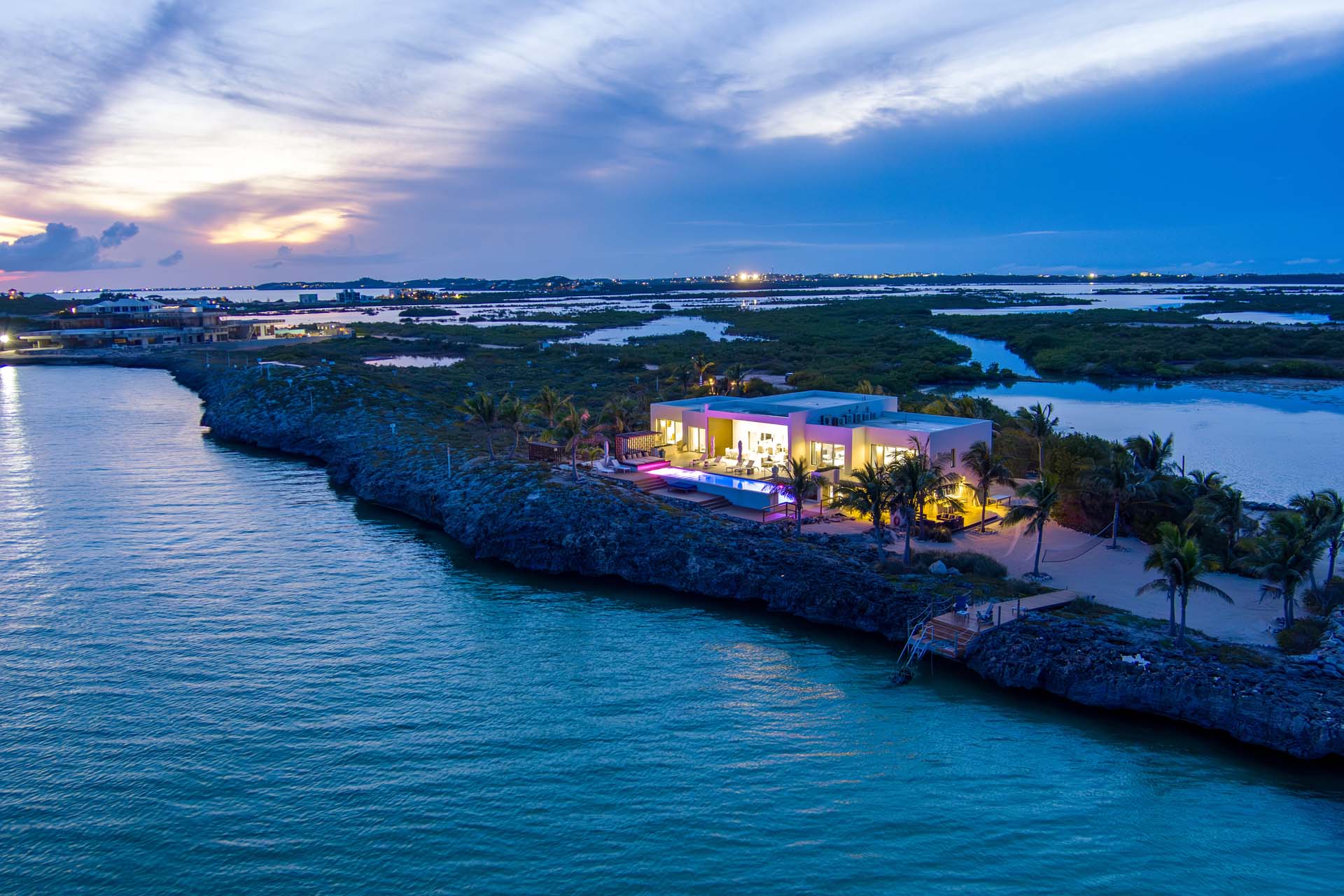 Situated at the very edge of the Turtle Tail Peninsula, the outdoor living areas at Villa Tip of the Tail are sublime. Surrounded by ocean, lagoon, and tranquil mangroves, you’ll love soaking up the gorgeous natural beauty of Turks and Caicos.