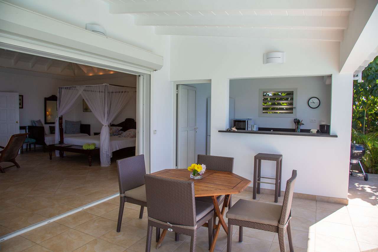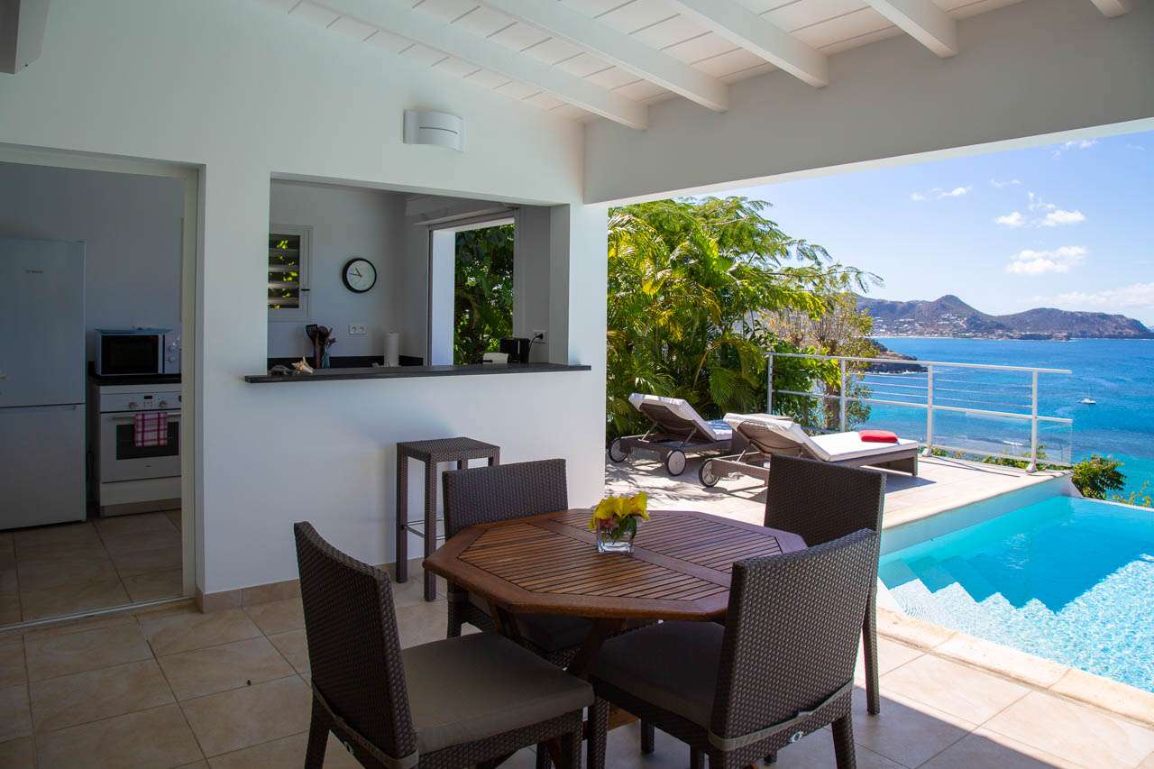 Welcome to Villa Tortue (villa code: WV TOR), a charming 1-bedroom villa in Lorient, St. Barts. With stunning views over the ocean and all the creature comforts needed for a relaxing stay, this villa is an indulgent choice for your Caribbean getaway. The smart design of Villa Tortue is unique within St. Barts. Elegant furnishings combine with the laid-back style, with white walls, vaulted ceilings, and immersive sea views. Airy and bright, this is the ideal villa for shrugging off the rushes of modern life and experiencing the elegance of St. Barts. With an enviable position above Lorient Bay, Villa Tortue enjoys incredible views of the ocean and offshore islands. The beach, restaurants, and shops are all within a short drive. This villa can be rented individually or can be combined with its neighbor, Villa Carette (villa code: WV CAR), for a total of 3 bedrooms. Villa Tortue enjoys a superb blend of indoor and outdoor space, making great use of the location to take in those incredible views. The air-conditioned living area and bedroom share the same space (similar to a hotel suite), opening to the terrace with ocean views. Comfortable and quiet, the main space is a wonderful spot to relax and unwind. Whether you’re enjoying a cool drink or reading a book, the island breezes infuse the home with the scents of the tropical paradise just below. The unique layout of Villa Tortue continues with its kitchen, accessed from the covered terrace outside. The semi-alfresco setting is inspiring, giving you plenty of reasons to experiment with local recipes. Our concierge can even organize a grocery delivery, or for a special occasion, a private chef. The kitchen opens to the covered terrace on one side, where the dining table sits. It’s a wonderful spot to share a meal with family and friends, with the shimmering ocean as a backdrop. Back inside, the four-poster king-sized bed promises a wonderful night’s sleep. The colonial style of the bed is matched by several antique pieces in the room, giving the entire home a touch of old-world romance. A large, modern bathroom and walk-in dressing area are also located at the entrance to Villa Tortue. When rented alongside Villa Carette, both properties maintain complete privacy. The terrace at Villa Tortue offers lounge chairs for either sunbathing or working poolside. With the ocean breeze washing over the entire area, it’s also a tempting spot to drift off to sleep, listening to the rustling trees that surround the home. When things get too warm, the infinity pool is tempting, an idyllic spot to enjoy a day. From the edge, the uninterrupted views are incredible, taking in the blue ocean and the offshore islands. And when the beach calls, it’s a short drive down the road to the silky sands of Lorient Bay.Please fill out the form to begin your inquiry and we will connect you with a seasoned villa rental specialist.