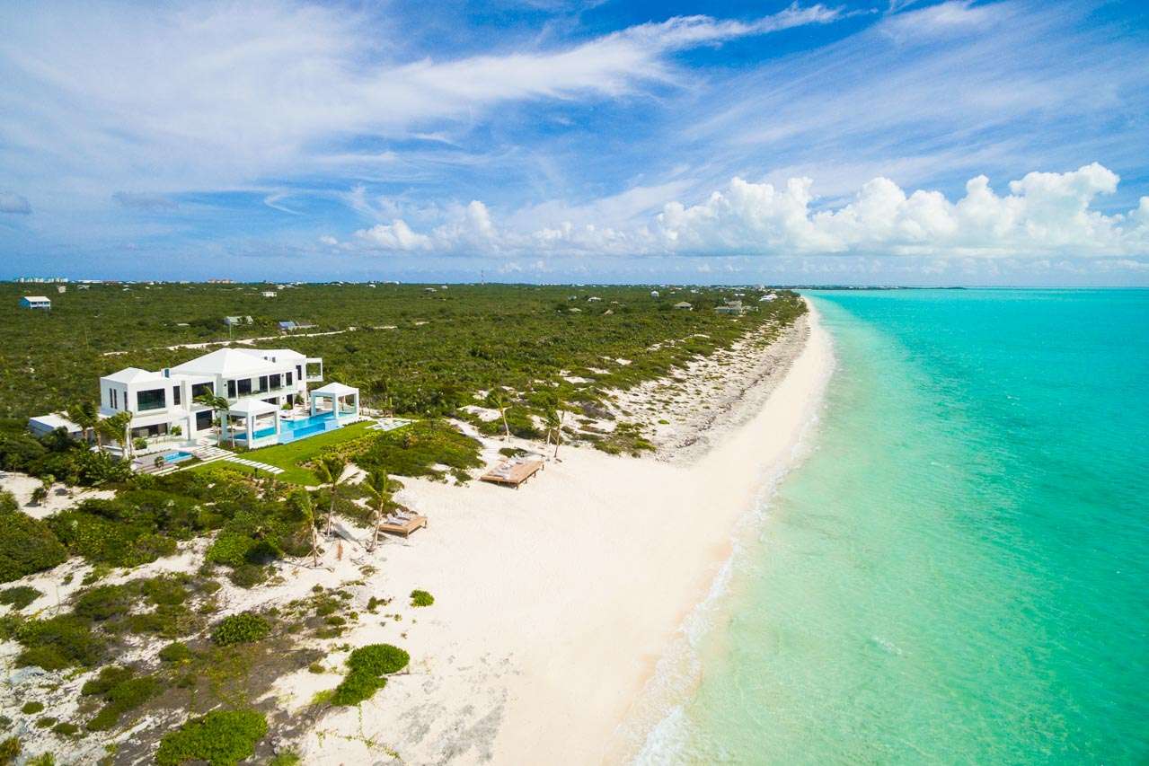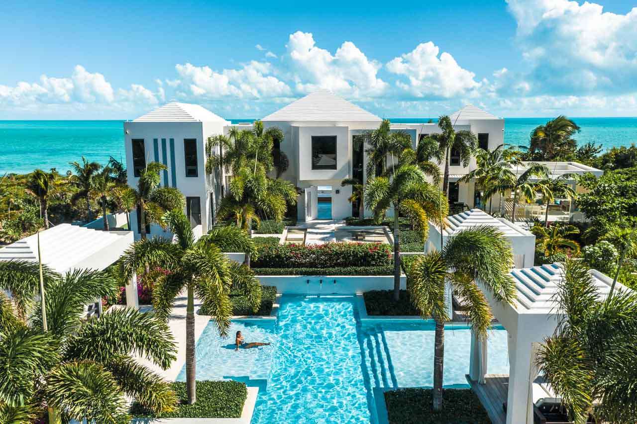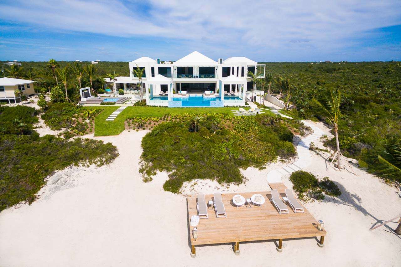 Triton Luxury Villa, also known as TC TRI is a stunning 10 + 2-bedroom villa tucked behind the pristine sand dunes of Long Bay Beach. The estate occupies over 2 acres of lush landscape and 10,000 sq feet of lavish beachfront living space.
