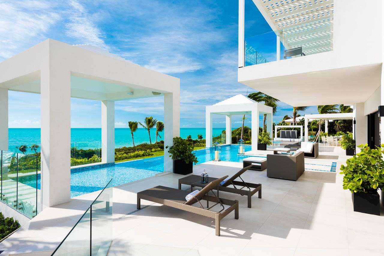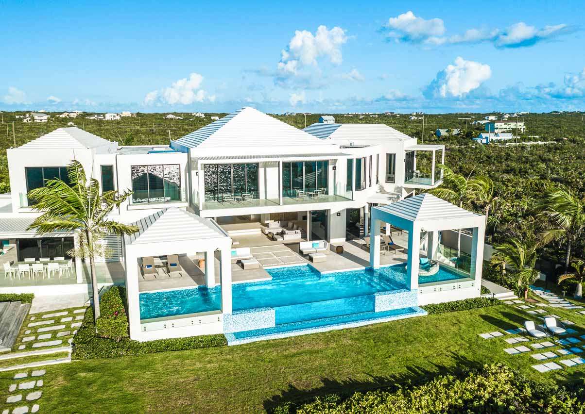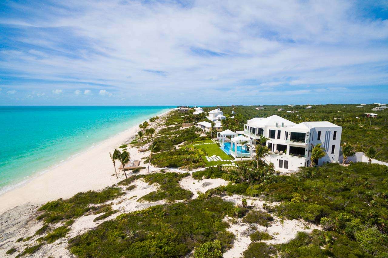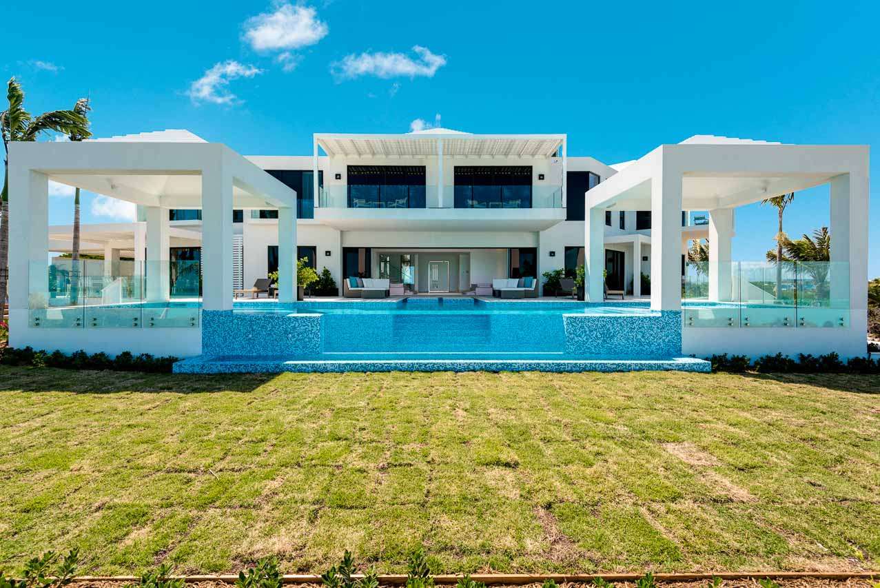 Triton Luxury Villa, also known as TC TRI is a stunning 10 + 2-bedroom villa tucked behind the pristine sand dunes of Long Bay Beach. The estate occupies over 2 acres of lush landscape and 10,000 sq feet of lavish beachfront living space.