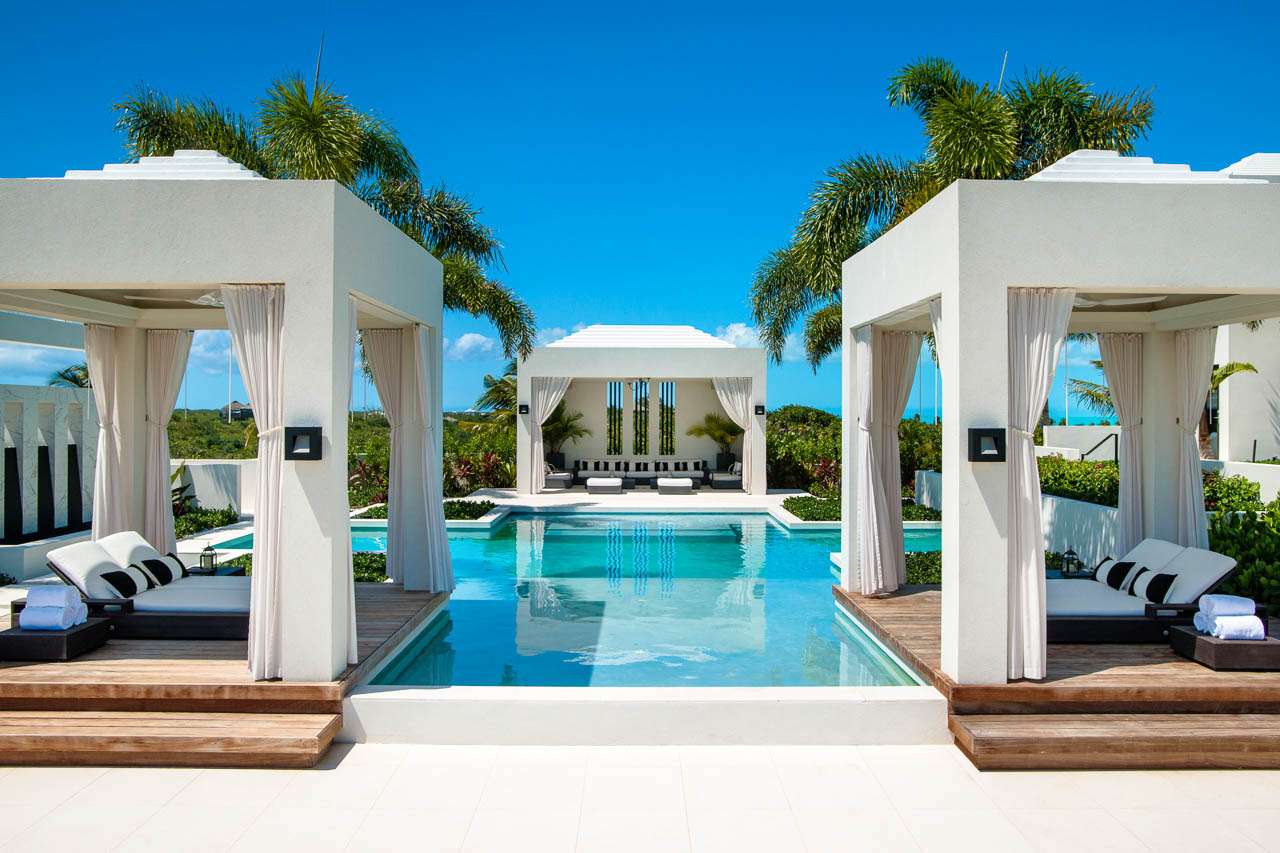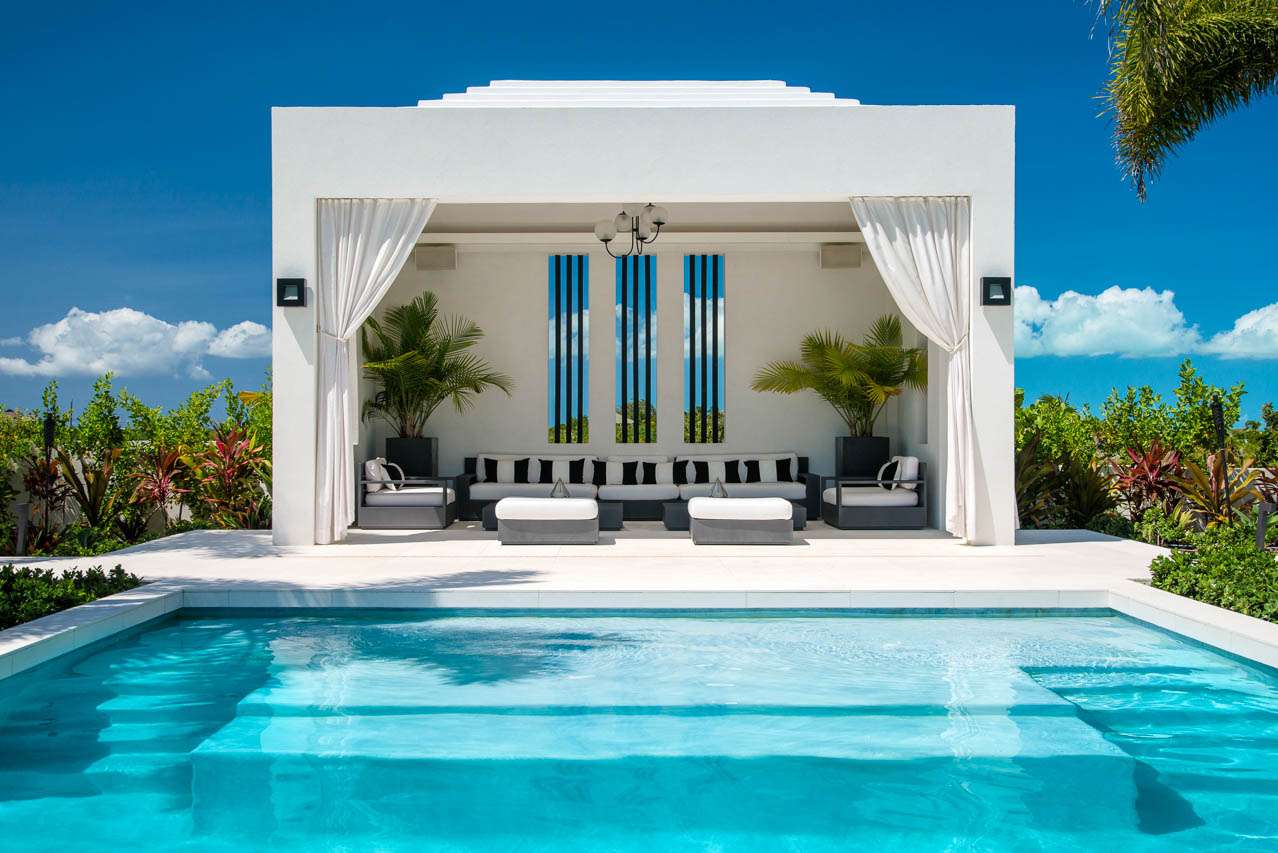 Triton includes an outdoor movie theater with fire pit, hot tub, 2 pools, private tennis and bocce ball courts, villa butler, one of the nicest beachfronts on Long Bay and endless unobstructed views of the world-famous turquoise waters.