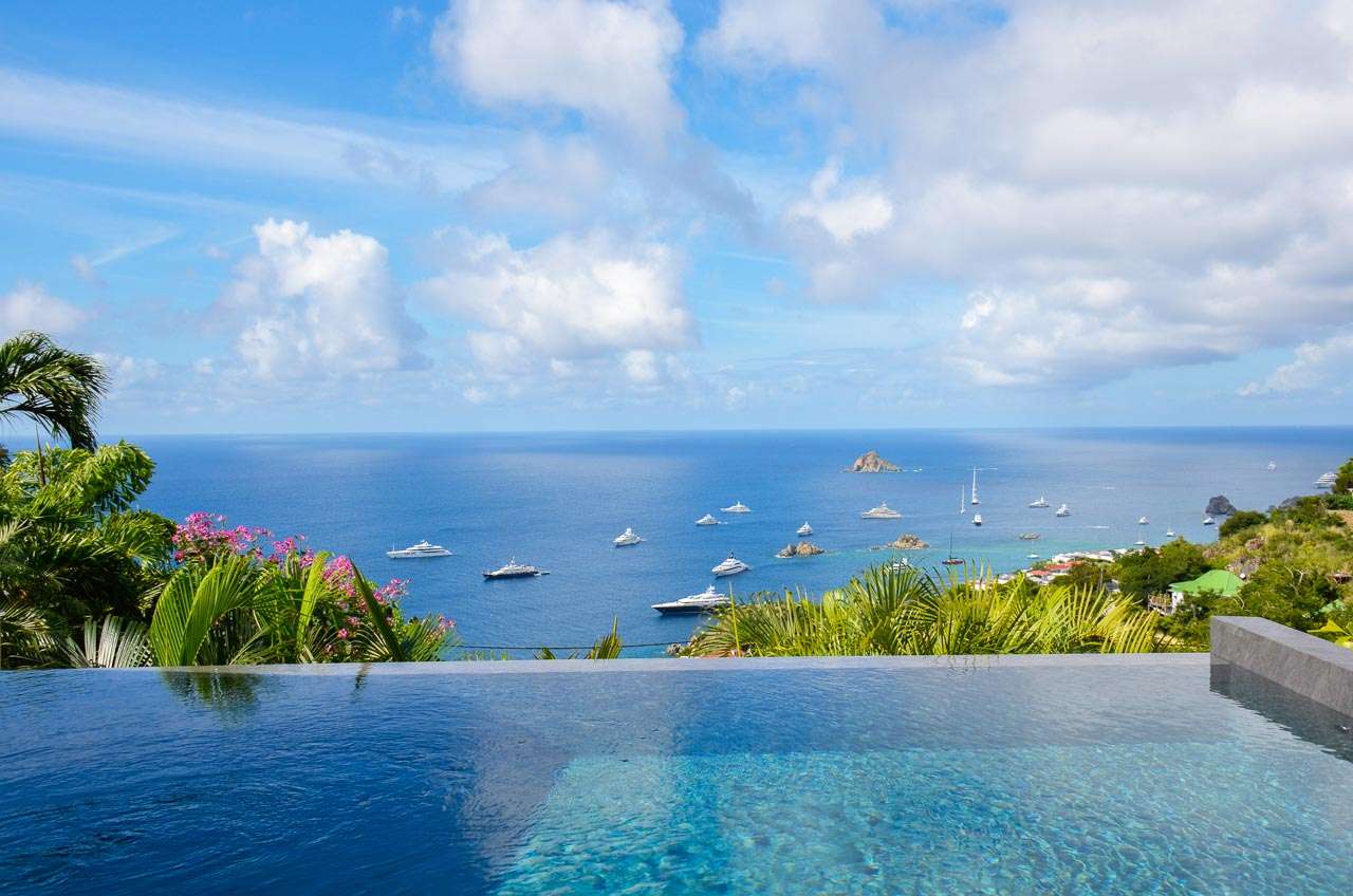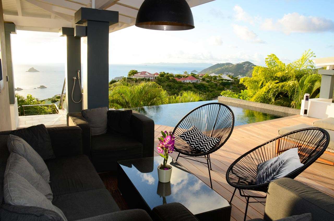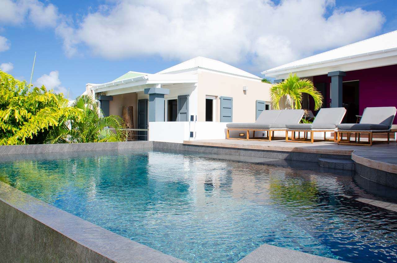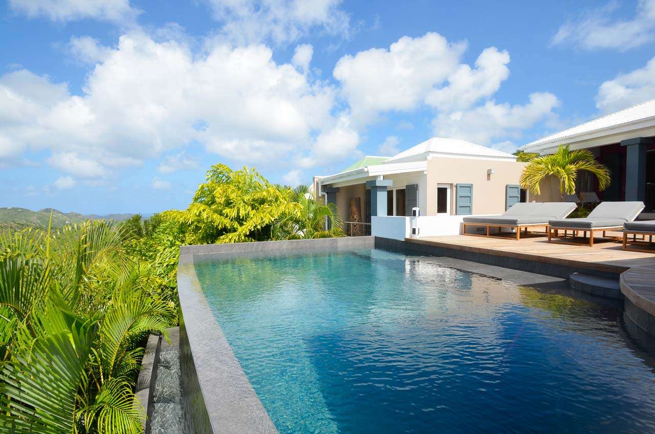 Welcome to Villa Vague Bleue (villa code: WV VLC), an idyllic 3-bedroom villa located in Lurin, St. Barts. This modern villa enjoys spectacular sunsets and views over the Caribbean, hills, and surrounding islands. Modern, luxurious, and elegant, the interiors of Villa Vague Bleu make it easy to relax. There are plenty of unique touches, with modern artwork on the walls and splashes of vibrant color. Natural light and the island breezes help immerse you in the tropical paradise, putting the final touches on this luxurious St. Barts home. Nestled in the hills of Lurin, Villa Vague Bleue is 3 minutes by car from the heart of Gustavia, with restaurants, bars, and shops. Gouverneur Beach is a short drive away, a rugged cove with powder-soft sand and shimmering turquoise waters. The contemporary décor inside Villa Vague Bleue is tastefully put together, combining wooden furnishings with a mix of white and colorful feature walls. There’s ocean glass on display, photographic prints and artworks, and the panoramic views enhancing it all. The living room opens onto a teak terrace facing the view and pool. There’s a wonderful sofa to sink into, and a pair of sleek armchairs as well. The entire space is awash with the island breeze, helping you kick back, relax, and slip into the enticing pace of life in St. Barts. The modern kitchen, located at the back of the living room, is well-equipped and features a large countertop. Foodies will love the range of high-end appliances. A breakfast bar makes it easy to stay social while the chef in your group prepares a meal. Under the covered front terrace is a dining area with a wooden table and seating for up to 6 guests. A second table on the terrace provides another alfresco setting for meals, a wonderful and wistful spot to gather with family and friends over some fantastic food and drink. At the end of each day, retreating into one of the 3 bedrooms at Villa Vague Bleue provides comfort and quiet. These plush spaces use soft linens, textured throws and rugs, and modern art to create a peaceful, island atmosphere. Each room has air-conditioning, a wonderful king-sized bed, an ensuite bathroom, and ocean views. There are two master bedrooms on either side of the pool terrace, while the third bedroom is downstairs with a private terrace to enjoy. Whether you’re entertaining guests or spending a lazy day lounging around, the outdoor living spaces at Villa Vague Bleue are splendid. On the covered terrace next to the dining table are several chairs, all looking out toward the alluring ocean views. The infinity pool enjoys all-day sun, stretching toward the edge of the terrace to meet the hills below. There are loungers for sunbathing and another lounge area under a covered part of the terrace for even more relaxed downtime in the shade. Located at the back, a private area offers a gazebo with a grill and a nearby hot tub, making this an ideal spot to entertain. For days at the beach, it’s around an 8-minute drive to Gouverneur Beach, a wild and beautiful stretch of sand on the south coast of St. Barts. During the December holidays, the villa rents at the full occupancy rate regardless of how many bedrooms are used.Please fill out the form to begin your inquiry and we will connect you with a seasoned villa rental specialist.