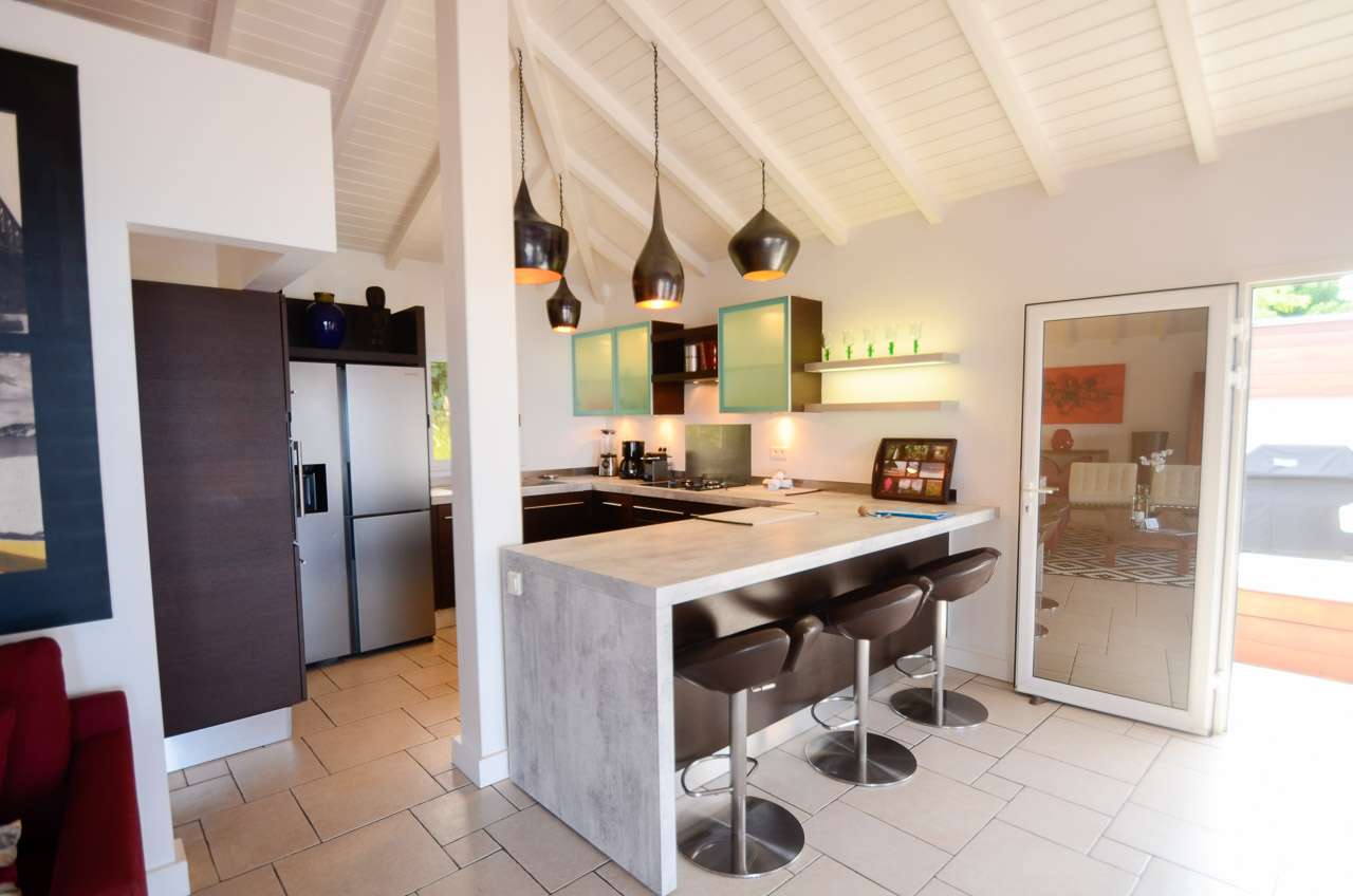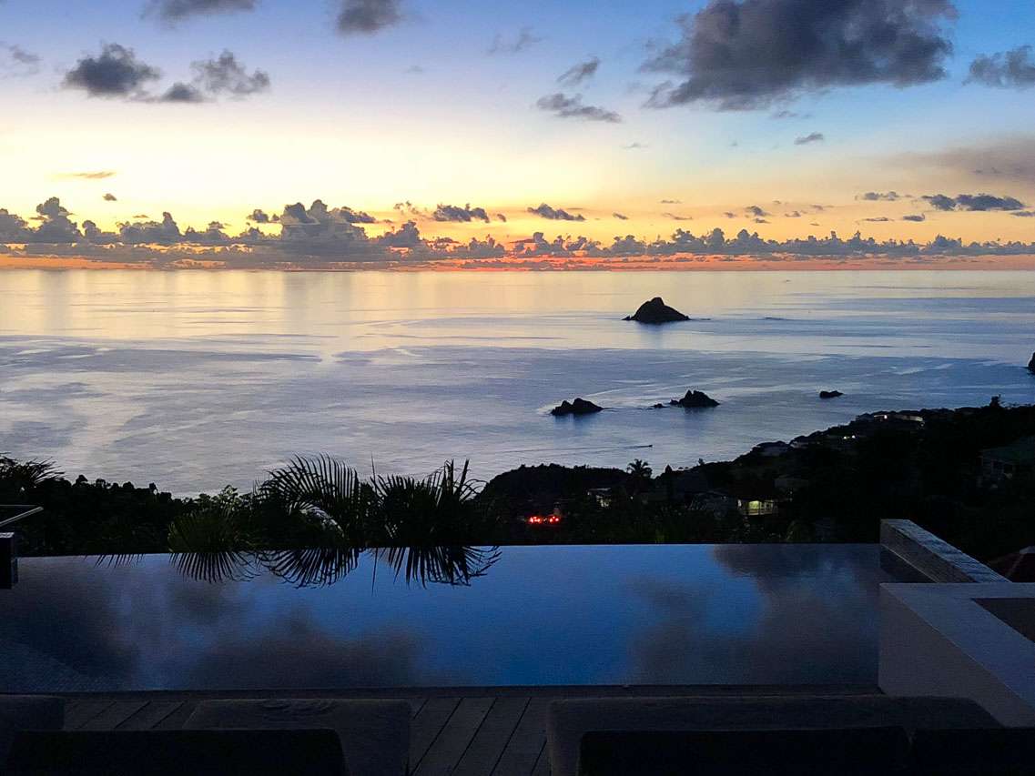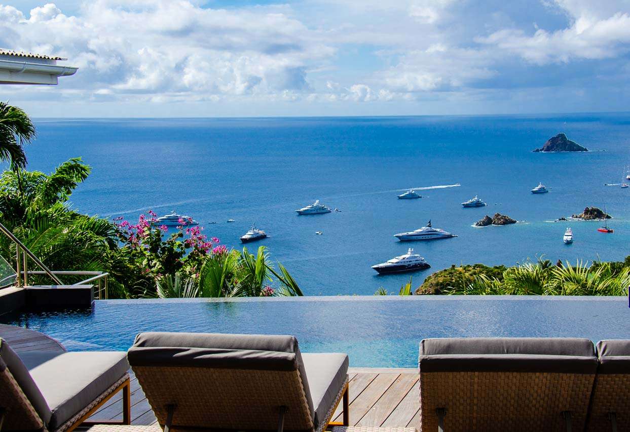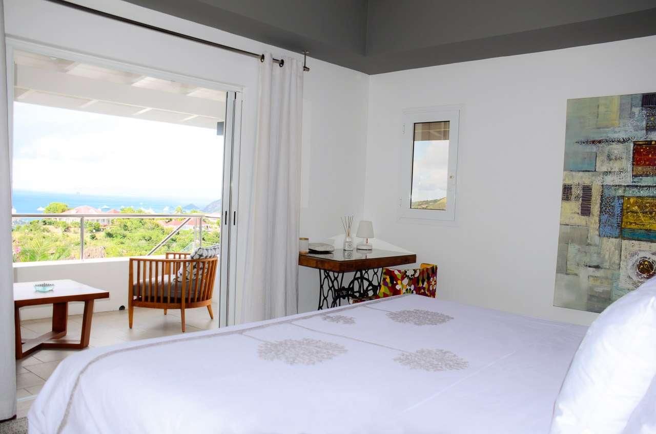 Welcome to Villa Vague Bleue (villa code: WV VLC), an idyllic 3-bedroom villa located in Lurin, St. Barts. This modern villa enjoys spectacular sunsets and views over the Caribbean, hills, and surrounding islands. Modern, luxurious, and elegant, the interiors of Villa Vague Bleu make it easy to relax. There are plenty of unique touches, with modern artwork on the walls and splashes of vibrant color. Natural light and the island breezes help immerse you in the tropical paradise, putting the final touches on this luxurious St. Barts home. Nestled in the hills of Lurin, Villa Vague Bleue is 3 minutes by car from the heart of Gustavia, with restaurants, bars, and shops. Gouverneur Beach is a short drive away, a rugged cove with powder-soft sand and shimmering turquoise waters. The contemporary décor inside Villa Vague Bleue is tastefully put together, combining wooden furnishings with a mix of white and colorful feature walls. There’s ocean glass on display, photographic prints and artworks, and the panoramic views enhancing it all. The living room opens onto a teak terrace facing the view and pool. There’s a wonderful sofa to sink into, and a pair of sleek armchairs as well. The entire space is awash with the island breeze, helping you kick back, relax, and slip into the enticing pace of life in St. Barts. The modern kitchen, located at the back of the living room, is well-equipped and features a large countertop. Foodies will love the range of high-end appliances. A breakfast bar makes it easy to stay social while the chef in your group prepares a meal. Under the covered front terrace is a dining area with a wooden table and seating for up to 6 guests. A second table on the terrace provides another alfresco setting for meals, a wonderful and wistful spot to gather with family and friends over some fantastic food and drink. At the end of each day, retreating into one of the 3 bedrooms at Villa Vague Bleue provides comfort and quiet. These plush spaces use soft linens, textured throws and rugs, and modern art to create a peaceful, island atmosphere. Each room has air-conditioning, a wonderful king-sized bed, an ensuite bathroom, and ocean views. There are two master bedrooms on either side of the pool terrace, while the third bedroom is downstairs with a private terrace to enjoy. Whether you’re entertaining guests or spending a lazy day lounging around, the outdoor living spaces at Villa Vague Bleue are splendid. On the covered terrace next to the dining table are several chairs, all looking out toward the alluring ocean views. The infinity pool enjoys all-day sun, stretching toward the edge of the terrace to meet the hills below. There are loungers for sunbathing and another lounge area under a covered part of the terrace for even more relaxed downtime in the shade. Located at the back, a private area offers a gazebo with a grill and a nearby hot tub, making this an ideal spot to entertain. For days at the beach, it’s around an 8-minute drive to Gouverneur Beach, a wild and beautiful stretch of sand on the south coast of St. Barts. During the December holidays, the villa rents at the full occupancy rate regardless of how many bedrooms are used.Please fill out the form to begin your inquiry and we will connect you with a seasoned villa rental specialist.