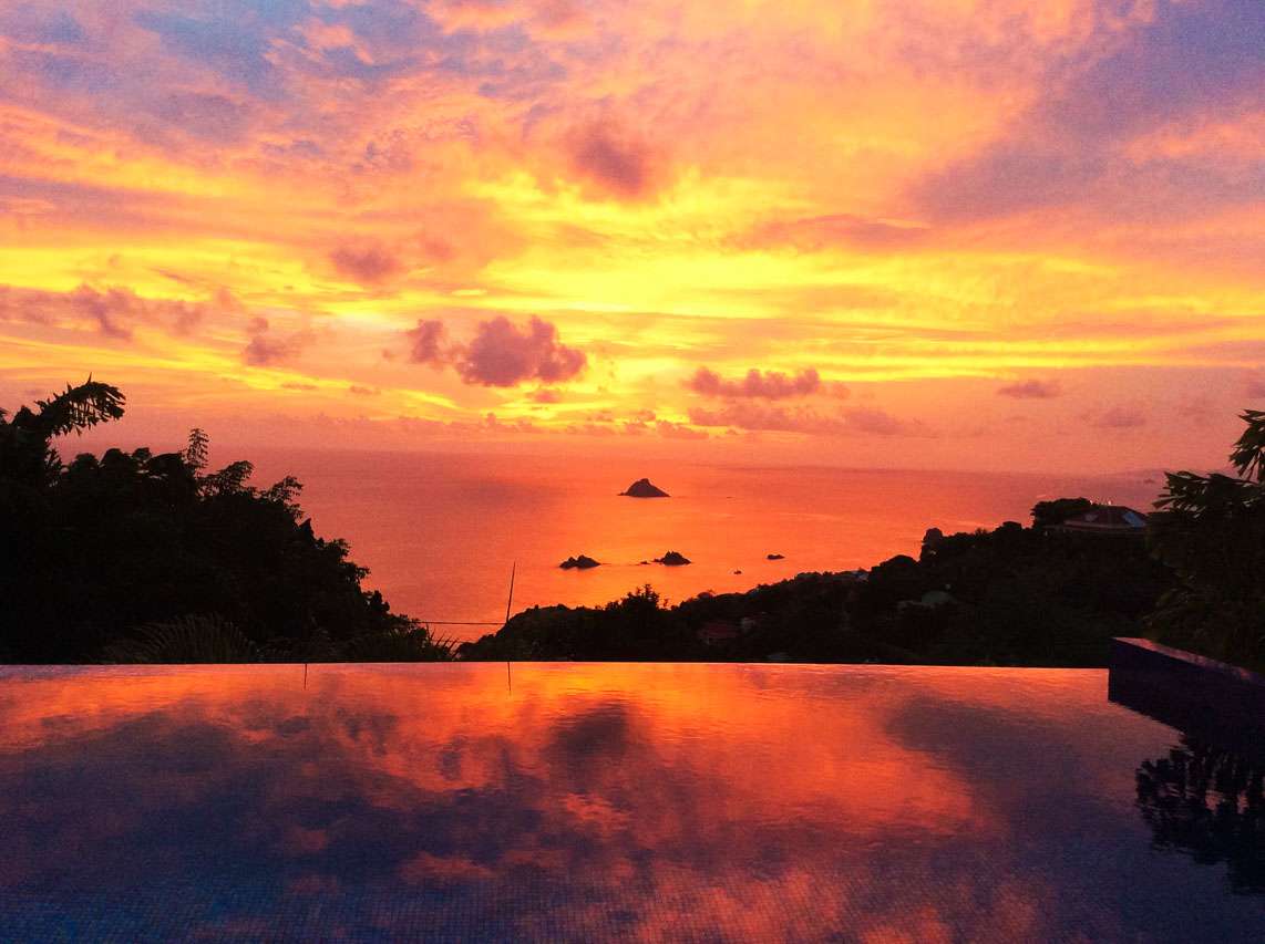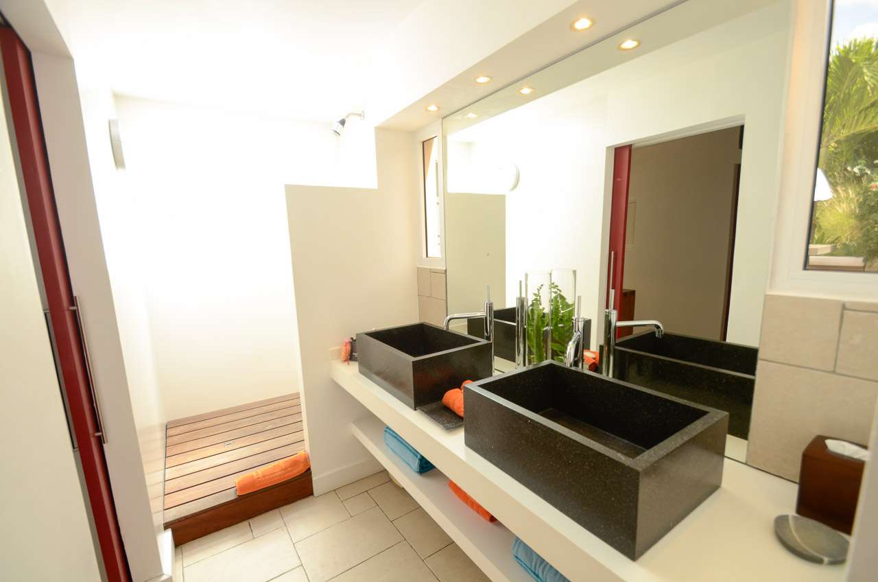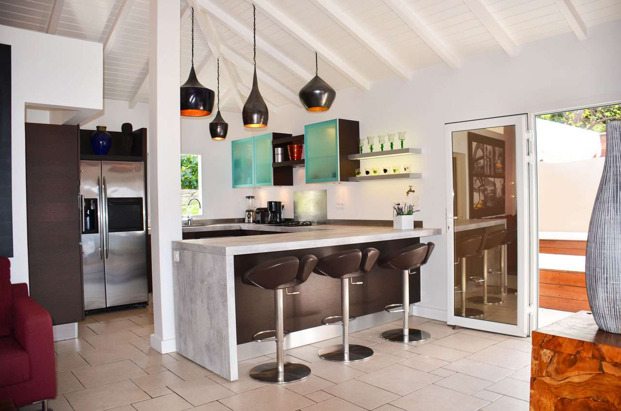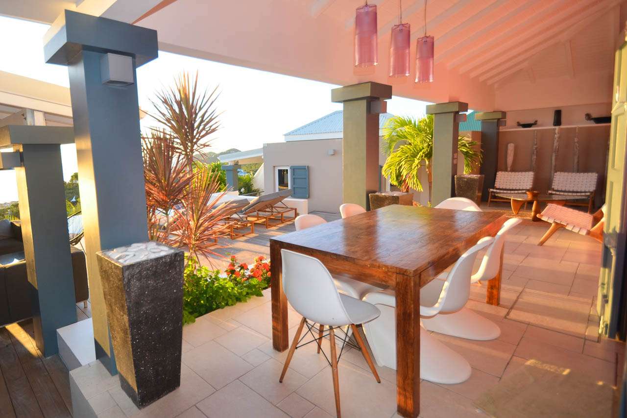 Welcome to Villa Vague Bleue (villa code: WV VLC), an idyllic 3-bedroom villa located in Lurin, St. Barts. This modern villa enjoys spectacular sunsets and views over the Caribbean, hills, and surrounding islands. Modern, luxurious, and elegant, the interiors of Villa Vague Bleu make it easy to relax. There are plenty of unique touches, with modern artwork on the walls and splashes of vibrant color. Natural light and the island breezes help immerse you in the tropical paradise, putting the final touches on this luxurious St. Barts home. Nestled in the hills of Lurin, Villa Vague Bleue is 3 minutes by car from the heart of Gustavia, with restaurants, bars, and shops. Gouverneur Beach is a short drive away, a rugged cove with powder-soft sand and shimmering turquoise waters. The contemporary décor inside Villa Vague Bleue is tastefully put together, combining wooden furnishings with a mix of white and colorful feature walls. There’s ocean glass on display, photographic prints and artworks, and the panoramic views enhancing it all. The living room opens onto a teak terrace facing the view and pool. There’s a wonderful sofa to sink into, and a pair of sleek armchairs as well. The entire space is awash with the island breeze, helping you kick back, relax, and slip into the enticing pace of life in St. Barts. The modern kitchen, located at the back of the living room, is well-equipped and features a large countertop. Foodies will love the range of high-end appliances. A breakfast bar makes it easy to stay social while the chef in your group prepares a meal. Under the covered front terrace is a dining area with a wooden table and seating for up to 6 guests. A second table on the terrace provides another alfresco setting for meals, a wonderful and wistful spot to gather with family and friends over some fantastic food and drink. At the end of each day, retreating into one of the 3 bedrooms at Villa Vague Bleue provides comfort and quiet. These plush spaces use soft linens, textured throws and rugs, and modern art to create a peaceful, island atmosphere. Each room has air-conditioning, a wonderful king-sized bed, an ensuite bathroom, and ocean views. There are two master bedrooms on either side of the pool terrace, while the third bedroom is downstairs with a private terrace to enjoy. Whether you’re entertaining guests or spending a lazy day lounging around, the outdoor living spaces at Villa Vague Bleue are splendid. On the covered terrace next to the dining table are several chairs, all looking out toward the alluring ocean views. The infinity pool enjoys all-day sun, stretching toward the edge of the terrace to meet the hills below. There are loungers for sunbathing and another lounge area under a covered part of the terrace for even more relaxed downtime in the shade. Located at the back, a private area offers a gazebo with a grill and a nearby hot tub, making this an ideal spot to entertain. For days at the beach, it’s around an 8-minute drive to Gouverneur Beach, a wild and beautiful stretch of sand on the south coast of St. Barts. During the December holidays, the villa rents at the full occupancy rate regardless of how many bedrooms are used.Please fill out the form to begin your inquiry and we will connect you with a seasoned villa rental specialist.