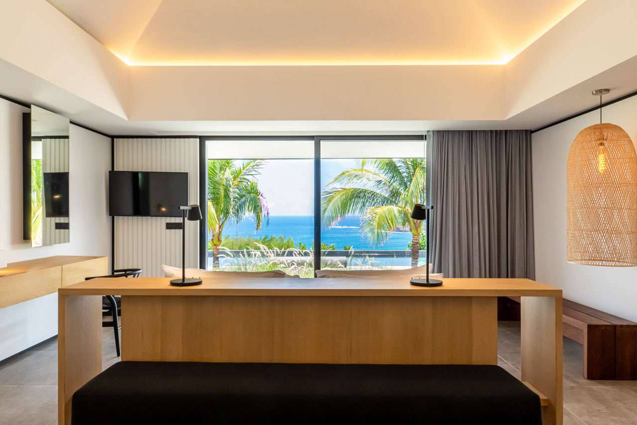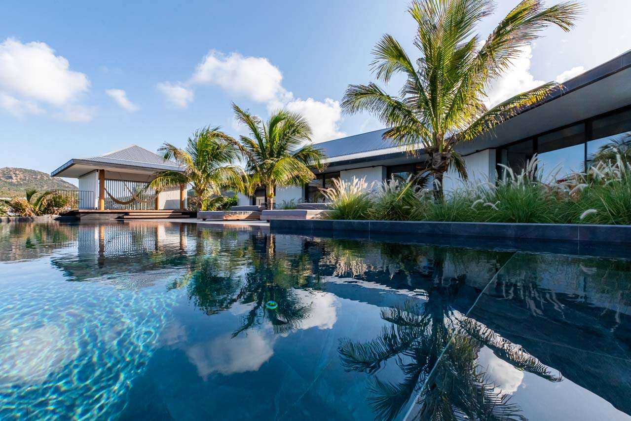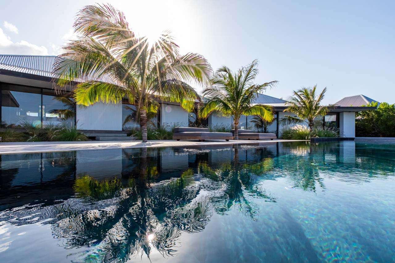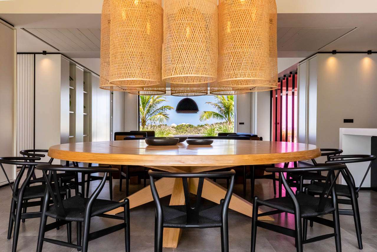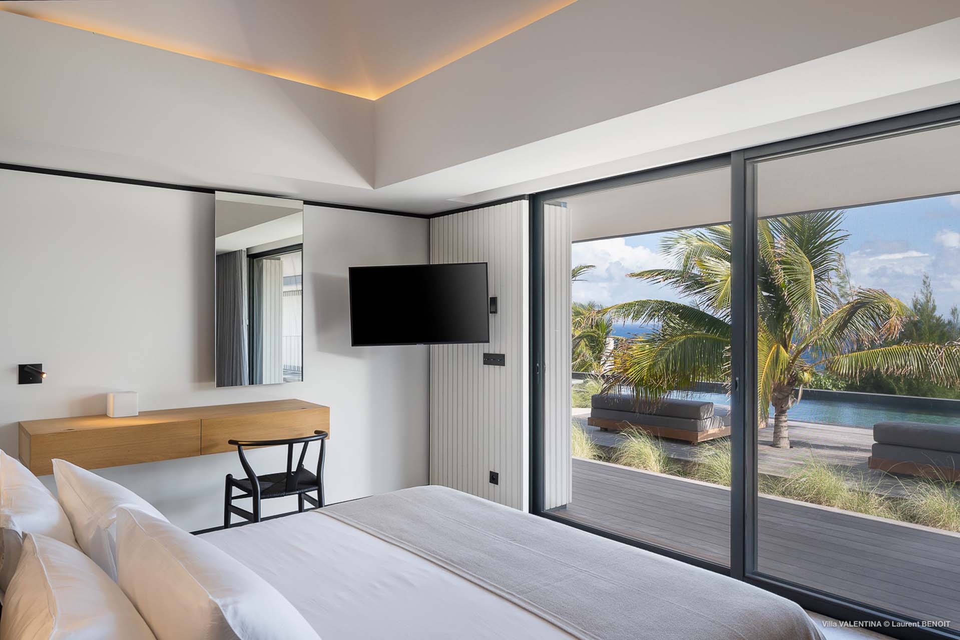 Welcome to Villa Valentina (villa code: WV VIP), an elegant 4+2-bedroom villa in the heart of Pointe Milou, St. Barts. Offering ocean views and generous indoor and outdoor spaces, this island home features an uncompromising commitment to quality, luxury, and design. The interiors of Villa Valentina enjoy a designer’s touch; expect top-quality furnishings, minimalist décor, and an effortless style. The custom details inside are also superb, from the striking white panels and custom wood furnishings to the industrial touches in the light fixtures and light touches of style at every turn. The well-established Villa Valentina sits on the eastern side of Pointe Milou, completely updated to make this one of the most enviable vacation homes on the island. The sweeping ocean views are incredible, taking in the island of La Tortue off the coast. And for days at the beach, both Lorient and Marigot are within a short drive. The interior living spaces inside Villa Valentina feature soaring ceilings above a dreamy, open-plan layout. This is the great room, evenly divided between the luxurious living area and the dining space. In the living room, three large lounging sofas offer the ideal spot to hang out, watch TV, or simply converse with others. The extensive bay windows offer splendid views of the pool, the terrace, and the shimmering ocean beyond. The modern and open kitchen at Villa Valentina features a large white Corian island, enhanced by the stunning light fixtures hanging from the ceiling. It’s a wonderful spot to take your time preparing meals, using fresh, local ingredients. The kitchen faces a round dining table that easily sits up to 16 guests. A central revolving plateau makes it ideal for passing food and drinks around, encouraging you to linger over long lunches and dinners – perhaps served by a chef who can make use of the fully-equipped chef’s kitchen, the second kitchen inside the home. There are 4 main bedrooms inside Villa Valentina, with 2 more bedrooms that are well-suited for children and live-in staff. Off the living room is the first master bedroom. This elegant space features a spacious ensuite that can open to the outside. Three more master suites are side by side in a separate unit by the pool. All four rooms feature plush, European king-sized beds and ensuite bathrooms. The villa also has a large children’s room. This unique room will be the favorite part of the house for kids, where 6 twin beds are placed in a dorm-style setting. It comes with an ensuite bathroom, closets, and TV. On the lower level is the sixth bedroom with two twin beds that can be pushed together to make a European king, and an ensuite bathroom with a shower. Neither of these two rooms has a view. The outdoor space at Villa Valentina is meant for workouts as well as for relaxation while enjoying the beautiful views and cooling breezes. Expect clean lines in the architecture, plush daybeds, and idyllic palm trees framing the ocean views. The star of the show here is the 80-foot-long heated pool, which allows you to swim real laps. At the end of the pool is the gazebo, which is equipped for yoga, boxing, and TRX. Comfortable, large loungers are set up along the deck in the sun, with palm trees as natural sun umbrellas. Villa Valentina is an ideal family villa, but also great for couples vacationing together. During the Thanksgiving and December holidays, the villa rents at the full occupancy rate regardless of the number of bedrooms used.Please fill out the form to begin your inquiry and we will connect you with a seasoned villa rental specialist.
