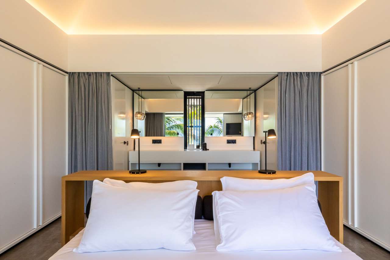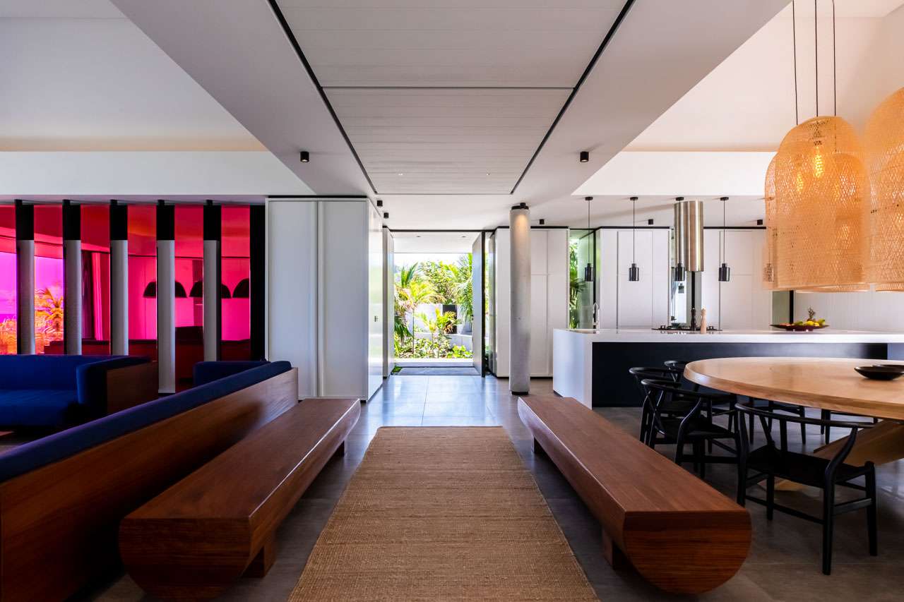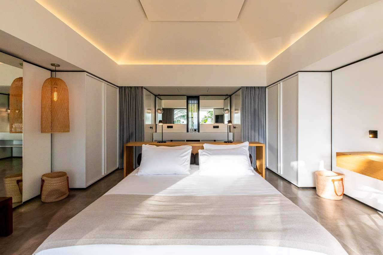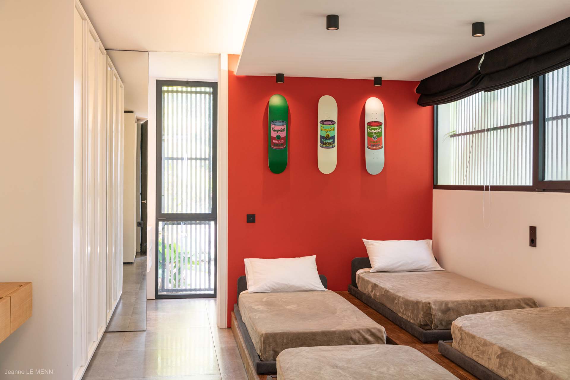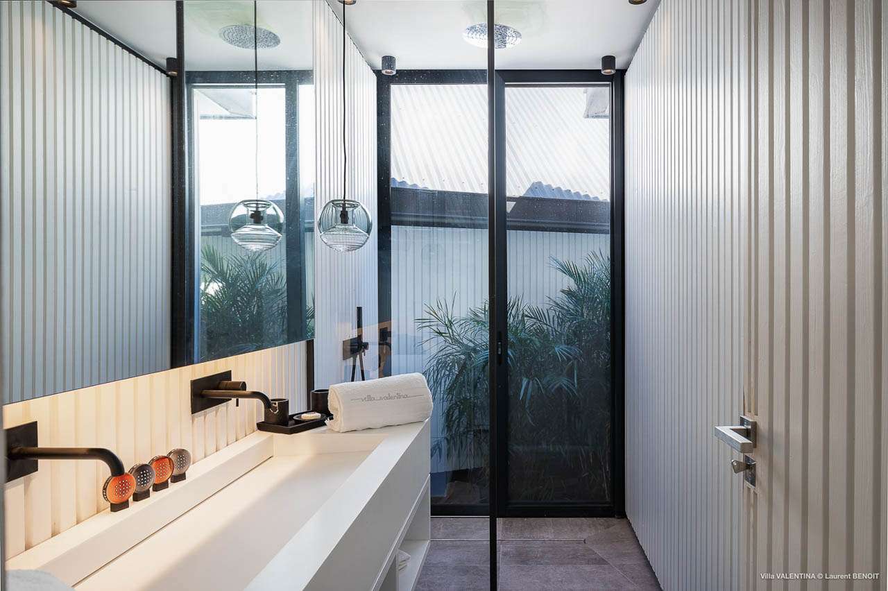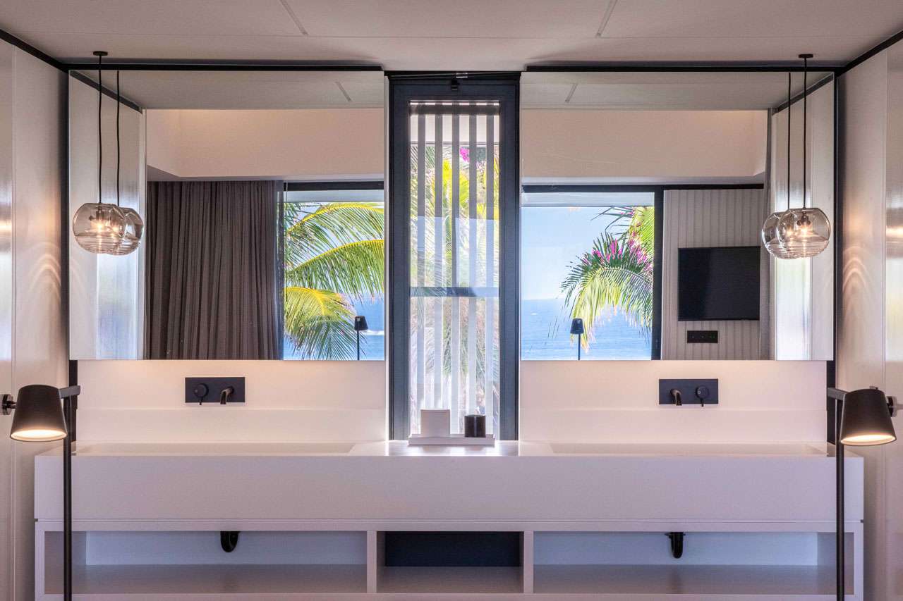 Welcome to Villa Valentina (villa code: WV VIP), an elegant 4+2-bedroom villa in the heart of Pointe Milou, St. Barts. Offering ocean views and generous indoor and outdoor spaces, this island home features an uncompromising commitment to quality, luxury, and design. The interiors of Villa Valentina enjoy a designer’s touch; expect top-quality furnishings, minimalist décor, and an effortless style. The custom details inside are also superb, from the striking white panels and custom wood furnishings to the industrial touches in the light fixtures and light touches of style at every turn. The well-established Villa Valentina sits on the eastern side of Pointe Milou, completely updated to make this one of the most enviable vacation homes on the island. The sweeping ocean views are incredible, taking in the island of La Tortue off the coast. And for days at the beach, both Lorient and Marigot are within a short drive. The interior living spaces inside Villa Valentina feature soaring ceilings above a dreamy, open-plan layout. This is the great room, evenly divided between the luxurious living area and the dining space. In the living room, three large lounging sofas offer the ideal spot to hang out, watch TV, or simply converse with others. The extensive bay windows offer splendid views of the pool, the terrace, and the shimmering ocean beyond. The modern and open kitchen at Villa Valentina features a large white Corian island, enhanced by the stunning light fixtures hanging from the ceiling. It’s a wonderful spot to take your time preparing meals, using fresh, local ingredients. The kitchen faces a round dining table that easily sits up to 16 guests. A central revolving plateau makes it ideal for passing food and drinks around, encouraging you to linger over long lunches and dinners – perhaps served by a chef who can make use of the fully-equipped chef’s kitchen, the second kitchen inside the home. There are 4 main bedrooms inside Villa Valentina, with 2 more bedrooms that are well-suited for children and live-in staff. Off the living room is the first master bedroom. This elegant space features a spacious ensuite that can open to the outside. Three more master suites are side by side in a separate unit by the pool. All four rooms feature plush, European king-sized beds and ensuite bathrooms. The villa also has a large children’s room. This unique room will be the favorite part of the house for kids, where 6 twin beds are placed in a dorm-style setting. It comes with an ensuite bathroom, closets, and TV. On the lower level is the sixth bedroom with two twin beds that can be pushed together to make a European king, and an ensuite bathroom with a shower. Neither of these two rooms has a view. The outdoor space at Villa Valentina is meant for workouts as well as for relaxation while enjoying the beautiful views and cooling breezes. Expect clean lines in the architecture, plush daybeds, and idyllic palm trees framing the ocean views. The star of the show here is the 80-foot-long heated pool, which allows you to swim real laps. At the end of the pool is the gazebo, which is equipped for yoga, boxing, and TRX. Comfortable, large loungers are set up along the deck in the sun, with palm trees as natural sun umbrellas. Villa Valentina is an ideal family villa, but also great for couples vacationing together. During the Thanksgiving and December holidays, the villa rents at the full occupancy rate regardless of the number of bedrooms used.Please fill out the form to begin your inquiry and we will connect you with a seasoned villa rental specialist.
