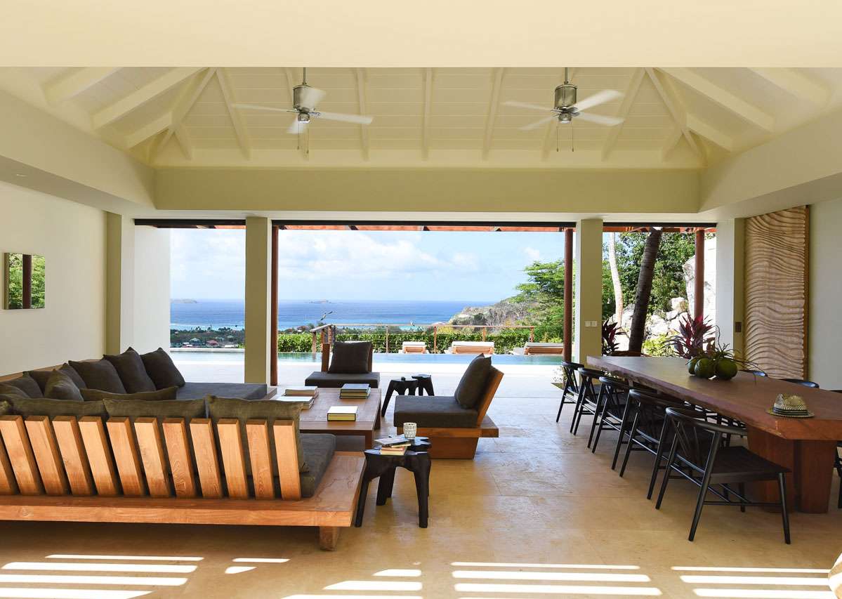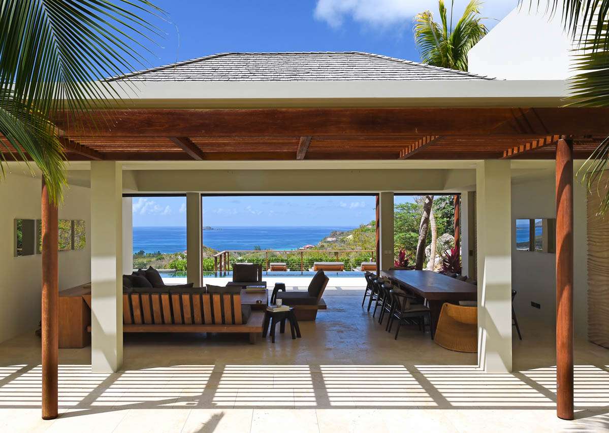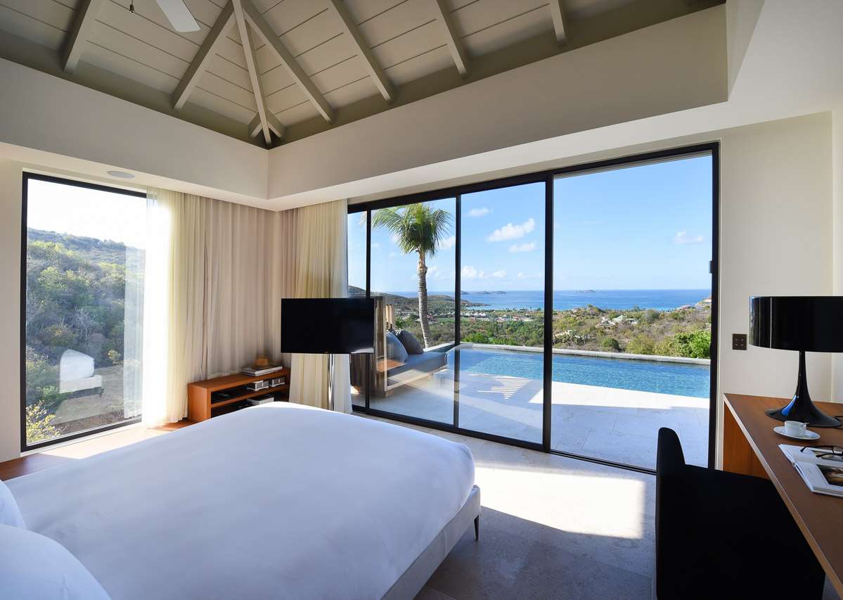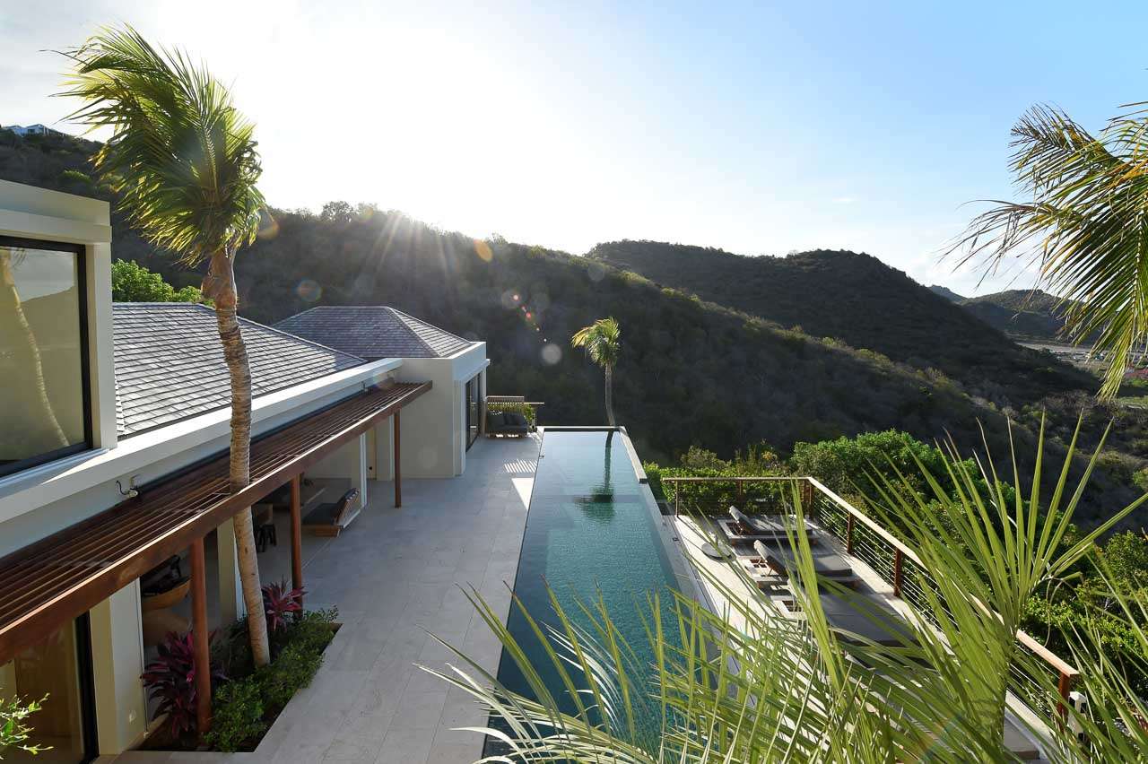Villa Vesper, (villa code: WV VES), is a 4-bedroom villa located in Lurin. Situated in a newly-built private domain on the hillside, this exquisite 3-level villa enjoys sweeping views. A long, slightly steep, driveway leads down to a covered parking area. From here, stairs lead through the garden to the villa below. The large living room opens completely to the pool deck and view. The living room shares its space with a dining area, which accommodates 12 guests. The spacious, well-equipped kitchen features a large counter and breakfast bar with stools. Each air-conditioned bedroom has a ceiling fan, an ensuite bathroom, U.S. and French satellite services, and Apple TV. The master bedroom on top of the main house is furnished with a king-size bed, while the other bedrooms have queen-size beds. The second bedroom offers an outside bathtub and shower, and an ocean view. The master bedroom is only available with the 4-bedroom rate. A deck with loungers surrounds the long heated swimming pool. During Bucket week, Thanksgiving and Festive the house rents with full occupancy, regardless of the number of bedrooms used.Please fill out the form to begin your inquiry and we will connect you with a seasoned villa rental specialist.