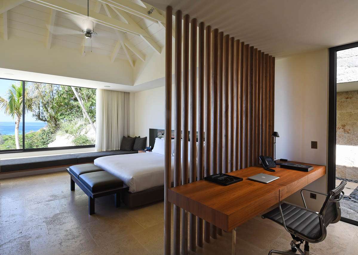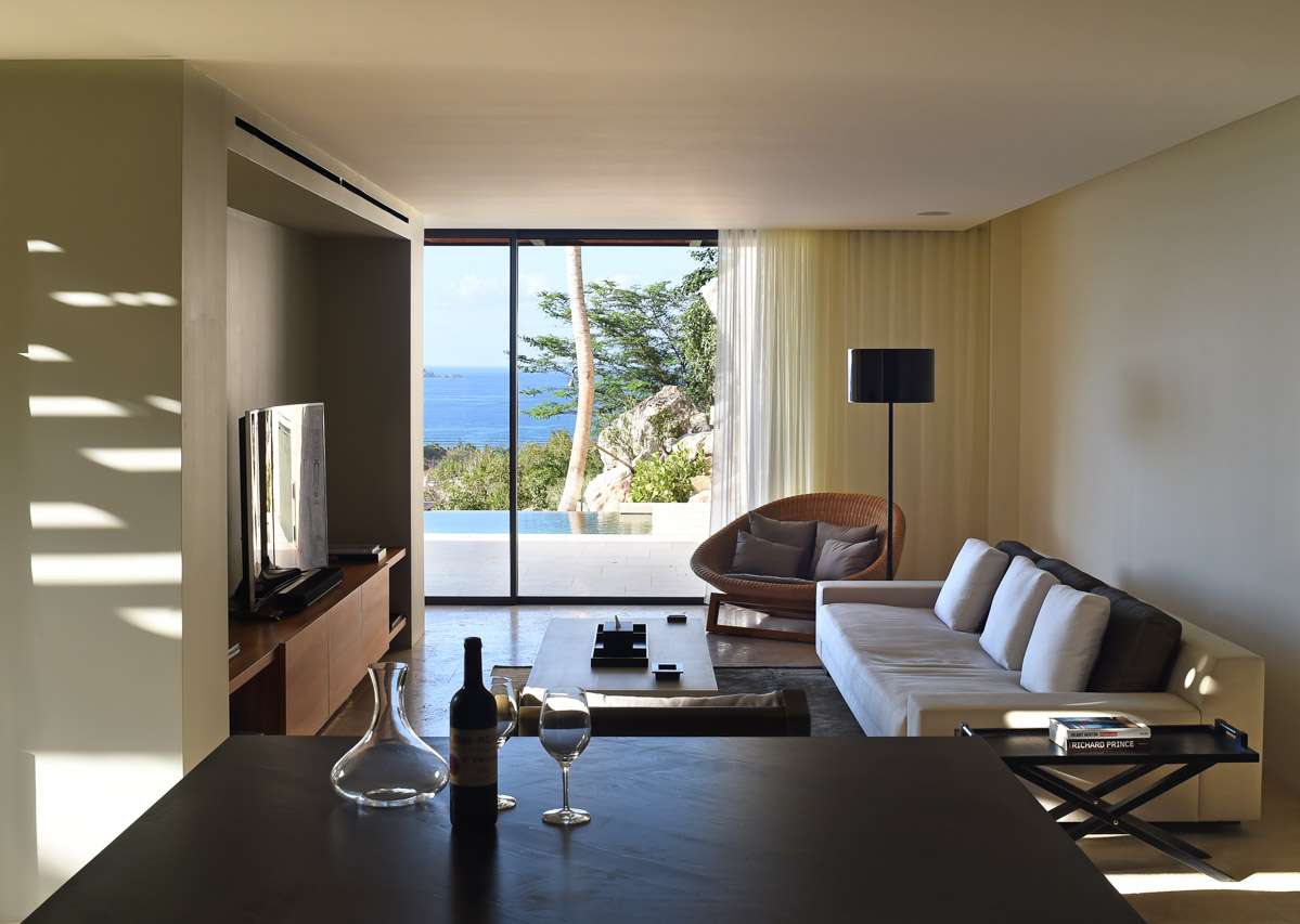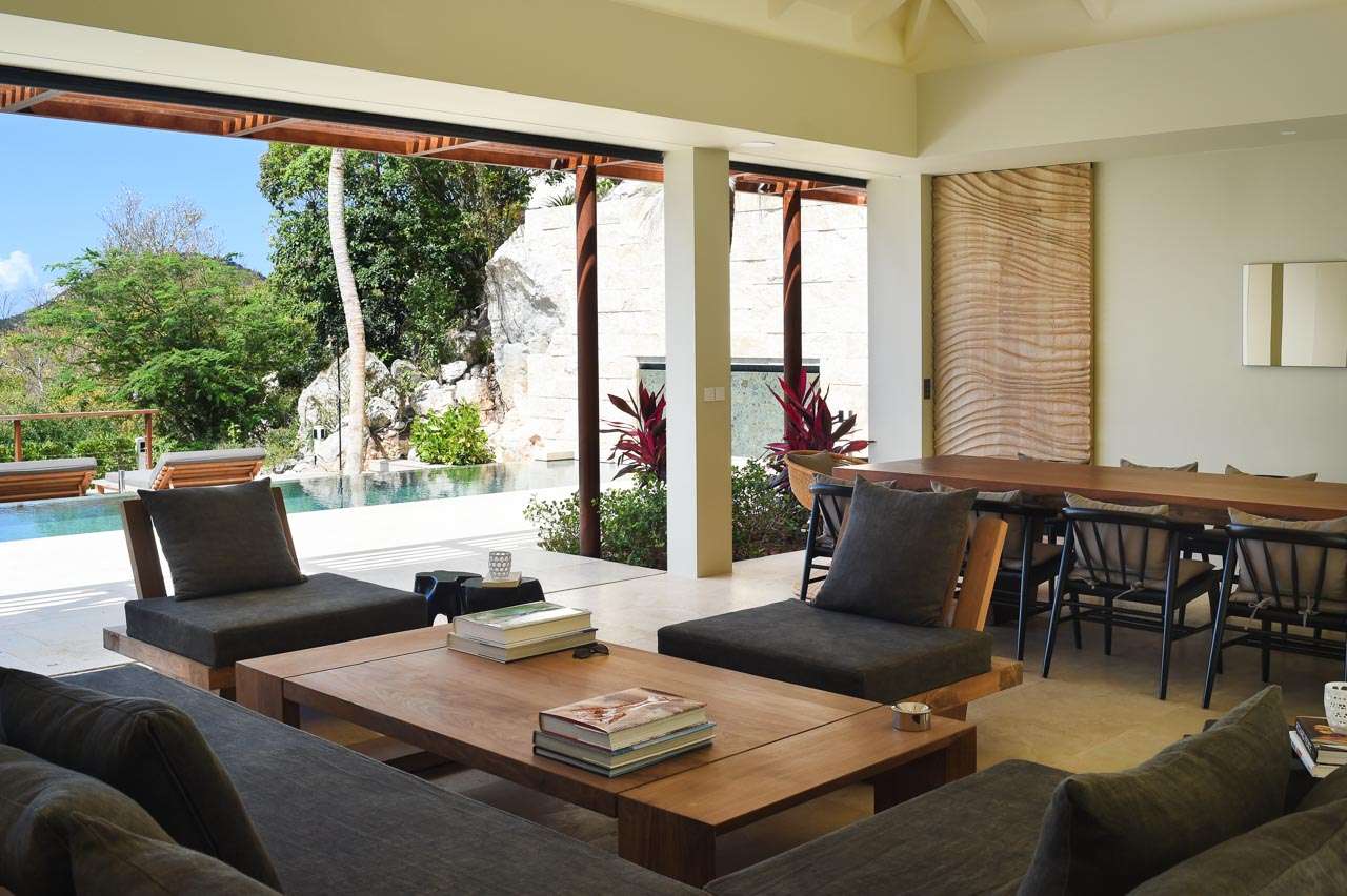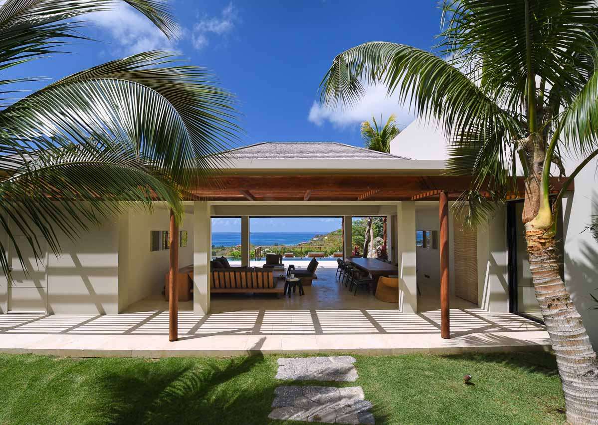 Villa Vesper, (villa code: WV VES), is a 4-bedroom villa located in Lurin. Situated in a newly-built private domain on the hillside, this exquisite 3-level villa enjoys sweeping views. A long, slightly steep, driveway leads down to a covered parking area. From here, stairs lead through the garden to the villa below. The large living room opens completely to the pool deck and view. The living room shares its space with a dining area, which accommodates 12 guests. The spacious, well-equipped kitchen features a large counter and breakfast bar with stools. Each air-conditioned bedroom has a ceiling fan, an ensuite bathroom, U.S. and French satellite services, and Apple TV. The master bedroom on top of the main house is furnished with a king-size bed, while the other bedrooms have queen-size beds. The second bedroom offers an outside bathtub and shower, and an ocean view. The master bedroom is only available with the 4-bedroom rate. A deck with loungers surrounds the long heated swimming pool. During Bucket week, Thanksgiving and Festive the house rents with full occupancy, regardless of the number of bedrooms used.Please fill out the form to begin your inquiry and we will connect you with a seasoned villa rental specialist.