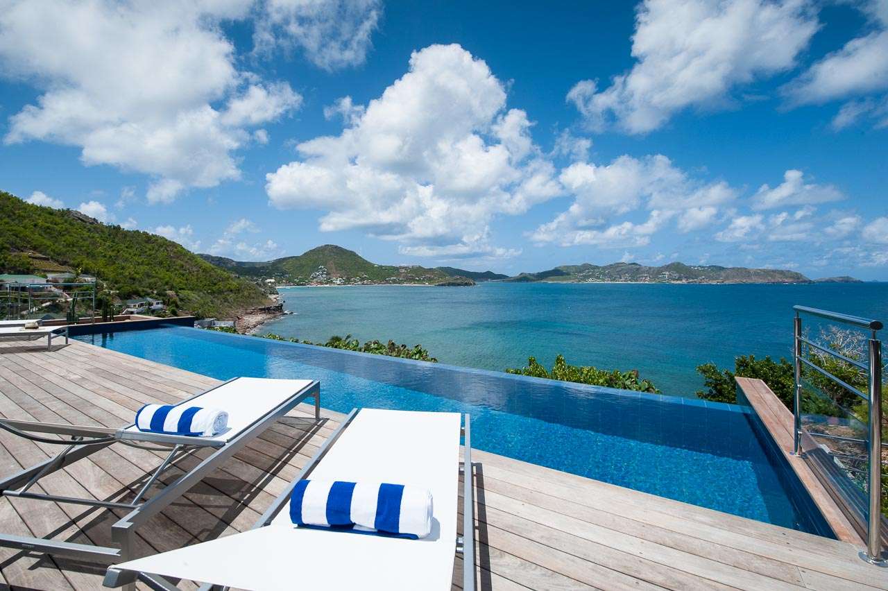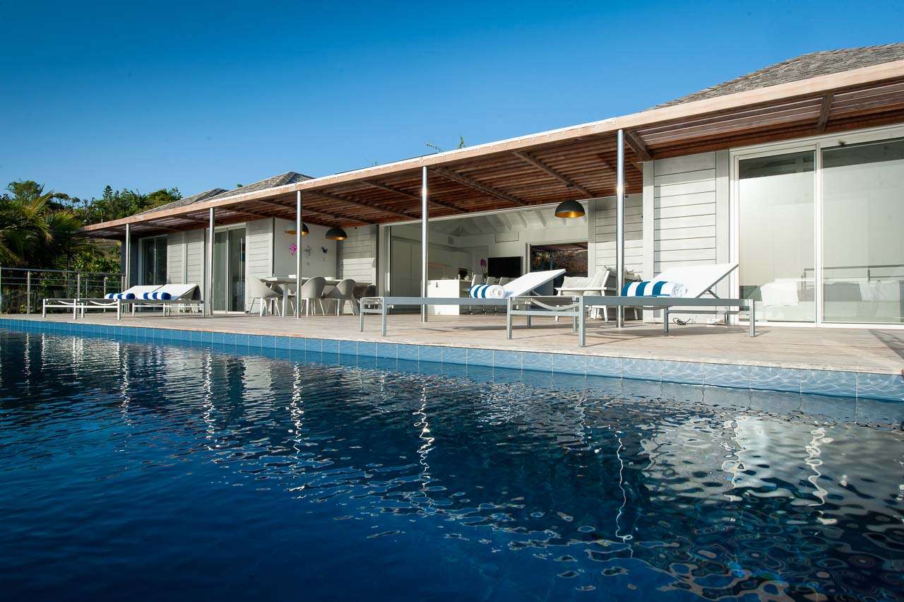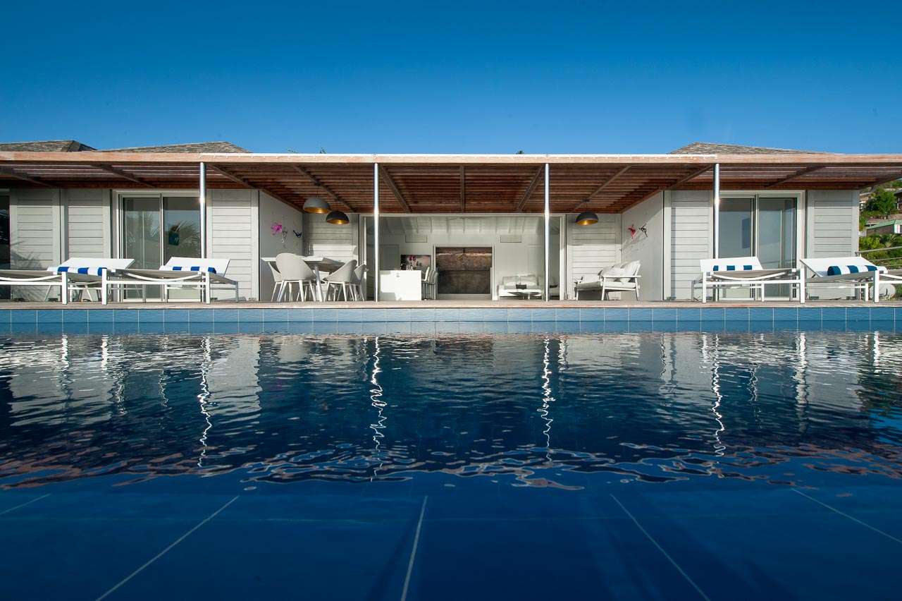 Welcome to Villa Pointe Milou (villa code: WV VPM), an incredible 4-bedroom villa in the heart of Pointe Milou, St. Barts. The immersive views over the bays and coastline of St. Barts are breathtaking – this is a villa all about the luxurious good life in the Caribbean. Inside Villa Pointe Milou, you can expect all the luxuries for your island getaway. The modern home features a clean and open-plan design, with minimalist-white interiors and splashes of color thanks to the ocean paintings on the walls. The laid-back and serene décor enhances the stunning views, grounding you in the spectacular location. With a fantastic position above the Christopher Hotel, Villa Pointe Milou captures everything great about this area on St. Barts. The views and spectacular sunsets will have you planning your return trip after your first day. Lorient Beach is around a 5-minute drive, with St. Jean only a bit further with shops, glamorous restaurants, and lively bars. Clean lines flow from the inside to the views, drawing your gaze at every turn inside Villa Pointe Milou. High-end furnishings and tasteful artwork create a pleasing and luxurious space to relax. The central great room is at the heart of the house. Here you’ll find the living room, with comfortable sofas ideal for sinking into with a drink to admire the rosy gold sunset. Vaulted ceilings above capture air and light, with the ocean breeze washing through the home. The TV with U.S. satellite and Apple TV can swivel between the kitchen and living room. A Sonos sound system allows guests to enjoy music from their own devices throughout the property. On the other side of the great room is Villa Pointe Milou’s fully equipped kitchen. Sleek, modern, and with a large island and breakfast bar, preparing delicious meals here is easy. The breakfast bar is a fantastic spot for your morning coffee and fresh eggs. For formal meals, stepping outside onto the covered terrace reveals the villa’s dining table, offering splendid views over the water and an unforgettable setting to enjoy some gourmet island meals. On either side of the living room are three nearly identical bedrooms. Behind the kitchen are two connecting bedrooms, one of which has a king-sized bed and the other two twins that can be pushed together to make a king. The master suite is on the other side of the living room, with a king-sized bed and a spacious ensuite bathroom. Descending downstairs brings you to the fourth bedroom, with a king-sized bed and a small, private terrace. Each bedroom has U.S. satellite channels, an Apple TV, ample closet space, and a spacious ensuite bathroom with a shower. As you step outside of the living room, you’re delivered onto the covered terrace, providing a shady area to enjoy those stunning views. There’s another lounge here and the dining table as well. The large, heated swimming pool faces the ocean, its infinity edge stretching toward the ocean below. Enjoying a leisurely swim here at sunset will be a highlight – from the edge, you can watch as the sun lights up the sea, sky, and alluring coastline of St. Barts and the islands offshore. Villa Pointe Milou is within easy walking distance of Hotel Christopher, which has restaurants, a spa, and a pool. For days at the beach, Lorient Bay is a short 5-minute drive, and St. Jean is 10 minutes, both of them offering a pristine and quiet shore. During the December holidays, the villa rents at full occupancy rates regardless of how many bedrooms are used.Please fill out the form to begin your inquiry and we will connect you with a seasoned villa rental specialist.