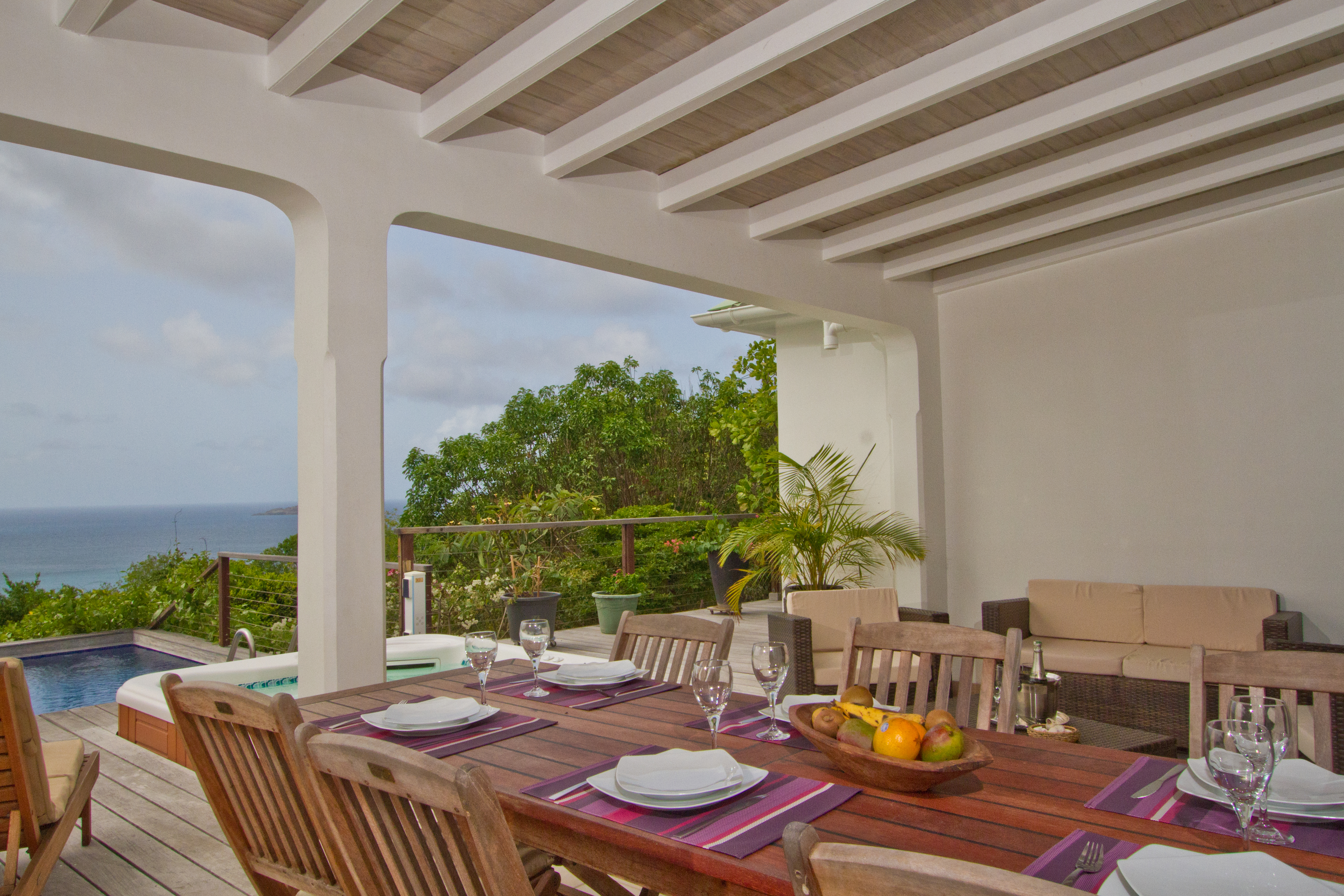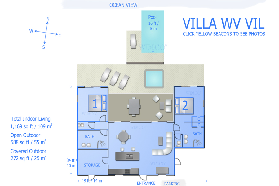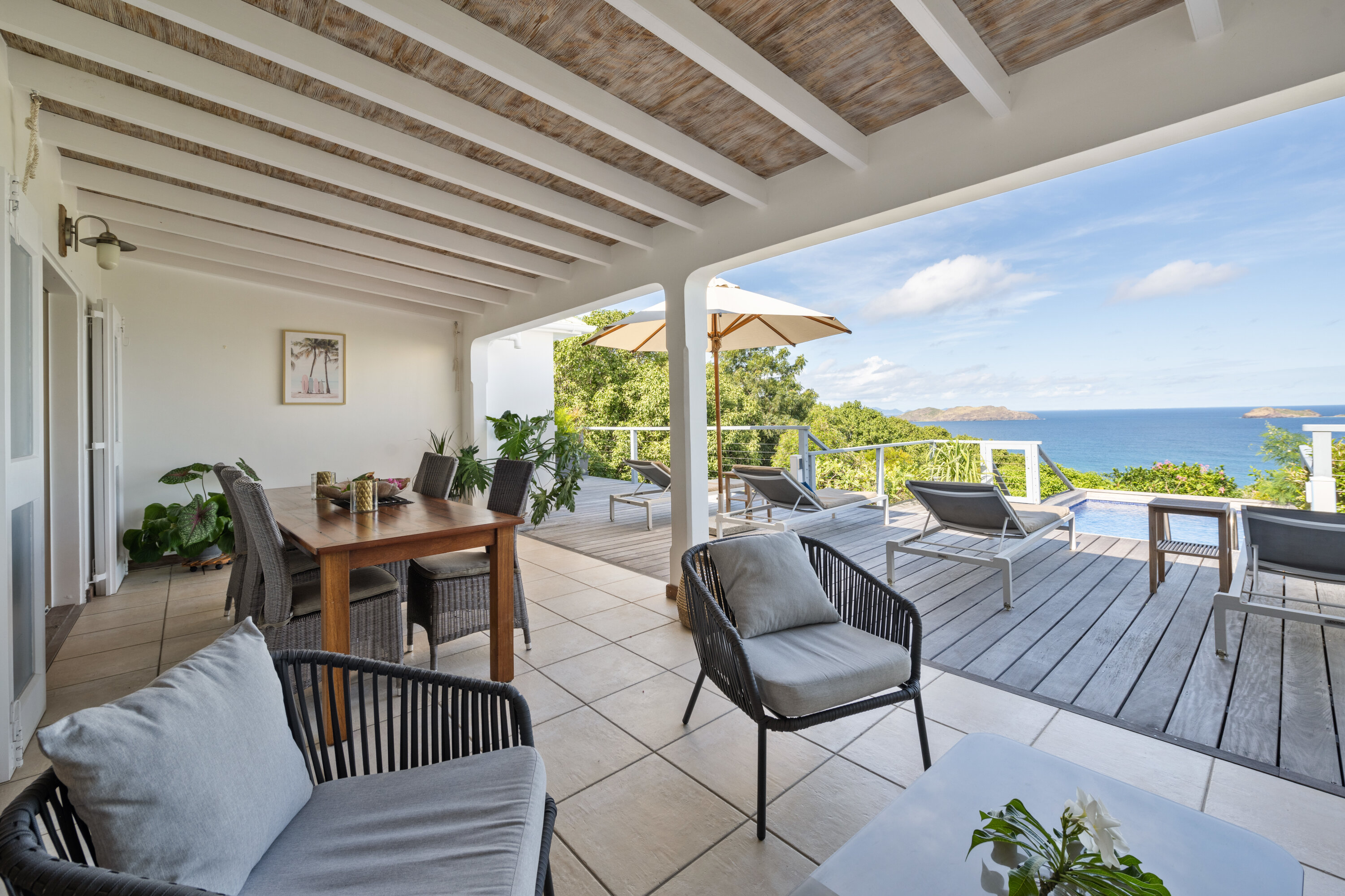 Welcome to Villa Villon (villa code: WV VLY), a 2-bedroom villa located in the stunning area of Petite Saline in St. Barts. It has an open living and kitchen with incredible views over the bay and nearby islands. With a beautiful location in Petite Saline, Villa Villon enjoys sweeping views over Lorient Bay. In the distance, the offshore islands of Île Toc Vers, Île Frégate, and Île Bonhomme. The beach at Lorient is a short drive away, as are the shops and restaurants of St. Jean. In true Caribbean fashion, Villa Villon enjoys a spacious great room at the center of the home with the living area, dining table, and kitchen. The entire space is decorated in soft, neutral tones, with the sofas inviting you to sink in and enjoy as the island breeze washes through the home. The living room opens to the kitchen and a second living area under the covered terrace outside. This open-plan layout makes the most of the views, with the shimmering ocean drawing your gaze at every turn. The bedrooms are located on either side of the Villa Villon’s great room, both opening to the terrace and featuring ocean views. Simple furnishings, wooden accents, and a calming atmosphere make both rooms peaceful spots to recharge. Each bedroom has air-conditioning, a plush king-sized bed and an ensuite bathroom with a rain shower. From the living room, sliding doors open to reveal the covered terrace, where a second living area makes for a great spot to spend a day lounging, reading a book, or sipping on cool drinks. As the sun starts to set, it’s also a great spot for a cocktail hour before dinner. The terrace stretches out into the ocean and sun, and is where you will find the outdoor dining table for your al fresco meals immersed in the tropical surroundings. From the inviting plunge pool you can gaze out at the ocean and cool off or enjoy a drink, while loungers provide spots for sunbathing. And when the beach calls, it’s only a 5-minute drive away. * Note - the jacuzzi shown in the photos and floor plan has been removed.Please fill out the form to begin your inquiry and we will connect you with a seasoned villa rental specialist.