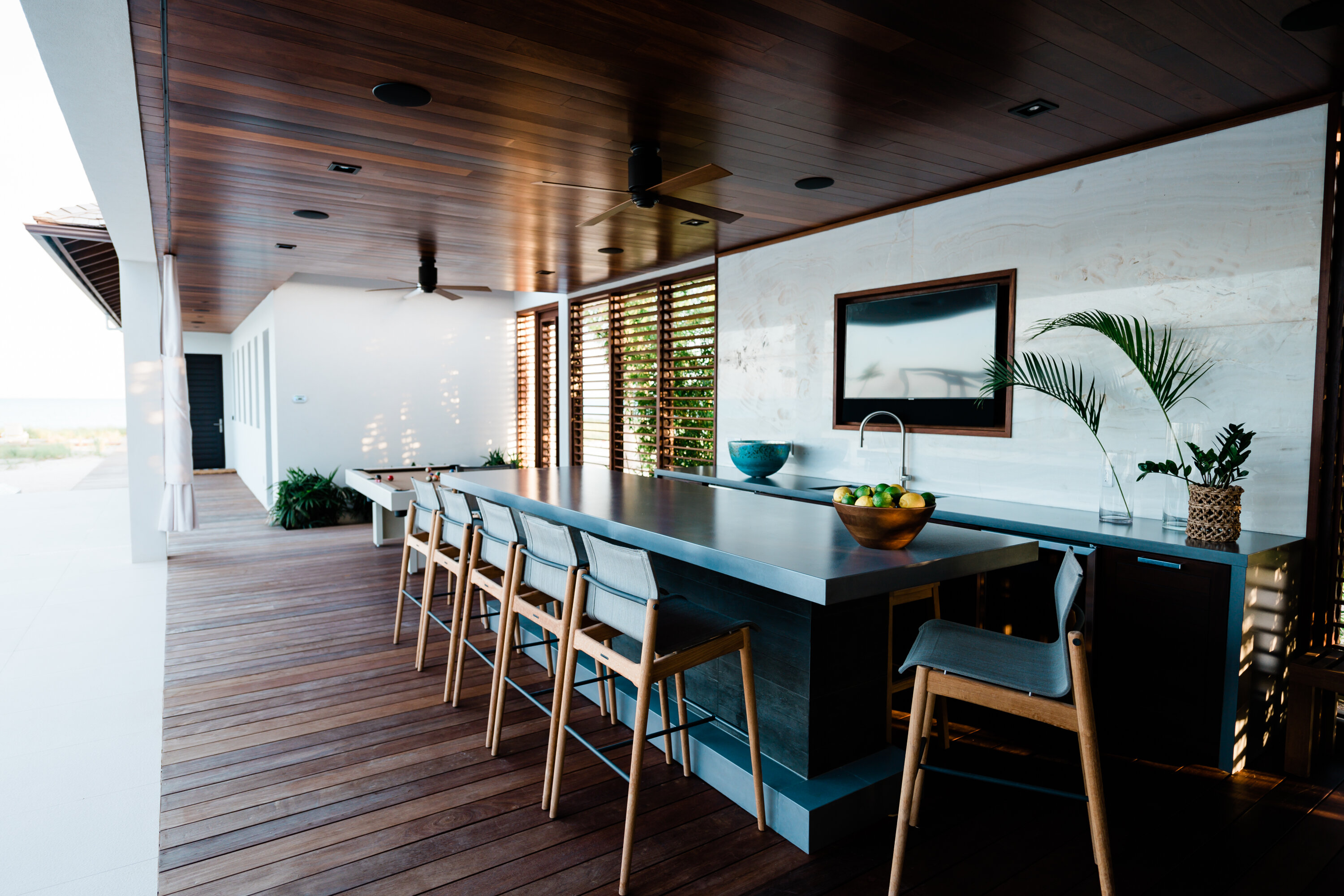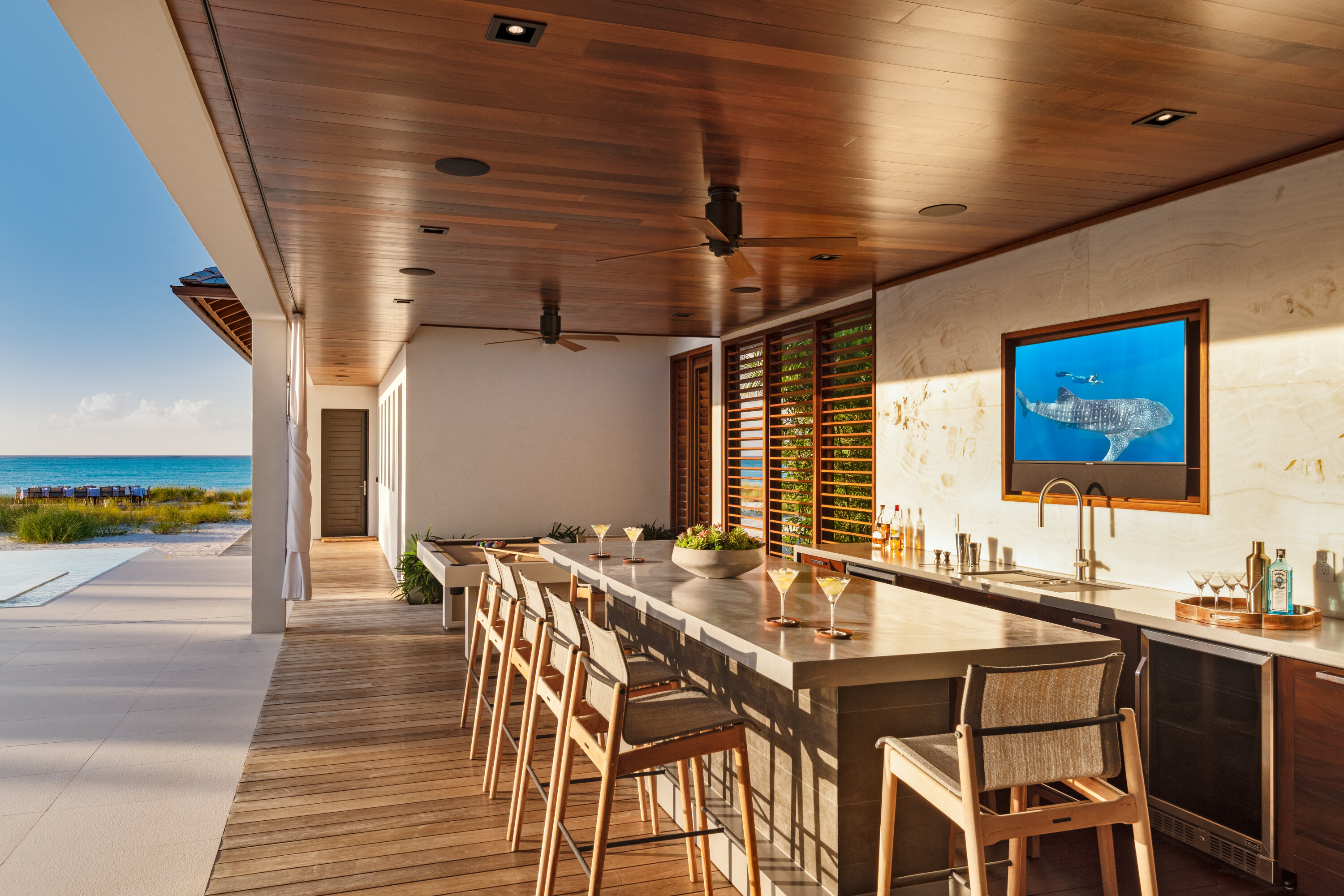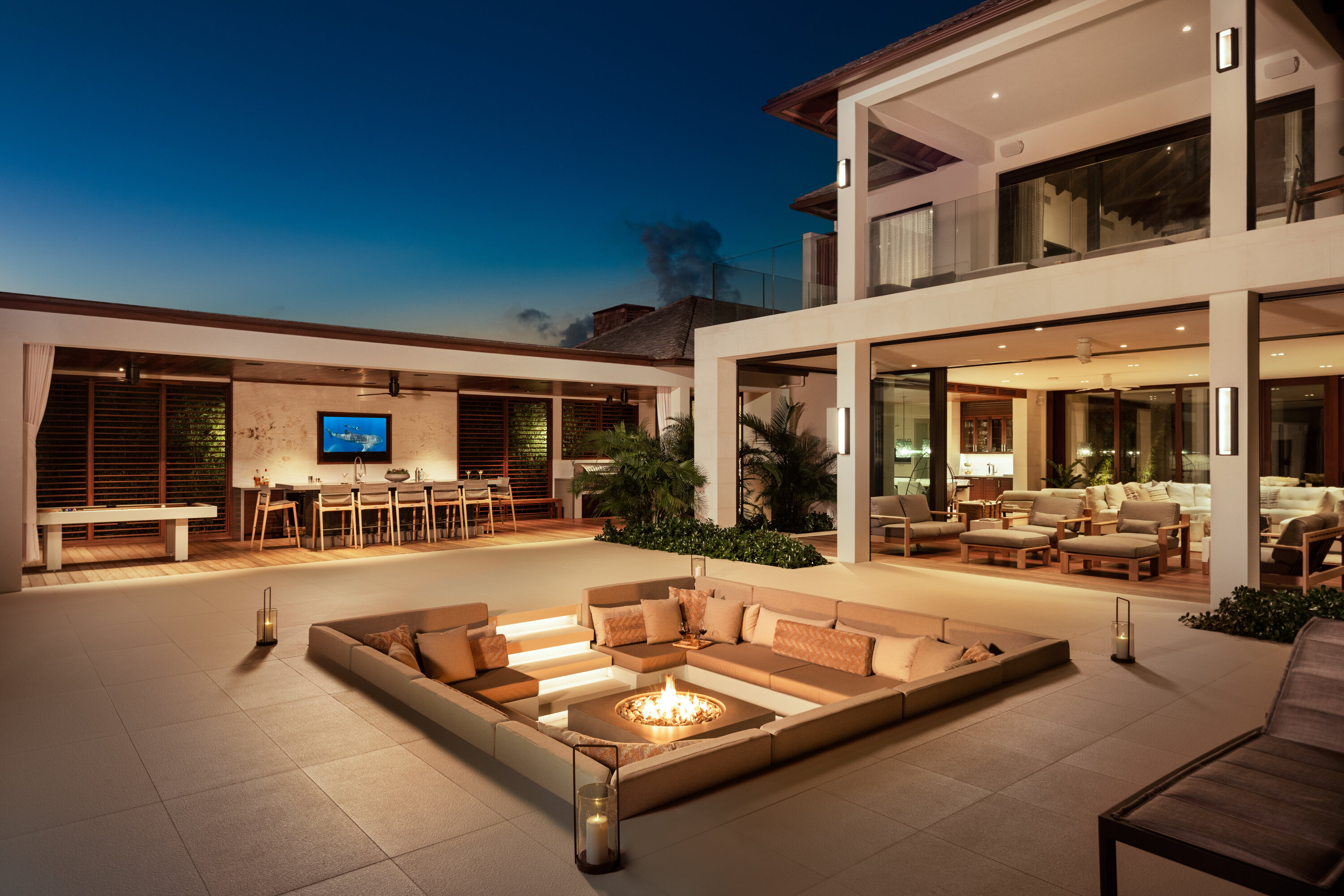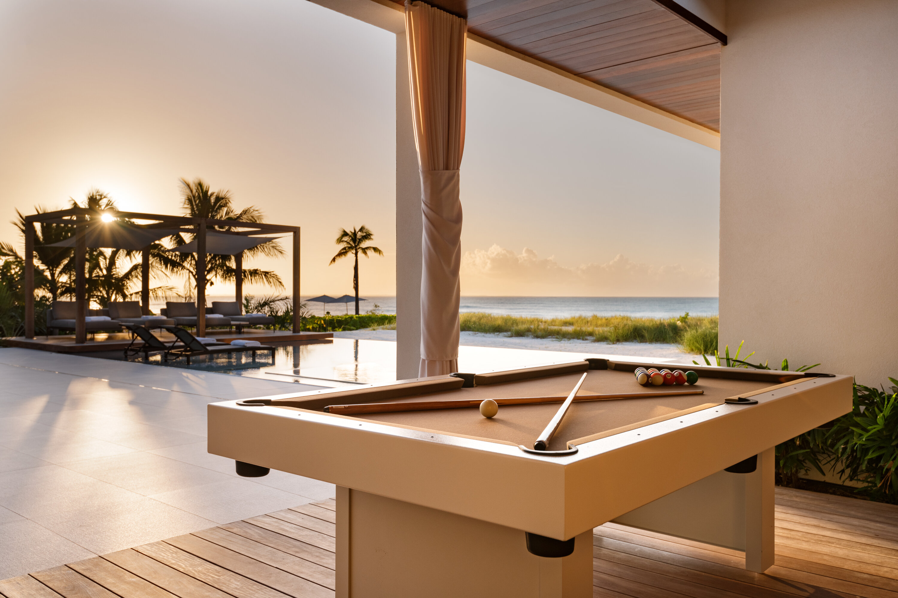 After dinner, why not gather by the outdoor bar or pool table for a bit of evening fun? As the night descends, cocktails in the hot tub or relaxing by the fire pit are magnificent ways to enjoy the balmy island nights.