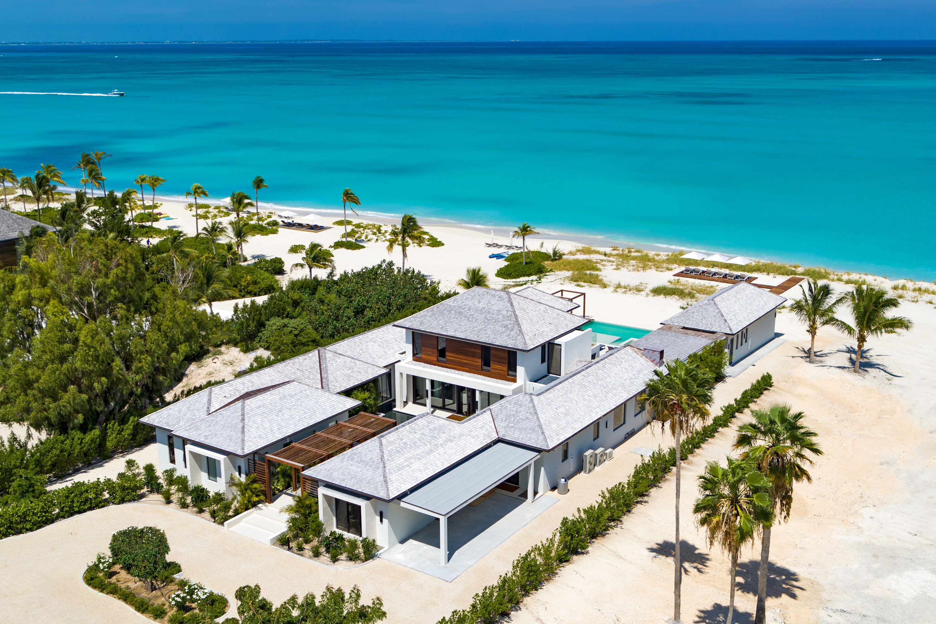 Welcome to Villa Vision Beach (villa code: PL VSB), a modern 5-bedroom beach house located on the exclusive Prince of Wales Drive, on Grace Bay Beach. With an envious beachfront location and exquisite interiors and living spaces, this is a sophisticated spot for a Turks and Caicos getaway.