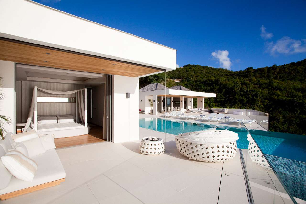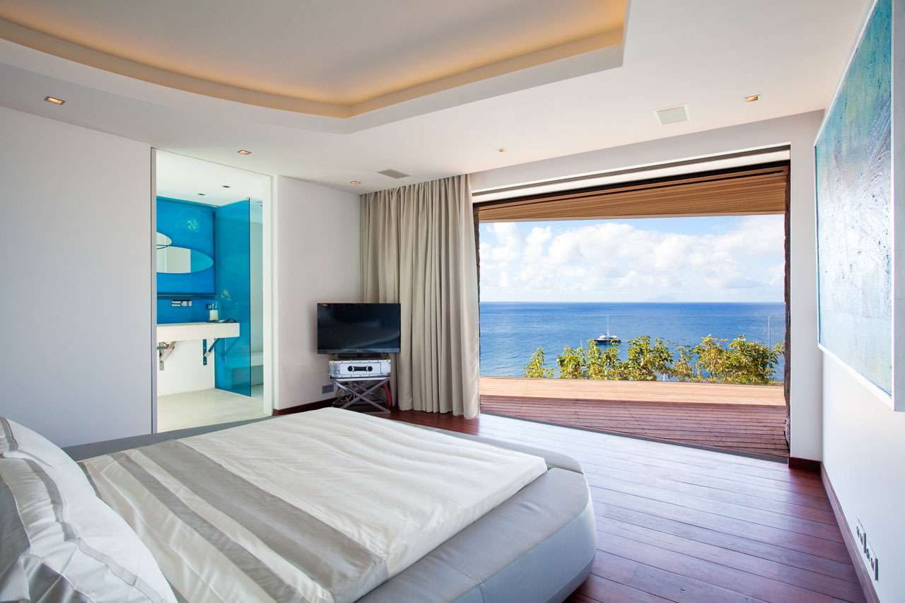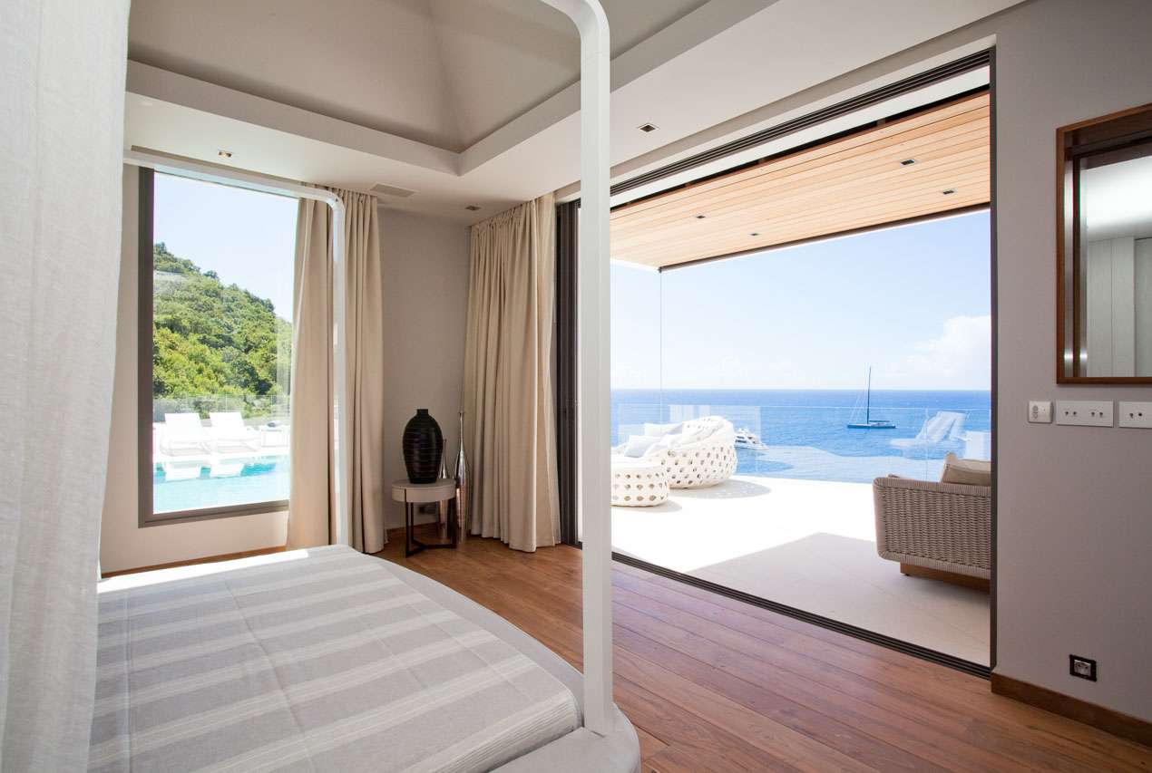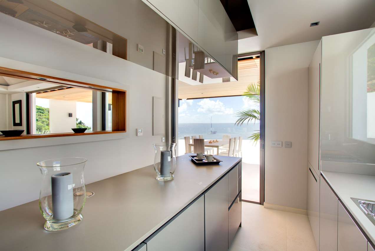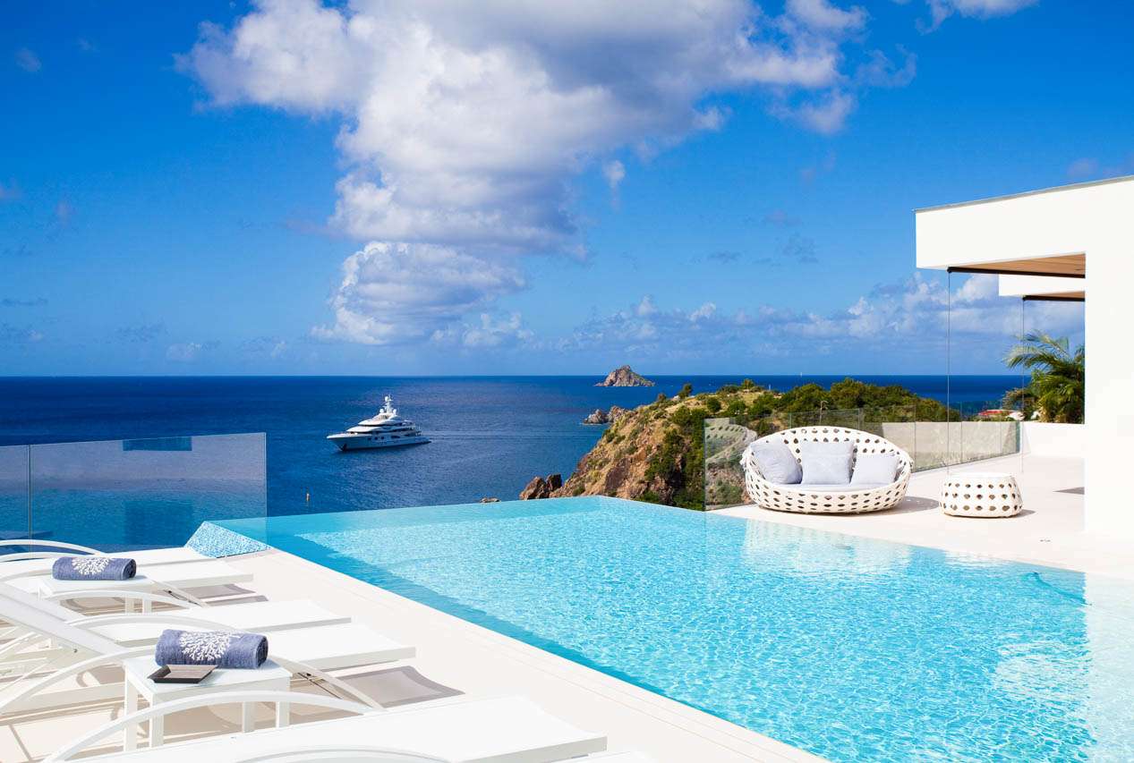 Welcome to Villa Vitti (villa code: WV VIT), a glamorous 5-bedroom villa located in Lurin, St. Barts. This jewel of a villa combines unsurpassed luxury with stunning ocean and sunset views. Classic elegance and exquisite attention to detail define Villa Vitti. Spread across several pavilions, the open-plan design flows superbly from one space to another. Luxurious furnishings and graceful island décor enhance the glamorous atmosphere. From everywhere, you can enjoy alluring ocean views towards the islands of Saba and St. Eustatius. Nestled in the hills above Gustavia, the restaurants and shops of the capital city are just a short walk away, and easily reached by car if you don’t want to walk uphill. Shell Beach is also within easy walking distance, or a 2-minute drive, while Gouverneur Beach is a 5-minute drive. A large great room at the center of Vitti Villa is home to the living room, dining area, and connected kitchen. Doors on one side open to the outdoor terrace and the view, while on the other is a tranquil inner courtyard. The living room features a large, plush sofa, stretching the length of the room. It’s a magnificent setting to sink in and relax, enjoying the cool breeze and some good conversation. At the touch of a button, a large screen TV with surround sound rises out of the floor, letting you enjoy a movie night in style. The well-equipped kitchen is ideal for preparing a gourmet, island-style meal. With views over the Caribbean, you’ll be inspired to experiment with local flavors and ingredients. Our concierge can organize grocery pre-stocking or delivery, catered meals, or arrange private chef service for a special occasion. A designer dining table next to the living room is the best seat in the house for large, festive dinner parties. If open-air dining is more your style, there’s also a table on the covered terrace outside with ocean views. There are 5 bedrooms at Vitti Villa, spread across the villa to ensure the privacy of guests. Each room is decorated in a soothing palette of white and grey, featuring plush queen-sized beds, spacious ensuites, and ocean views. The first two suites are located in a poolside pavilion, one with its own private furnished terrace area. Downstairs are the three other suites, each overlooking the shimmering Caribbean. The luxury of Villa Vitti extends to the outdoor terrace, with stylish loungers, sail-shaped parasols, and plush daybeds. There’s plenty of space to spread out, enjoy the weather, and relax. On the covered terrace, a sleek, deep-backed lounge offers a comfortable spot to admire the ocean views. Loungers surround the infinity pool, letting you sunbathe between refreshing dips in the water. There’s even a wet bar here, letting you mix your own cocktail or pop open a bottle of wine and enjoy your day outside. On the other side of the main living room is an indoor courtyard with a different vibe entirely. A large stone Buddha statue sits in front of a water fountain, while lush ferns shield the courtyard from the outside world. Tranquil and serene, it’s an ideal spot to come for some quiet time and disconnect from the rush of modern life. If you’re craving a day in the open water, a private staircase leads from Villa Vitti down onto Shell Beach. With crystalline waters and a beach made up of small shells, this is one of the prettiest on St. Barts. Also within easy driving distance are the beaches at St. Jean and Gouverneur.Please fill out the form to begin your inquiry and we will connect you with a seasoned villa rental specialist.